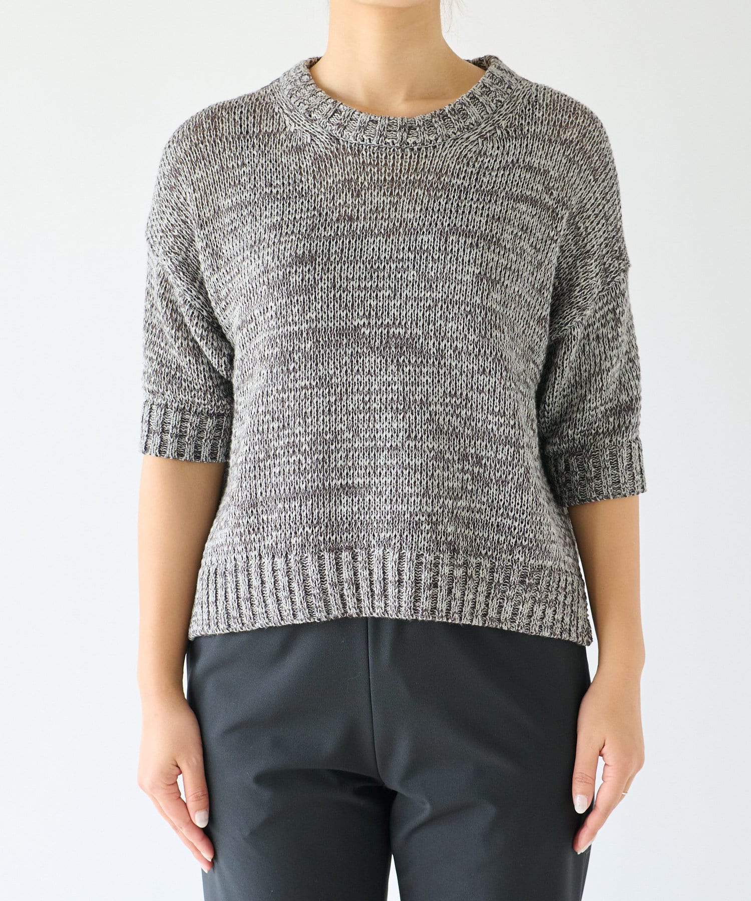 麻混でさらりとした着心地のシンプルニット