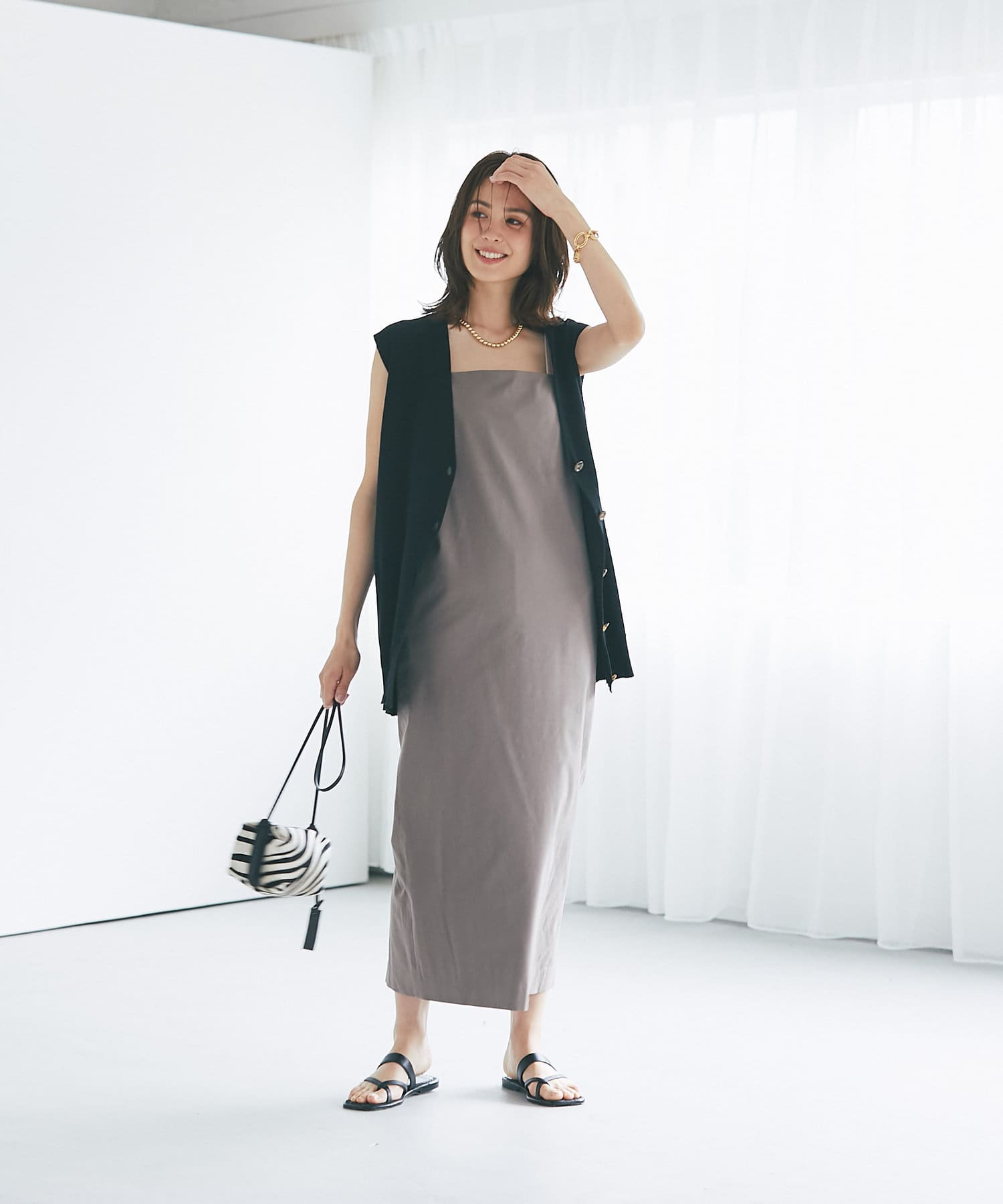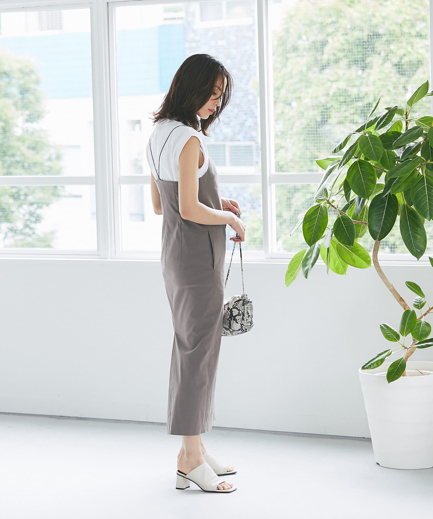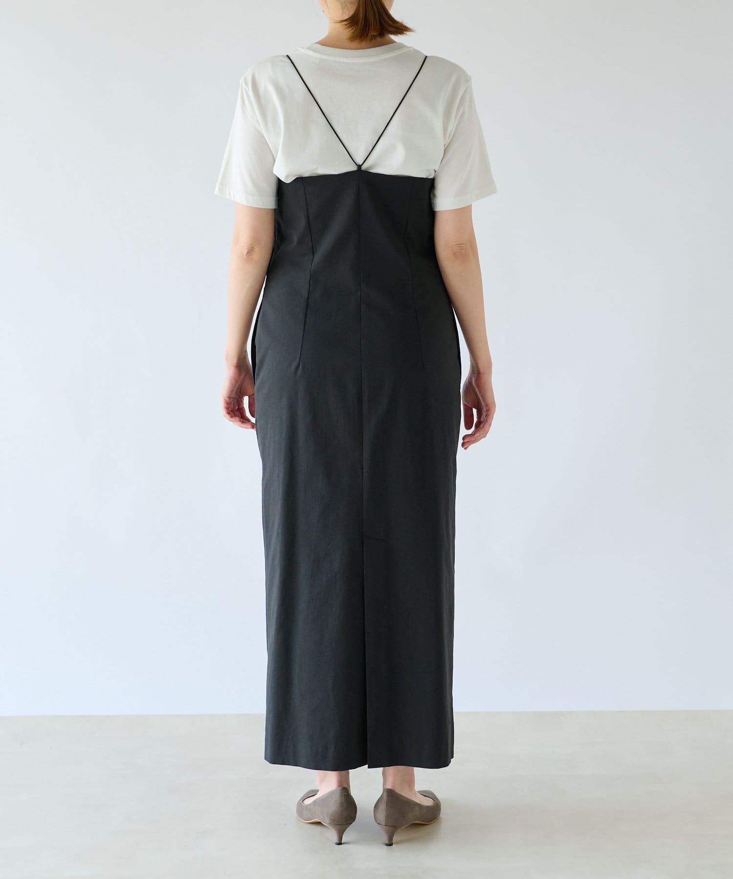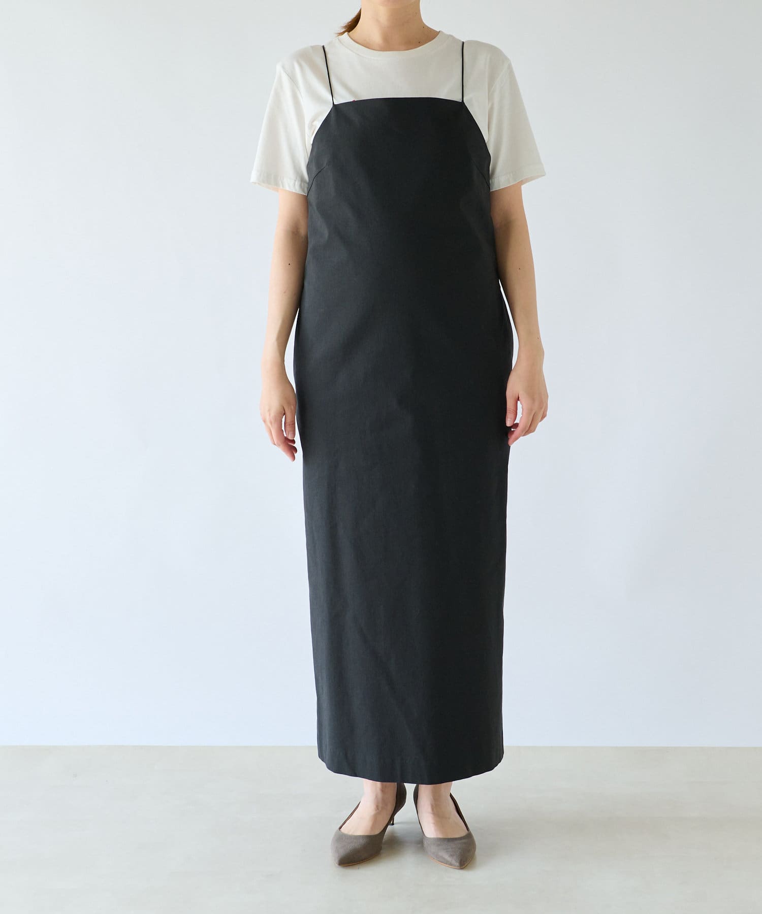 【シックに決まる】ストレッチコットンナローロングキャミワンピース