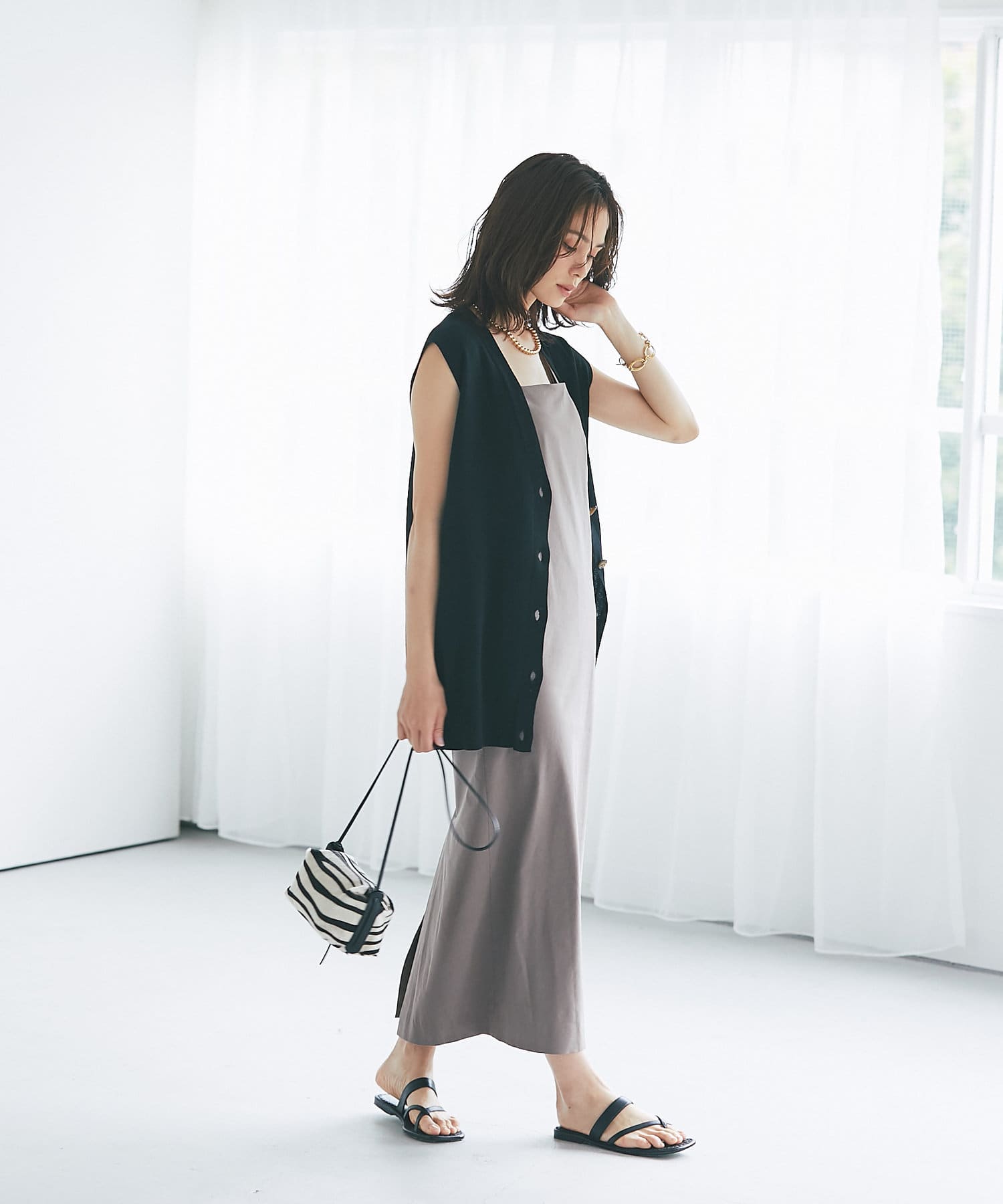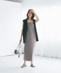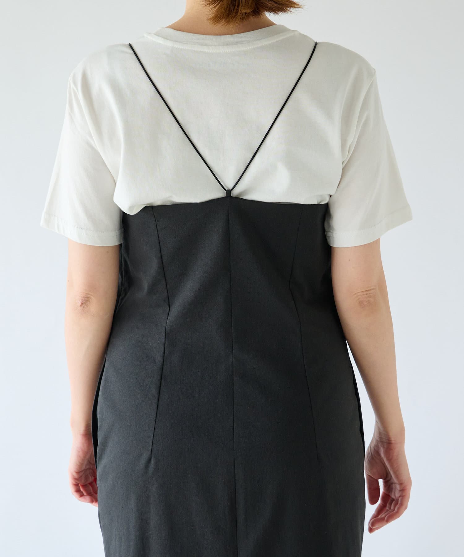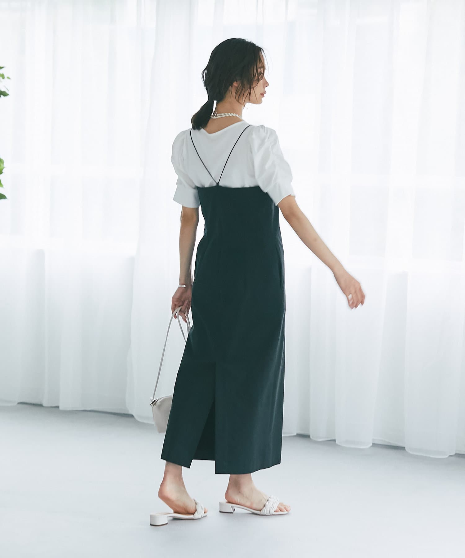 【シックに決まる】ストレッチコットンナローロングキャミワンピース