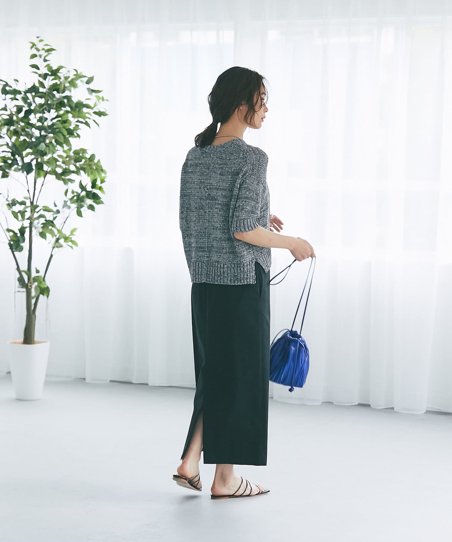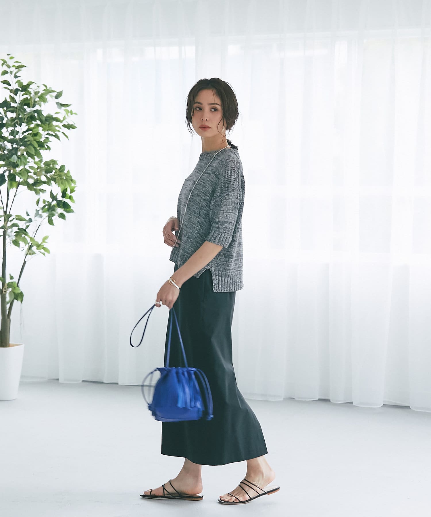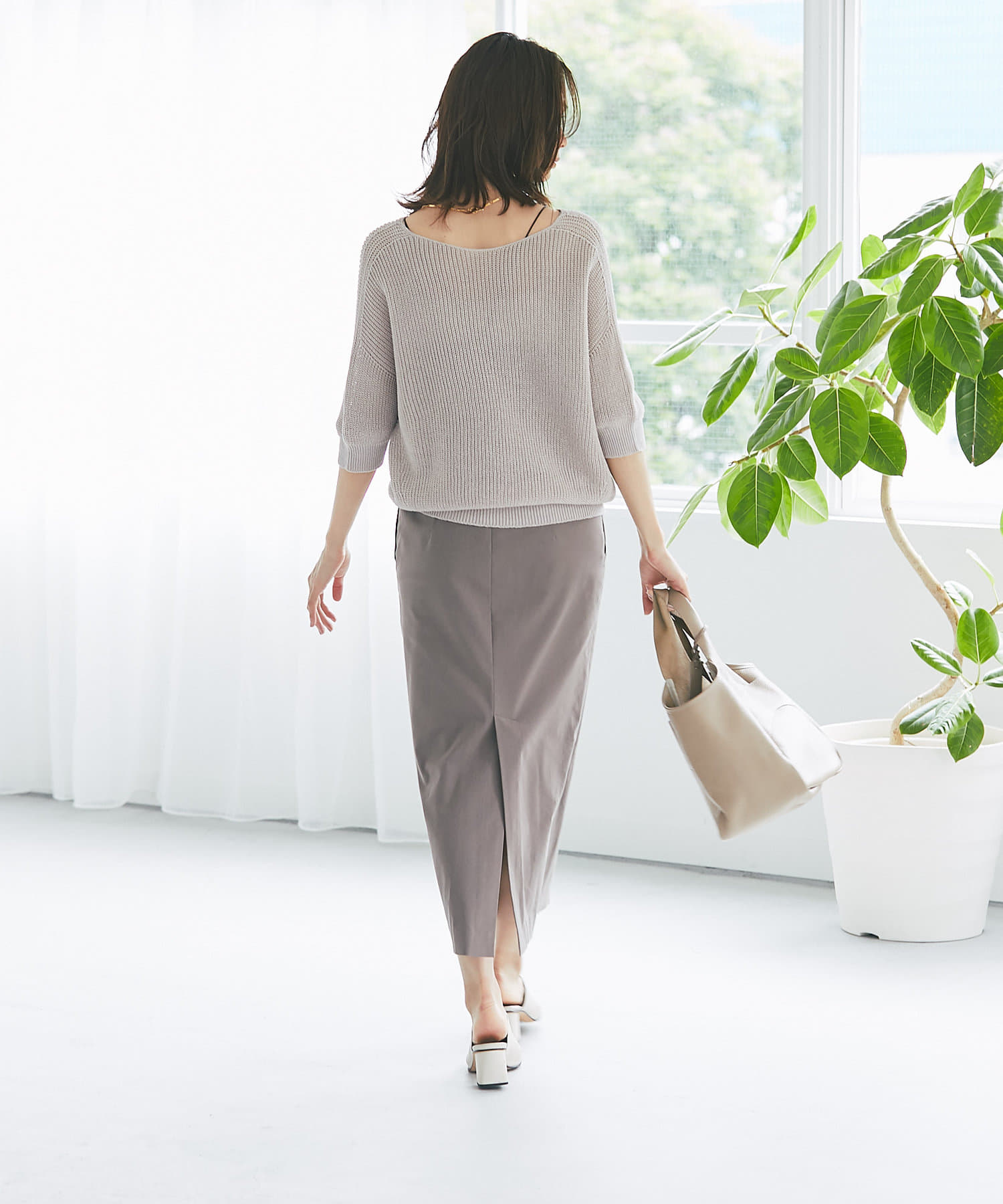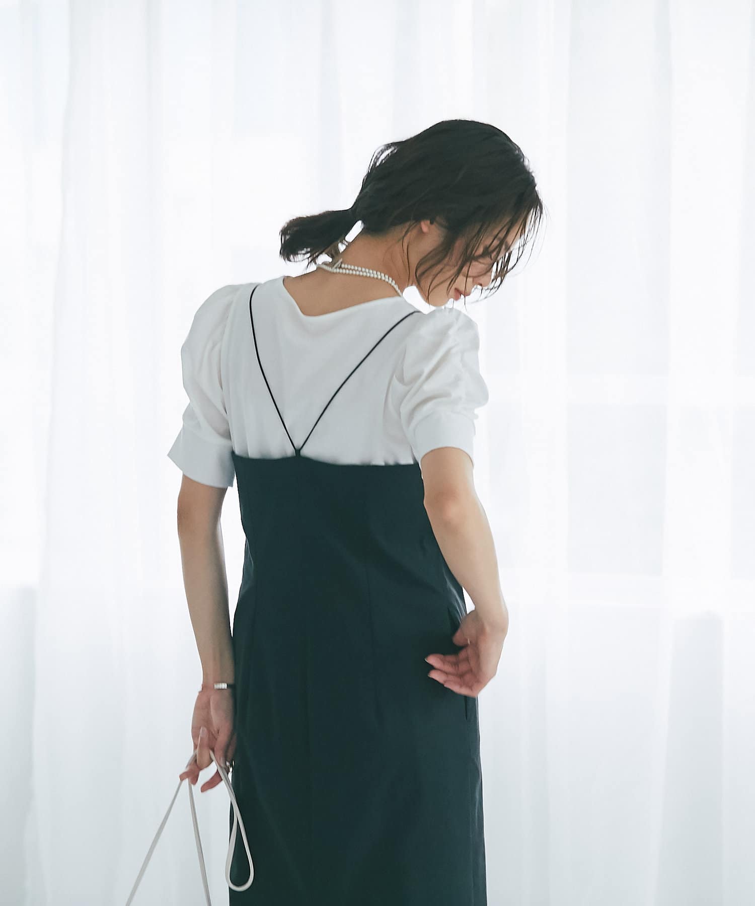 ウエスト部分にさり気なく絞りを入れることで、ただ真っ直ぐなだけじゃない女性らしさを演出するシルエットになっております。