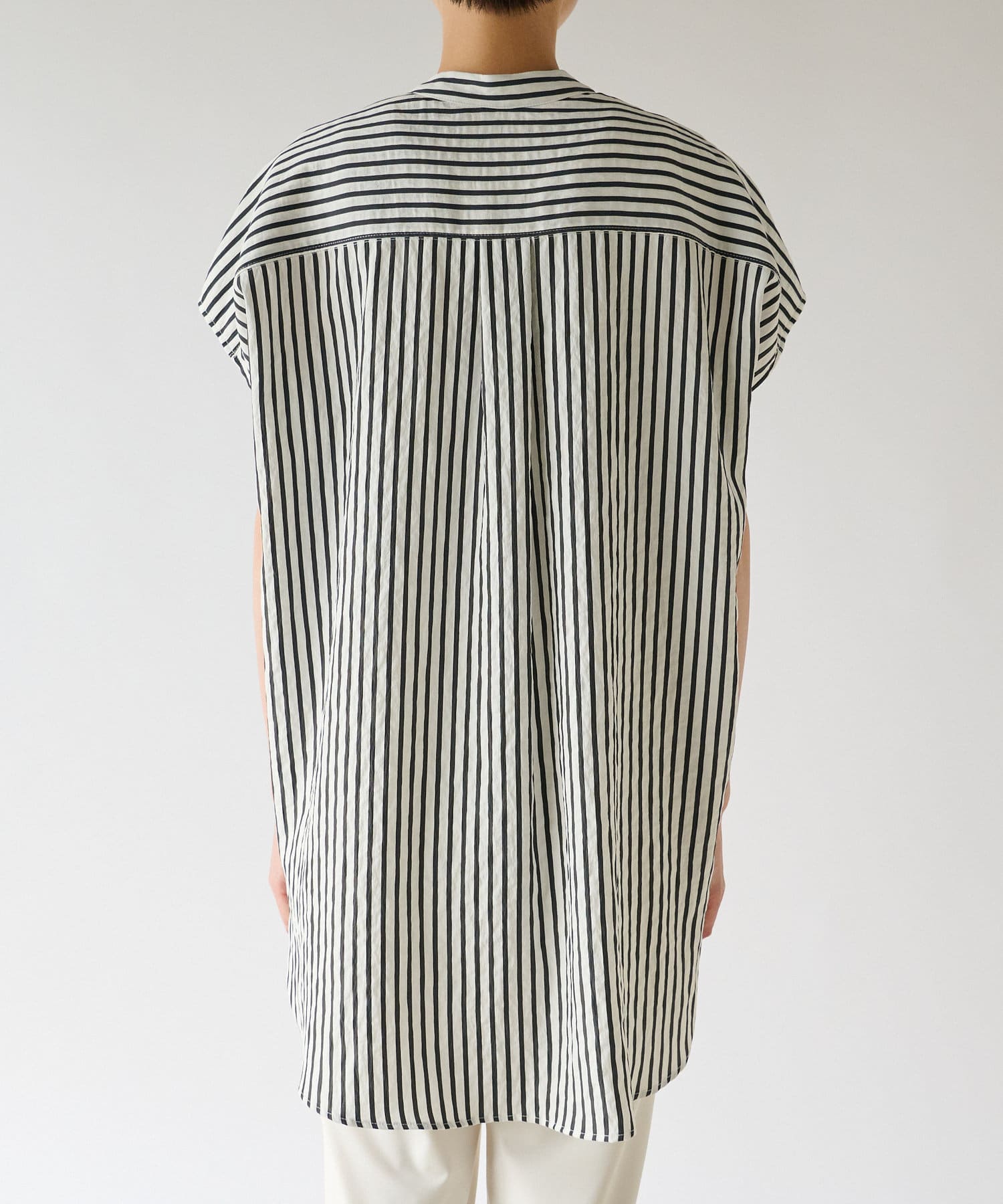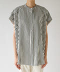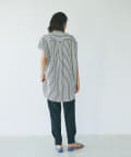 ストライプビッグパールボタンノースリシャツ