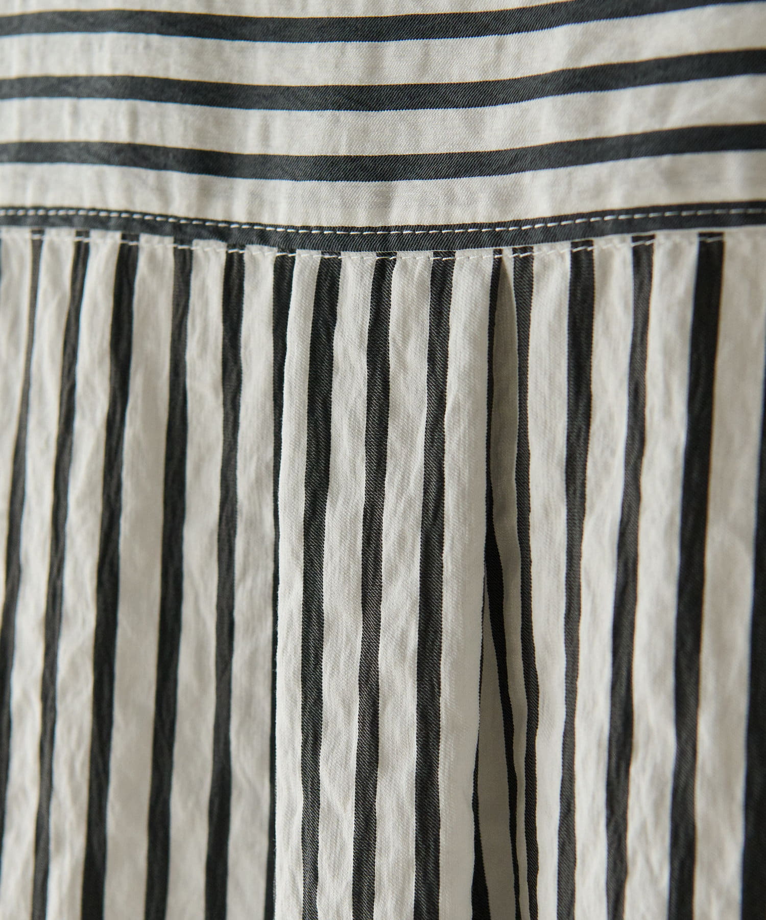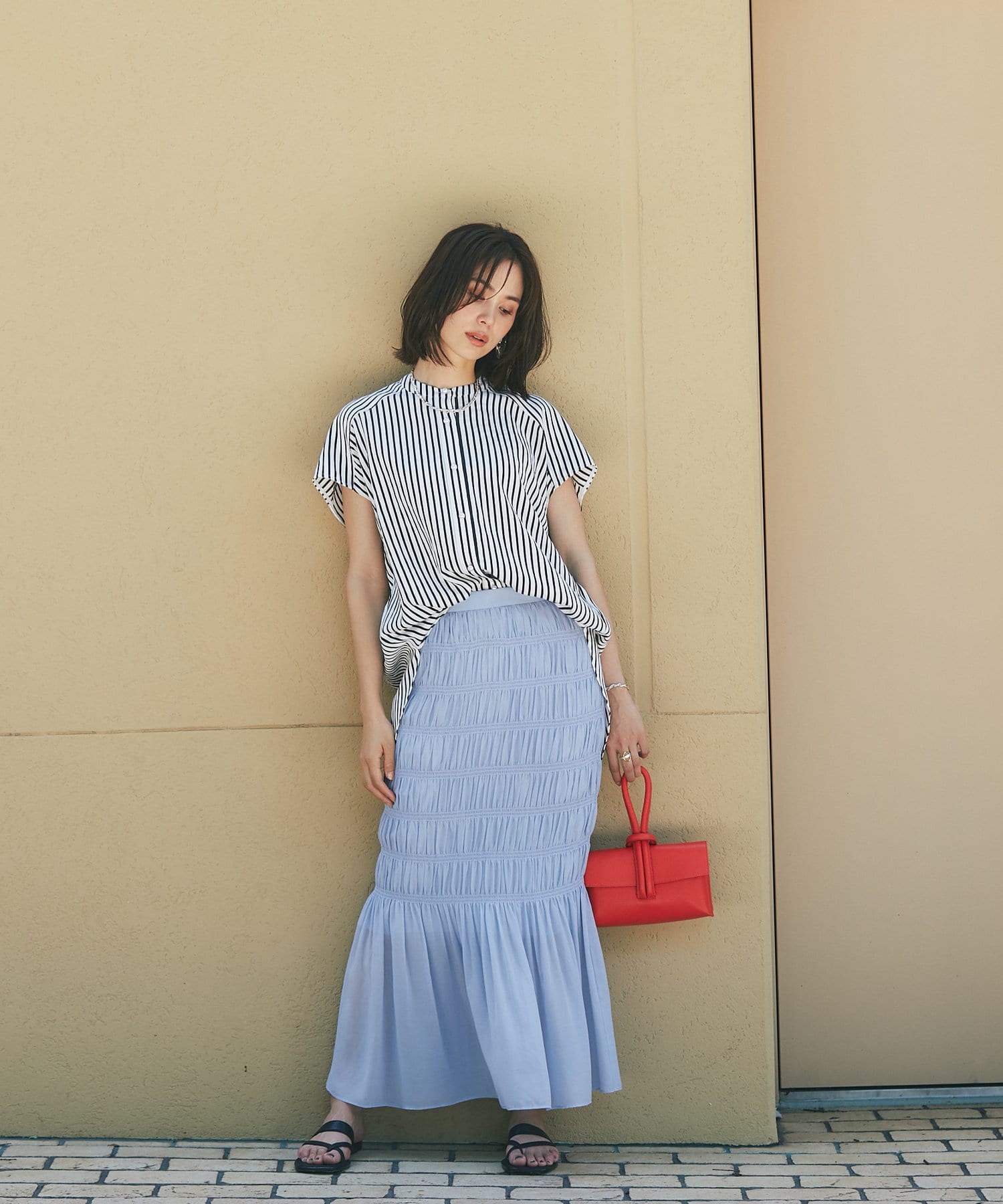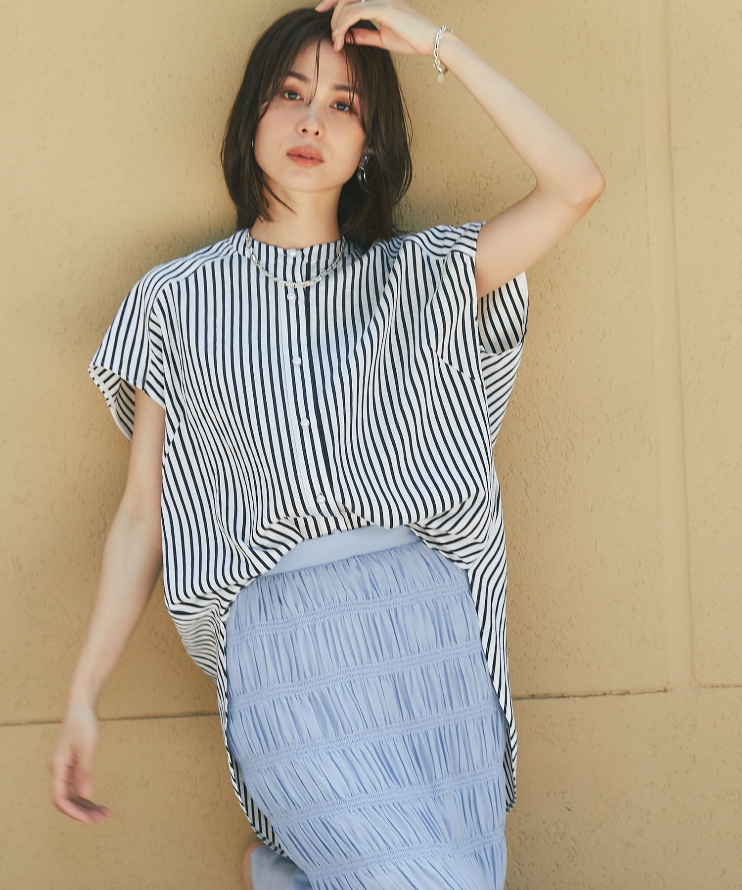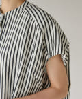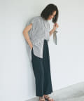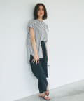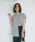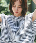 甘めの印象ながら、ストライプ柄が爽やかに全体の印象を引き締めて、毎日のコーデに取り入れやすい一枚に仕上げました。