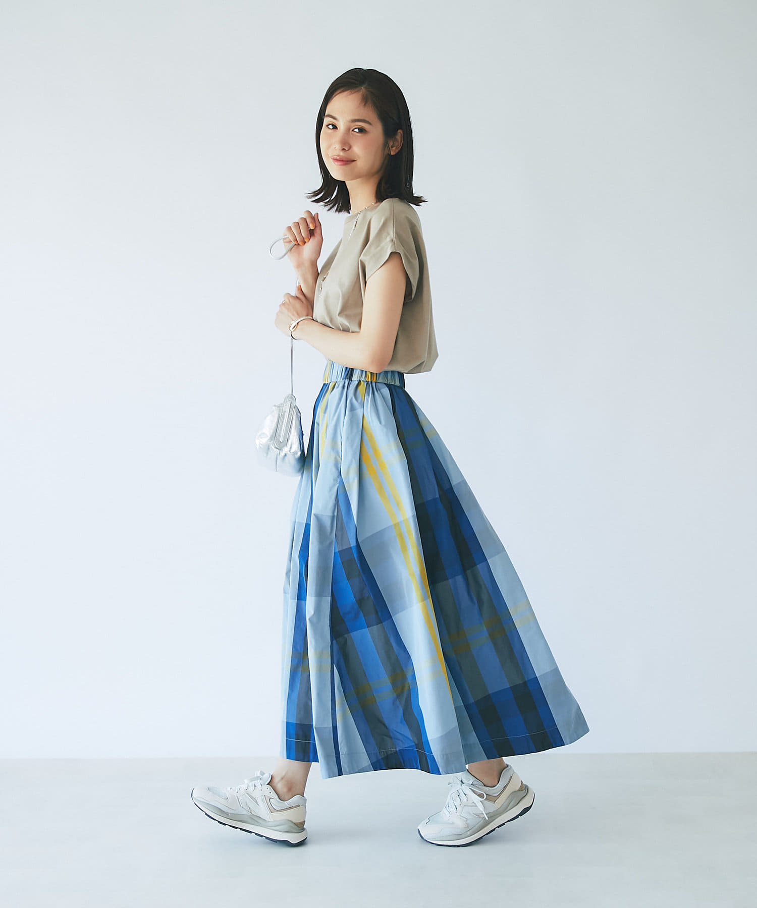 夏はフレアスカートやデニムパンツで爽やかさと涼感をプラスするのもおすすめです。