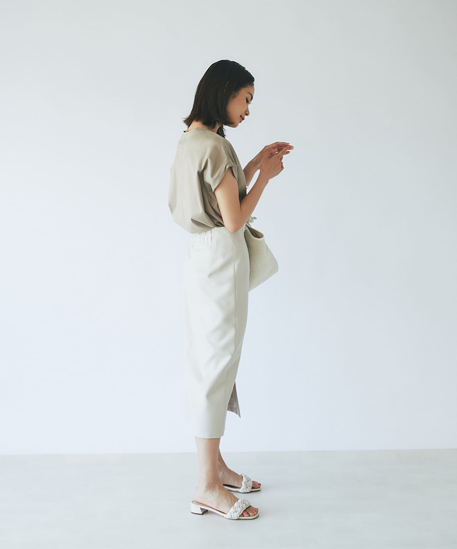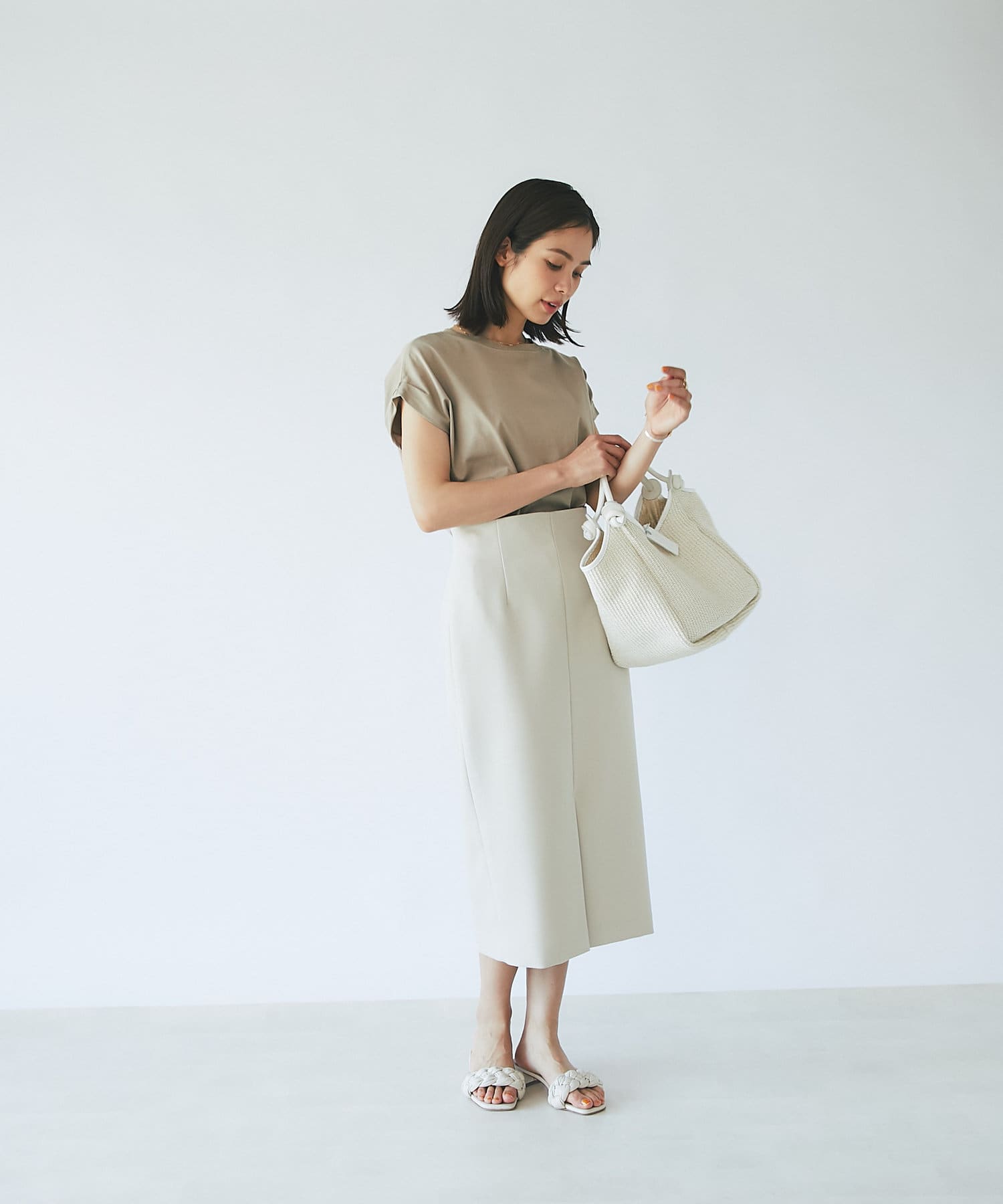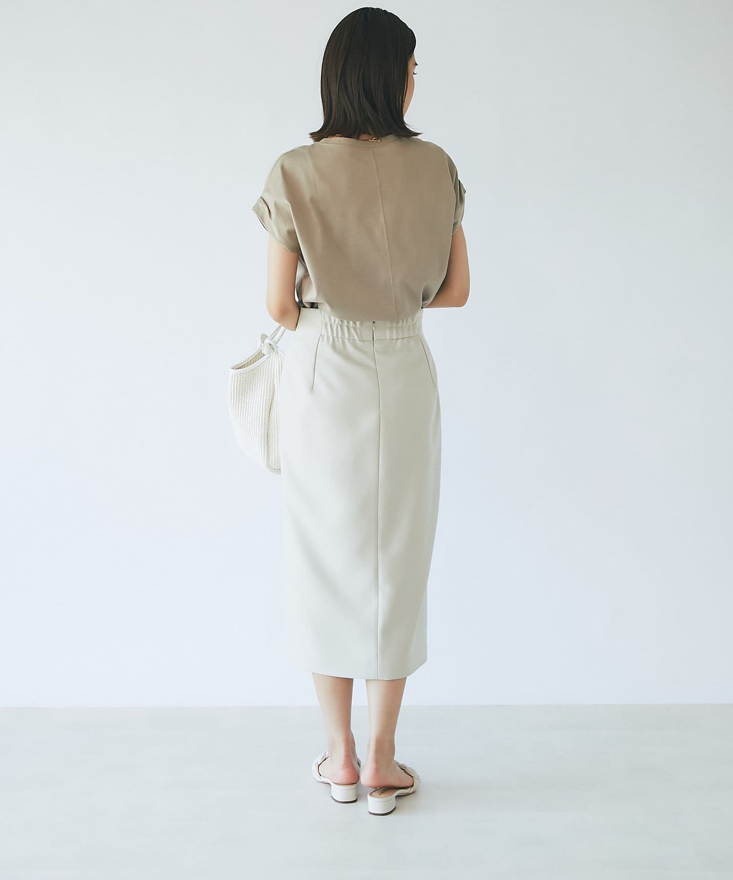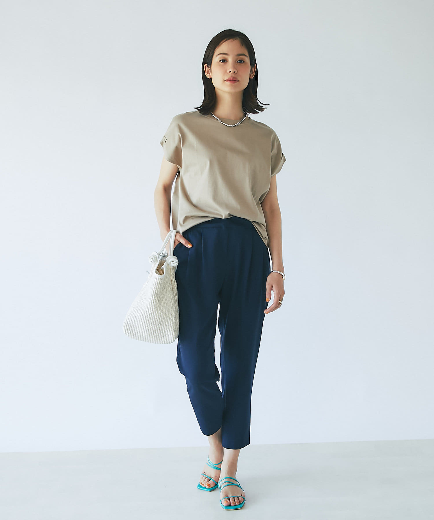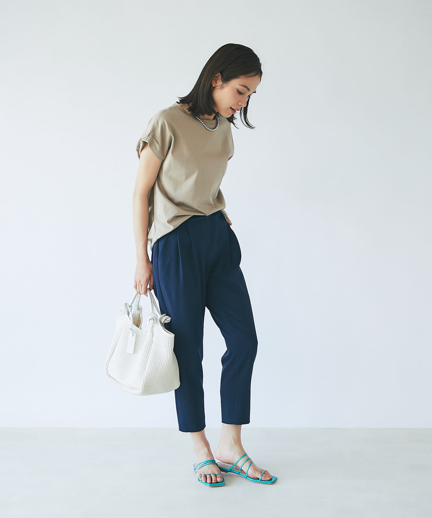 脇に入ったタックが丸みのあるフォルムを作り、女性らしい雰囲気で大人のカジュアルを叶えます。
