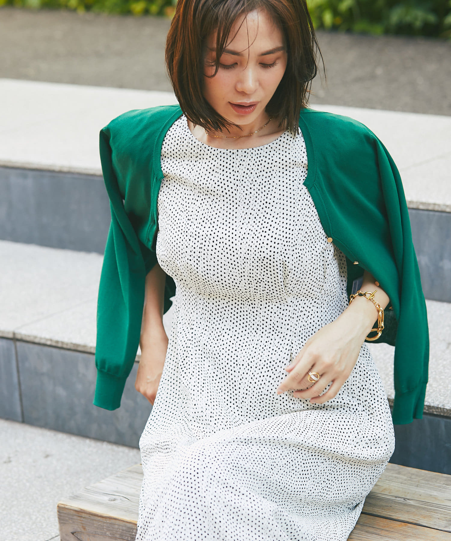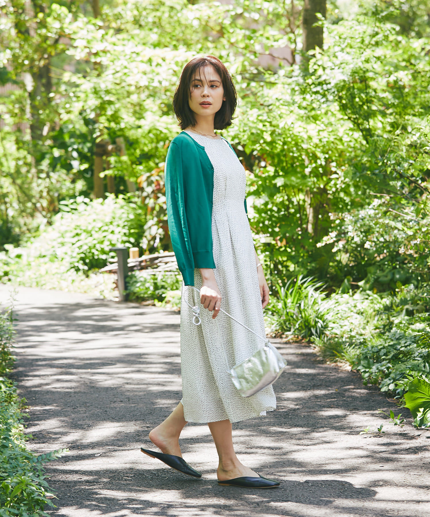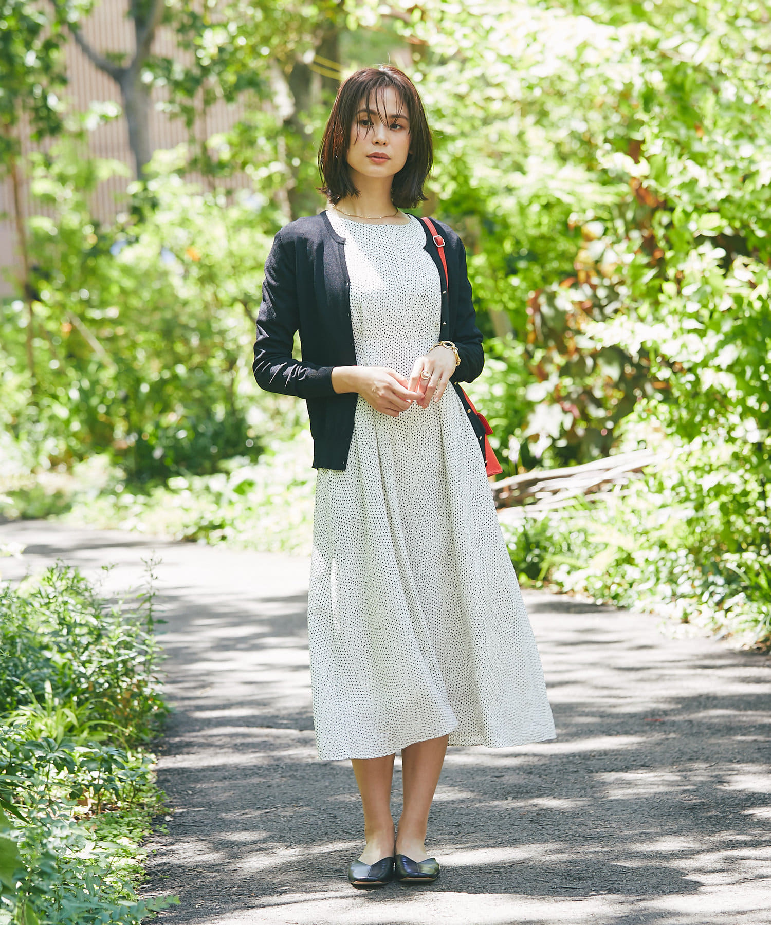 一枚でコーディネートが完成するワンピースですが、羽織ものや小物で印象を変えられるのが嬉しいです。