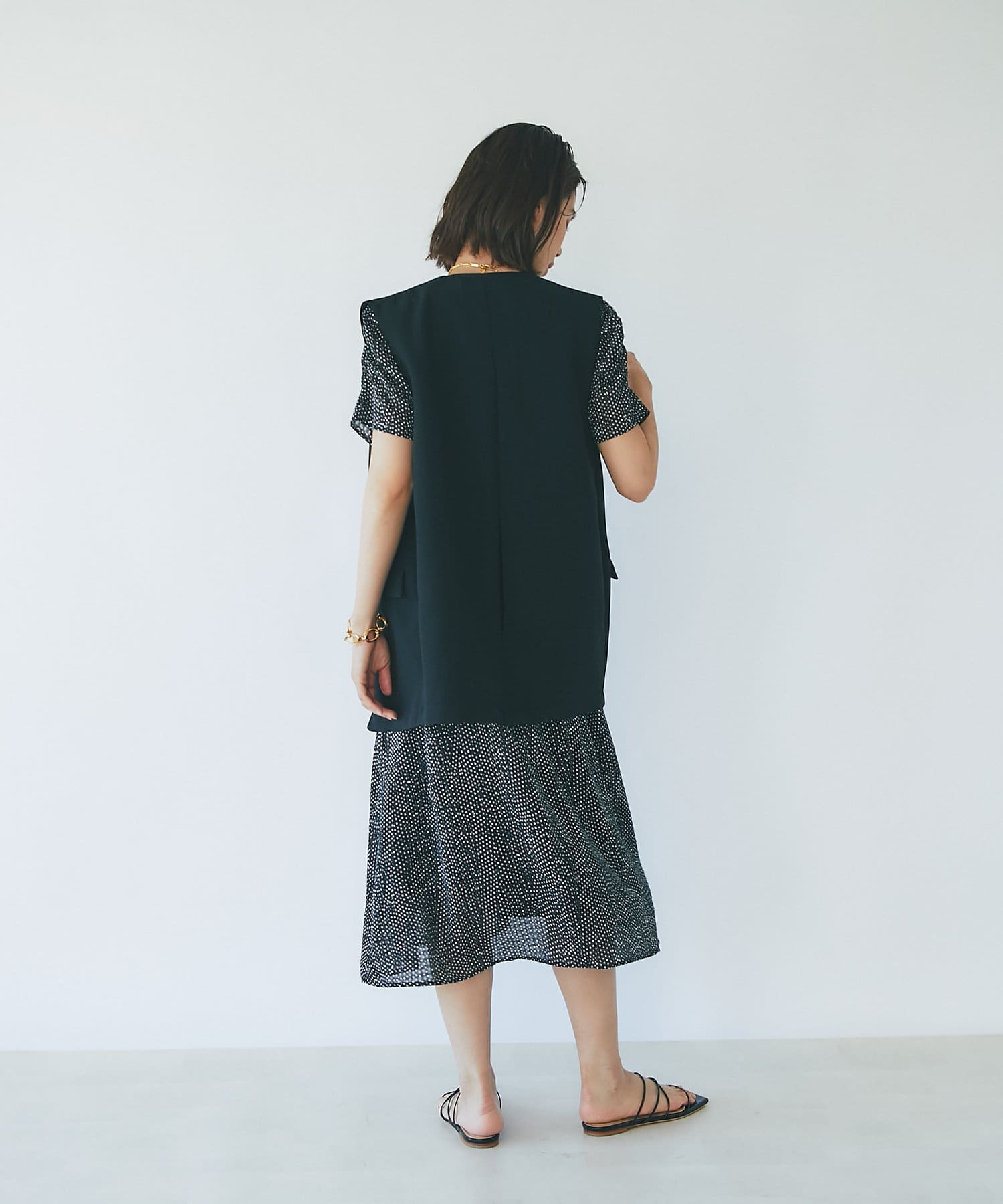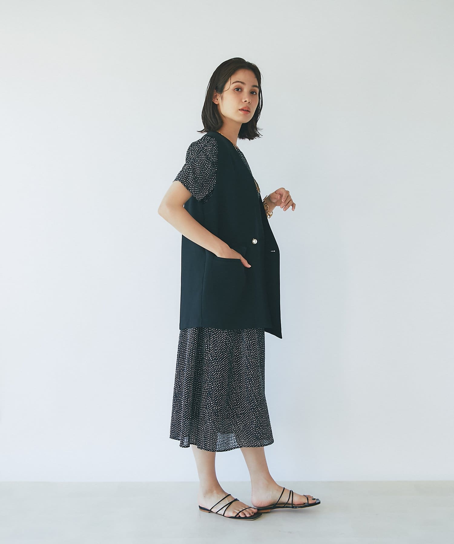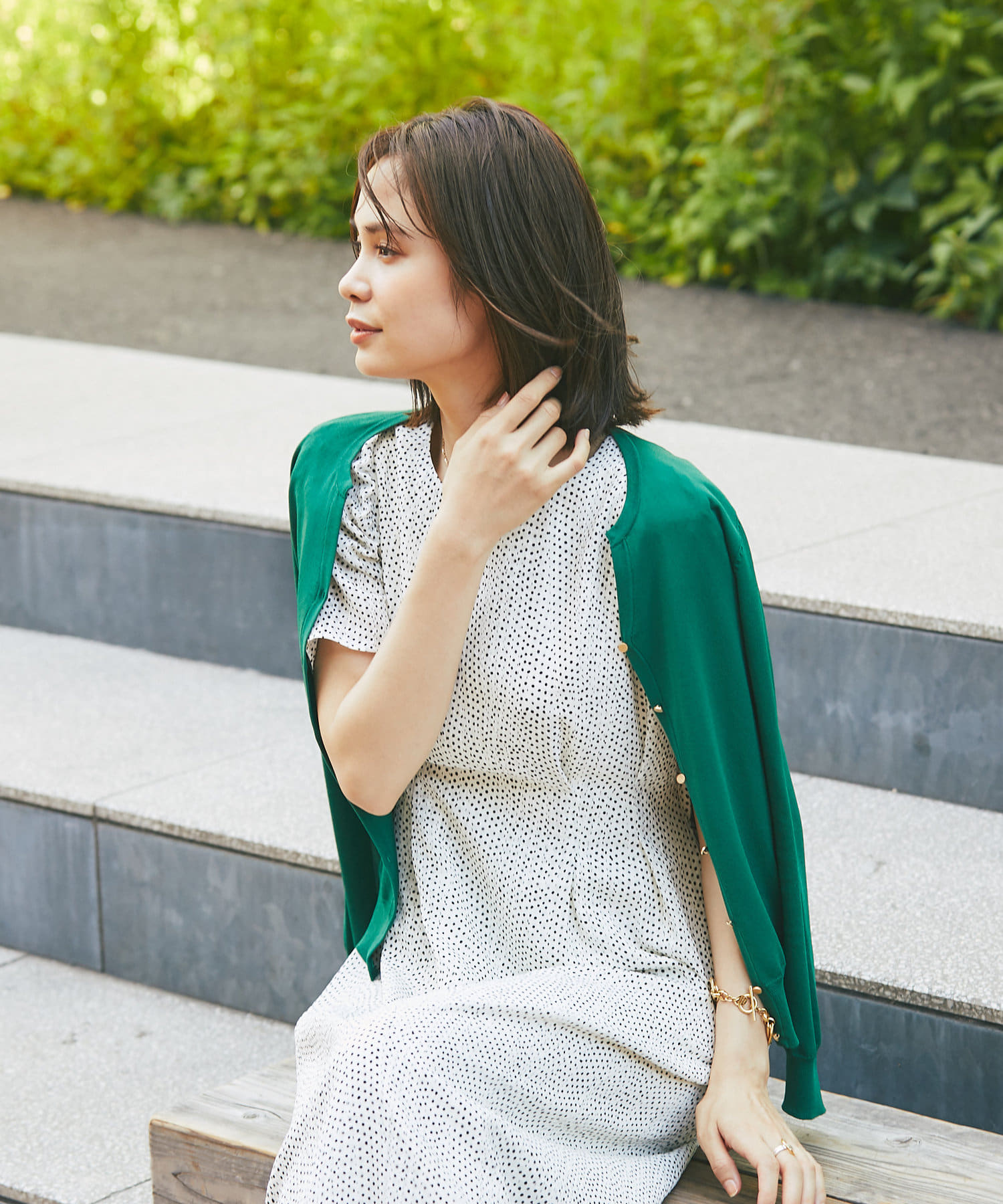 一枚でコーディネートが完成するワンピースですが、羽織ものや小物で印象を変えられるのが嬉しいです。