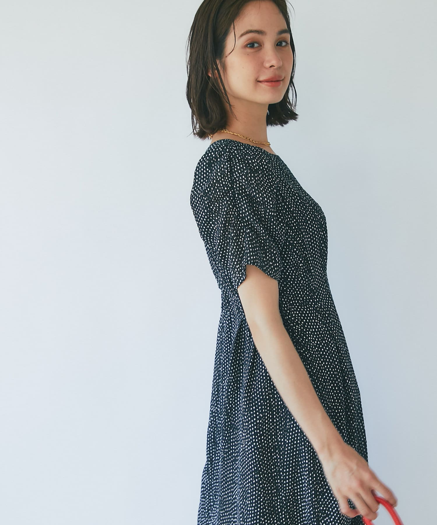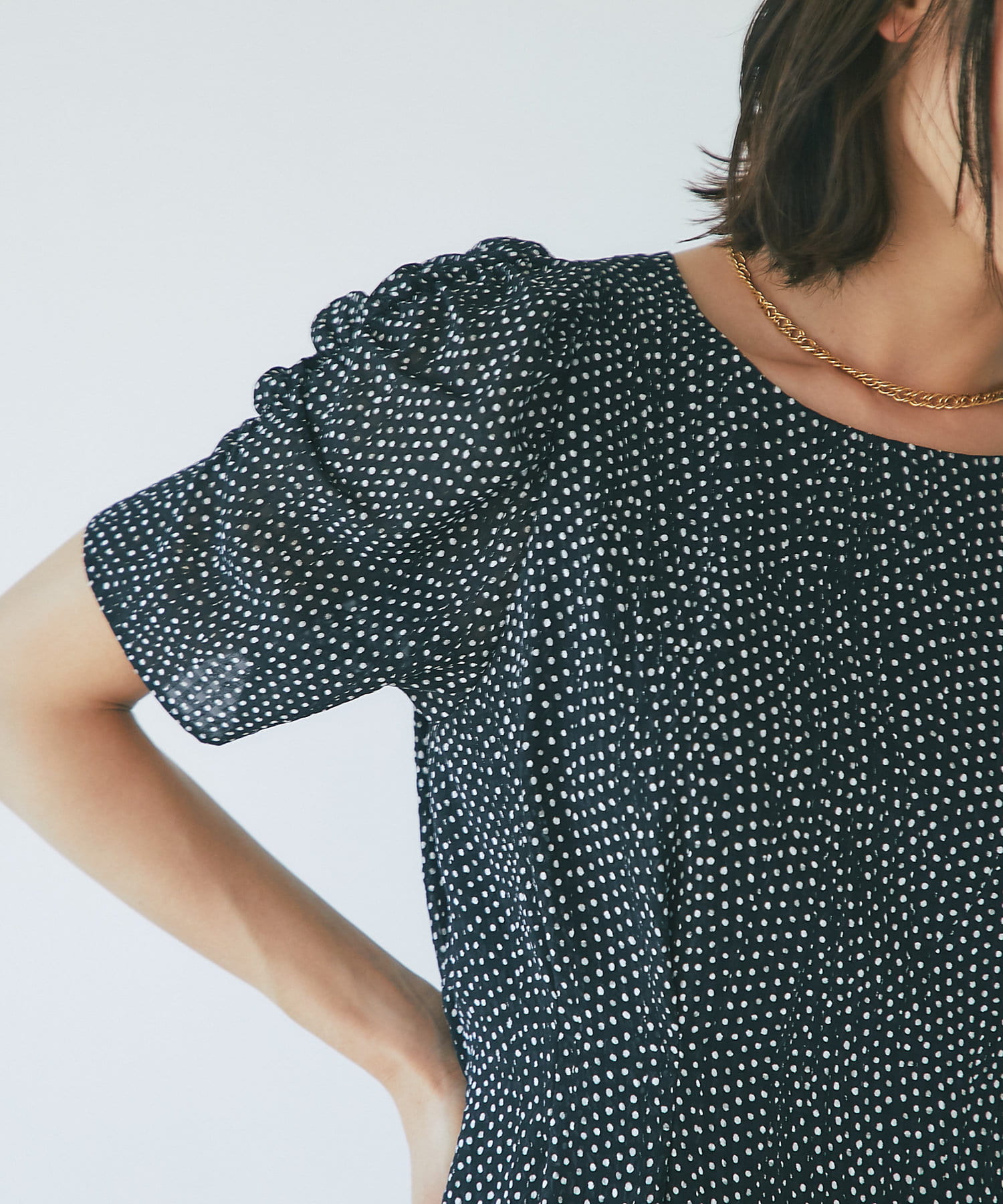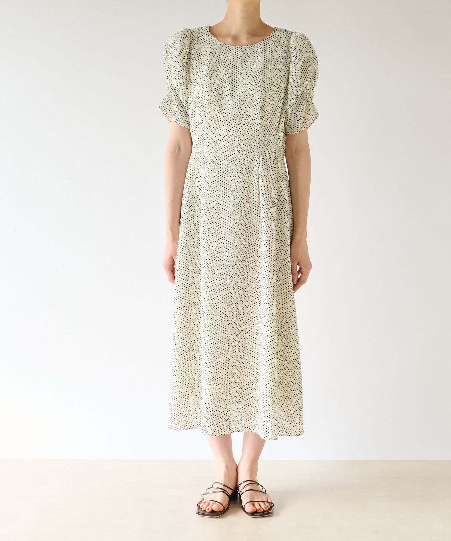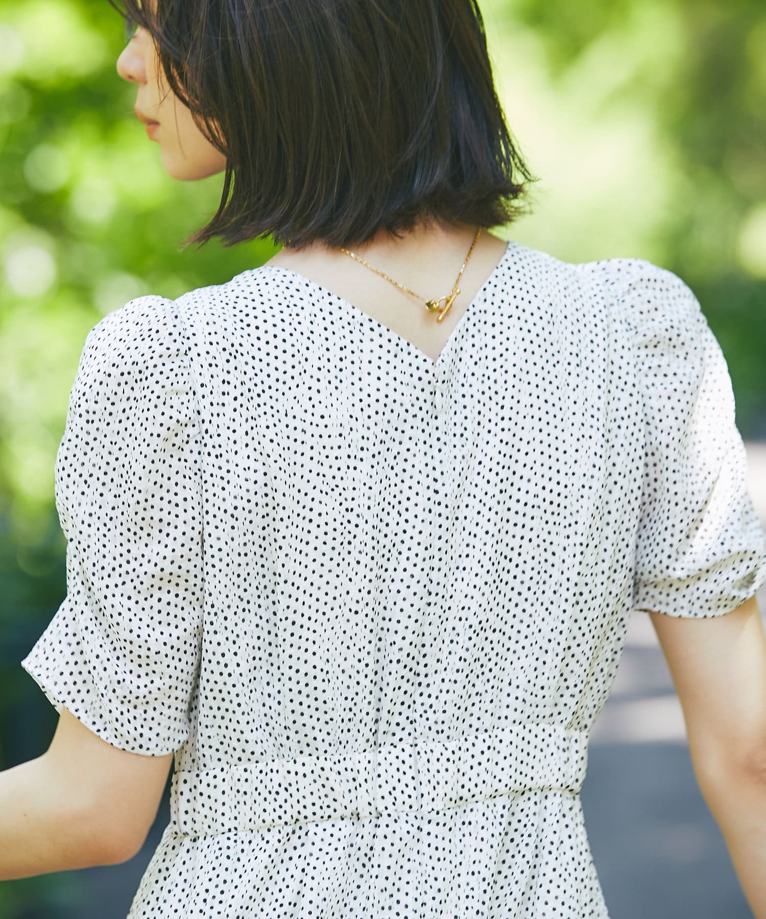【さらりと着られる】サッカードットプリントパワショルワンピース