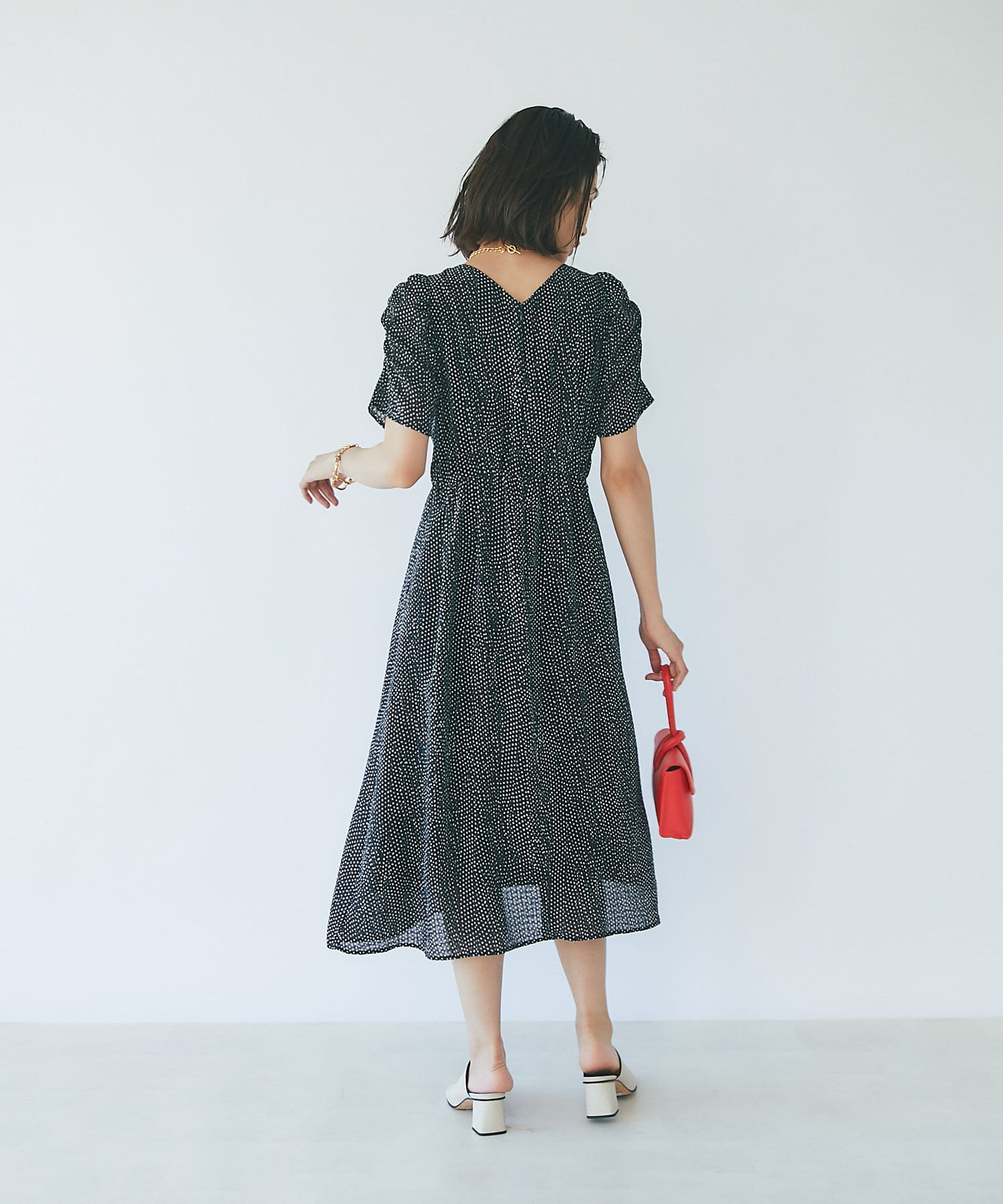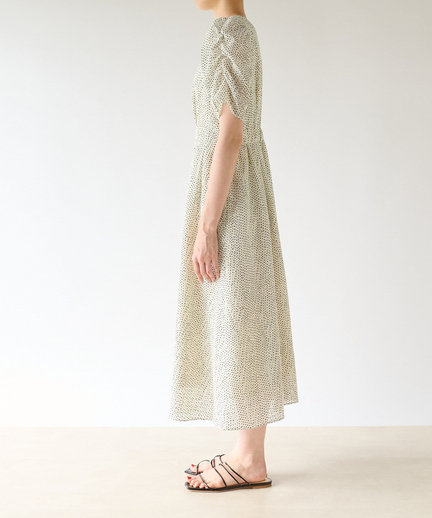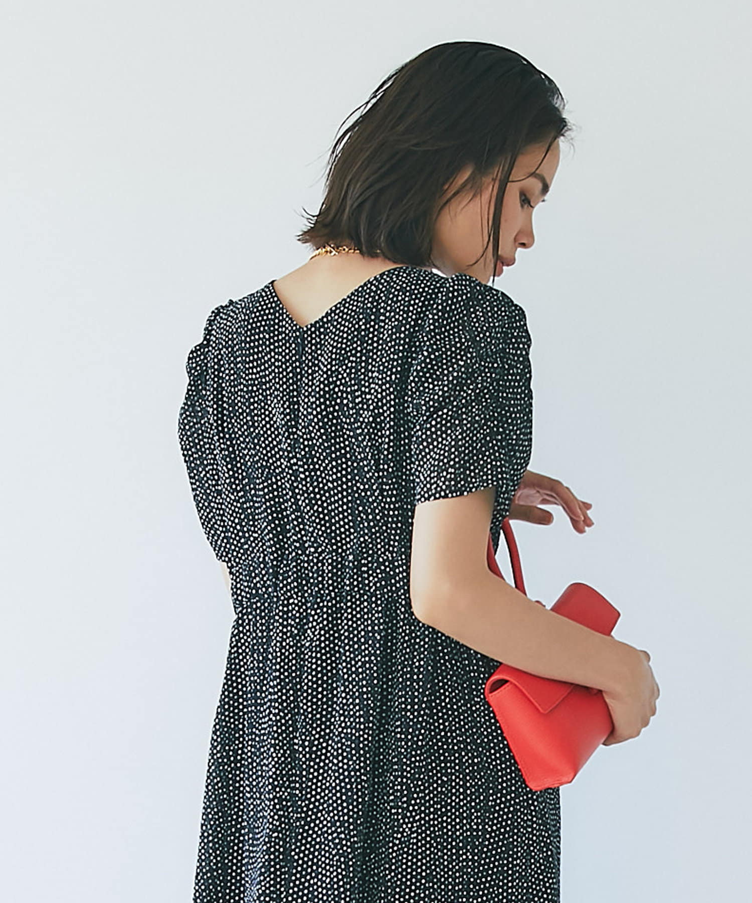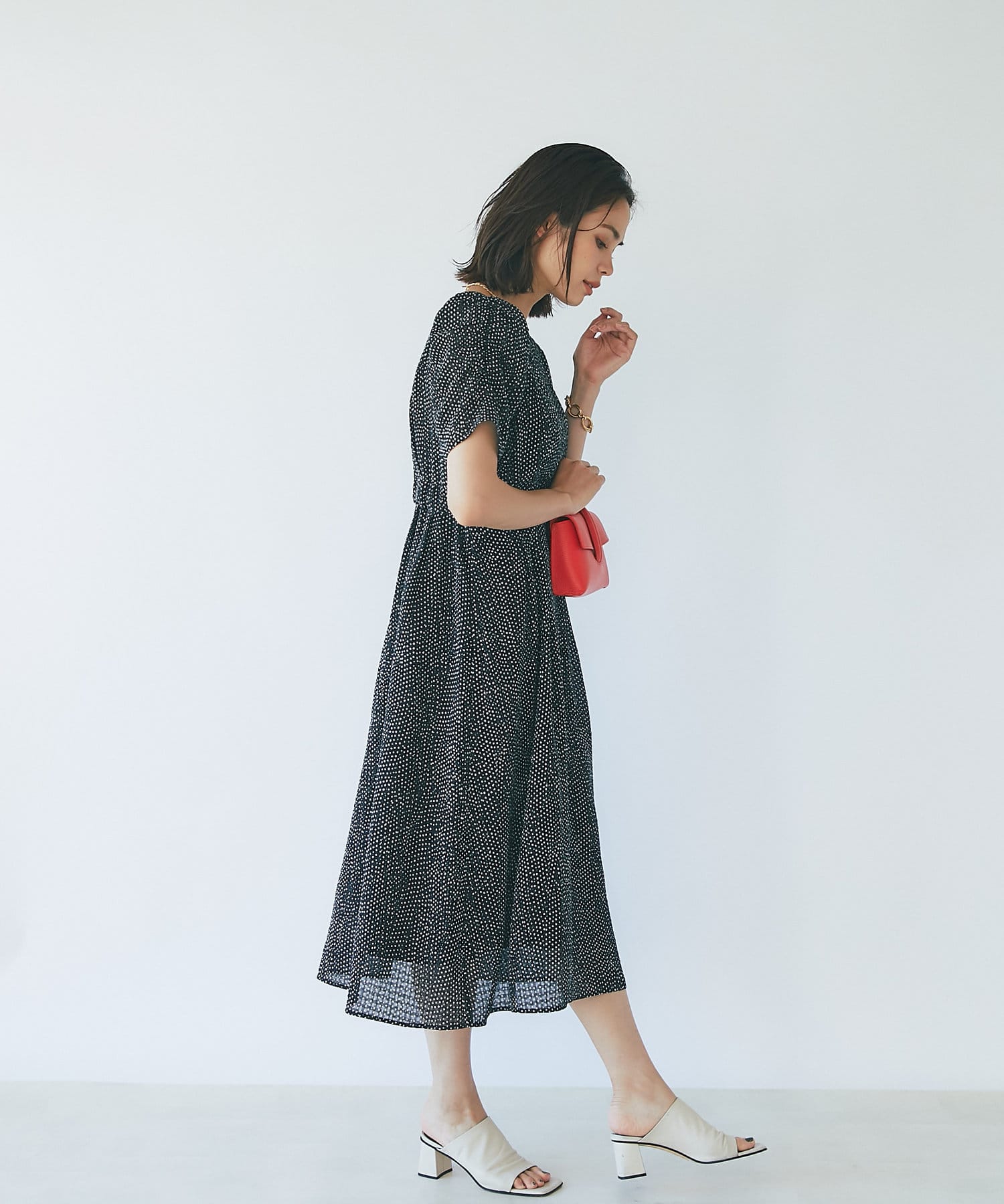 【さらりと着られる】サッカードットプリントパワショルワンピース