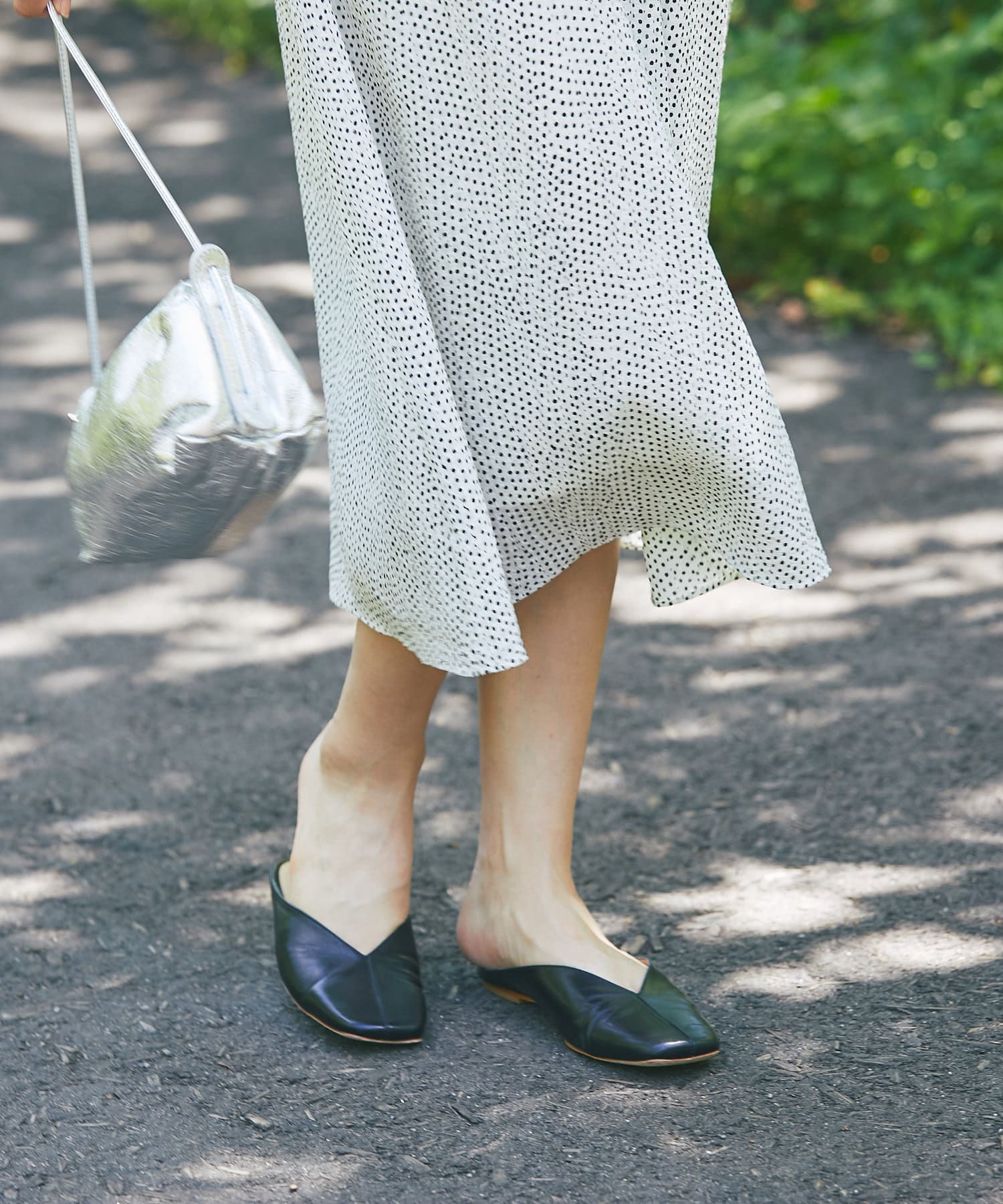 毎回好評で完売するドット柄のワンピースですが、今回は長過ぎないロング丈です。