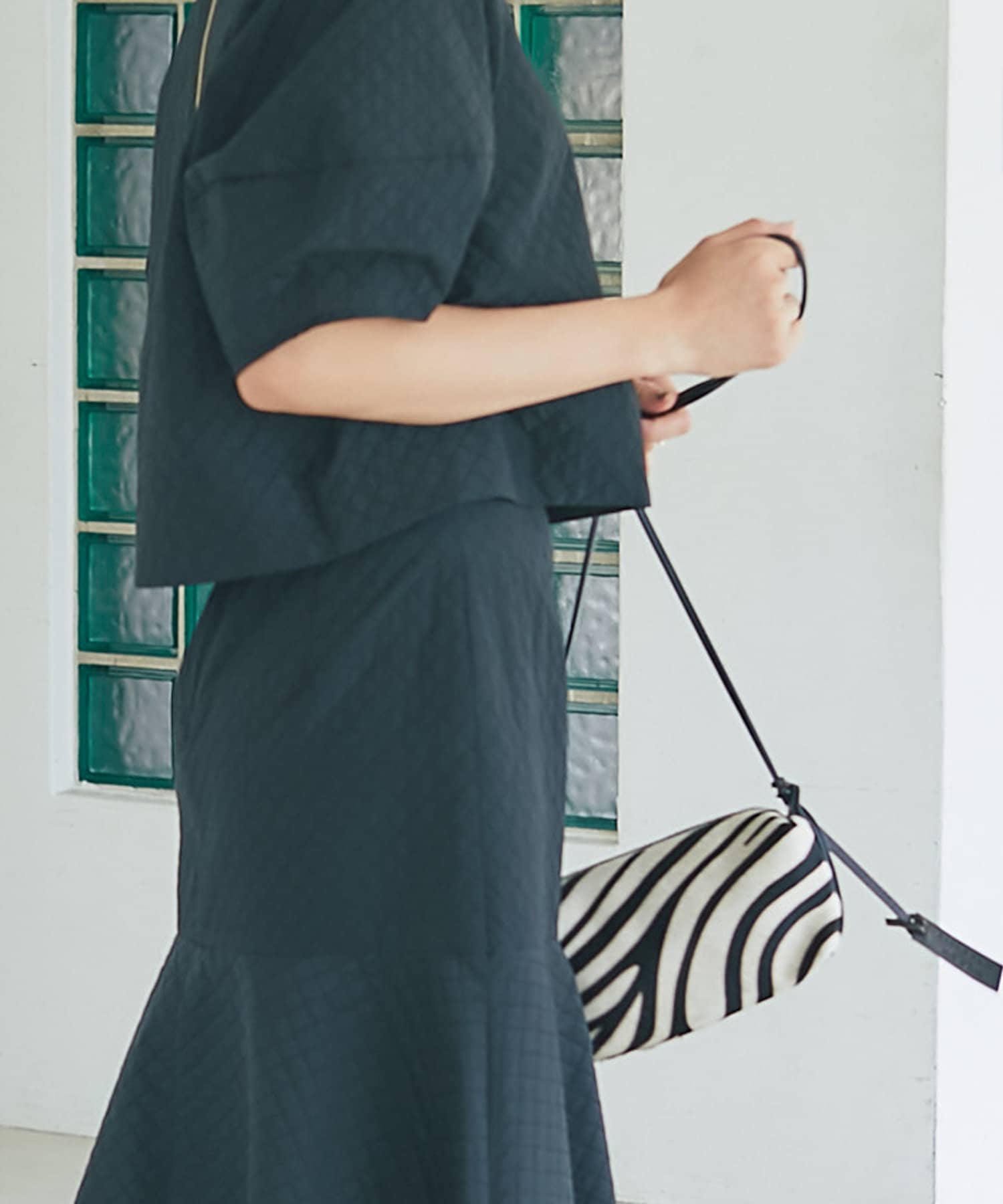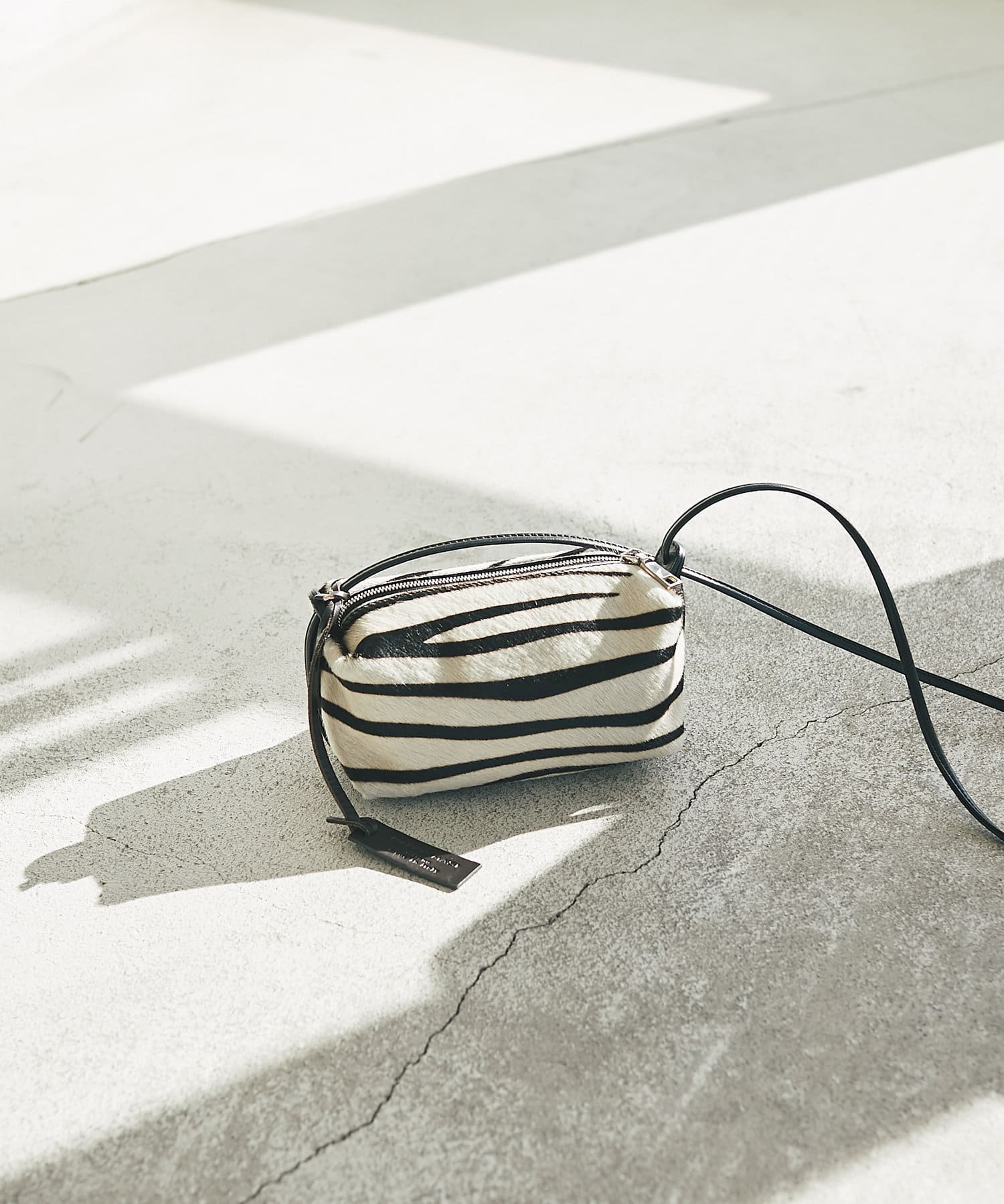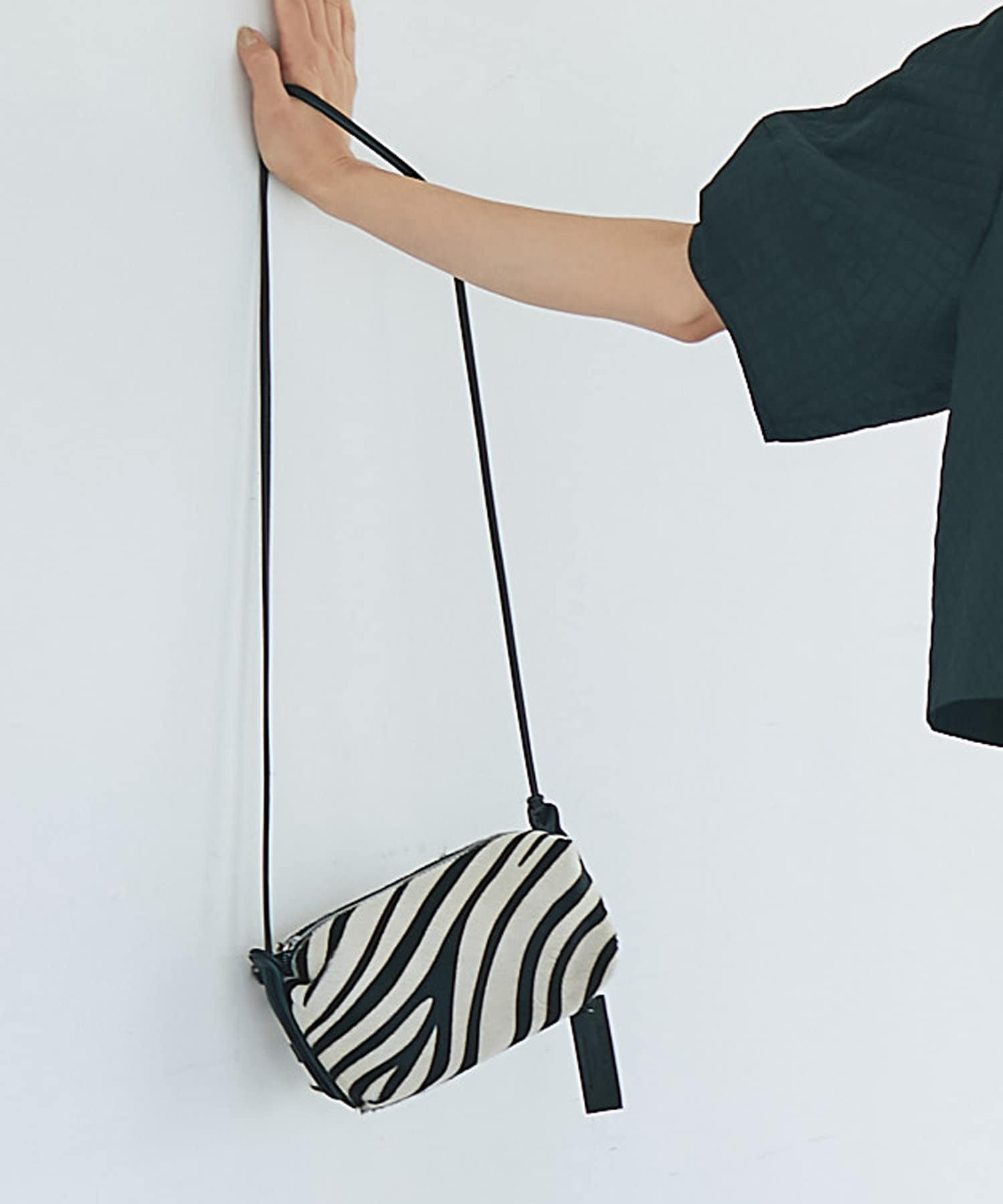コーディネートのアクセントに取り入れやすいゼブラ柄のポシェット。