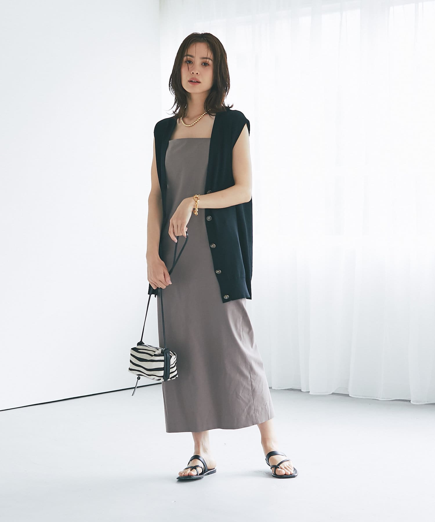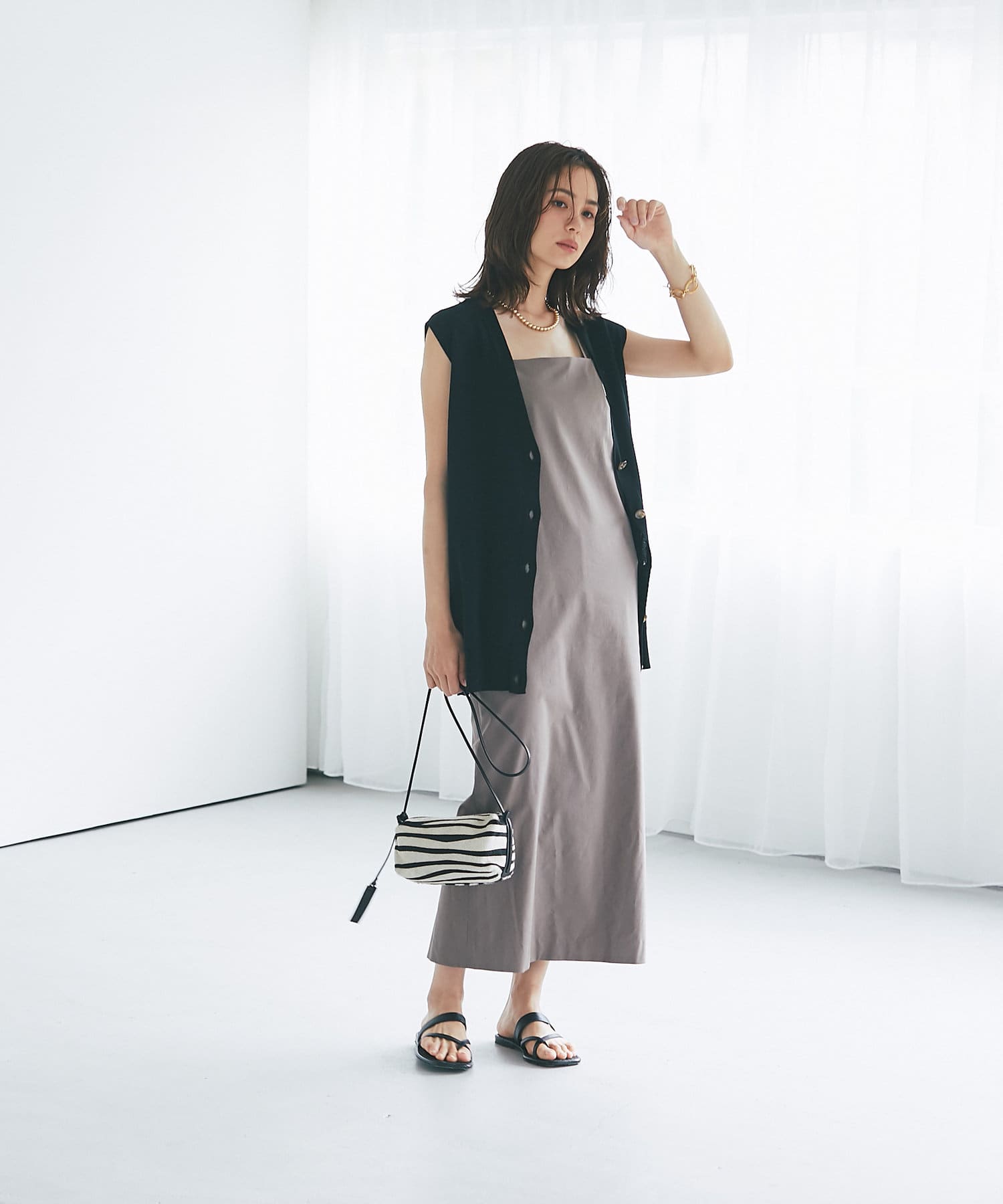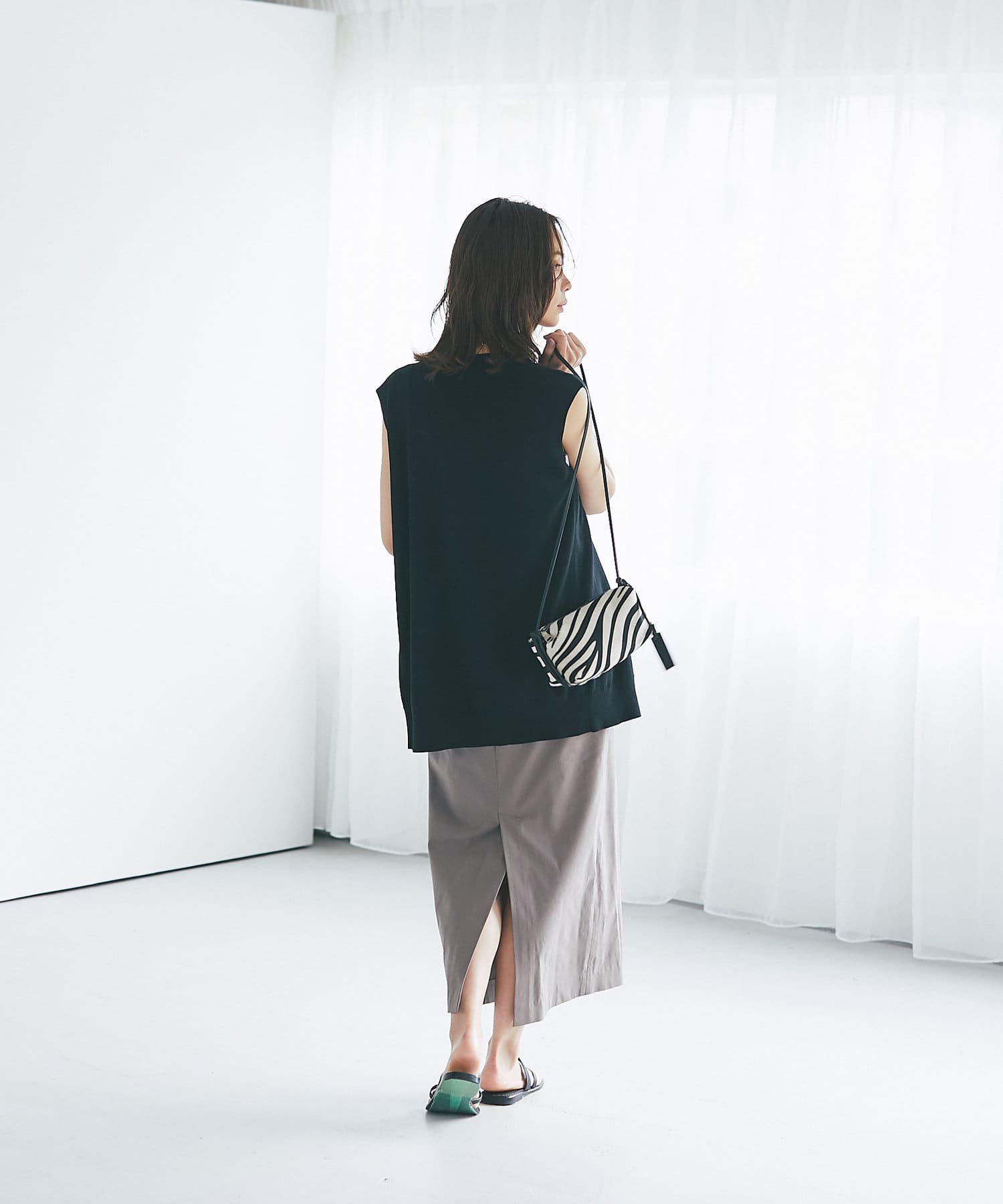 コーディネートのアクセントに取り入れやすいゼブラ柄のポシェット。