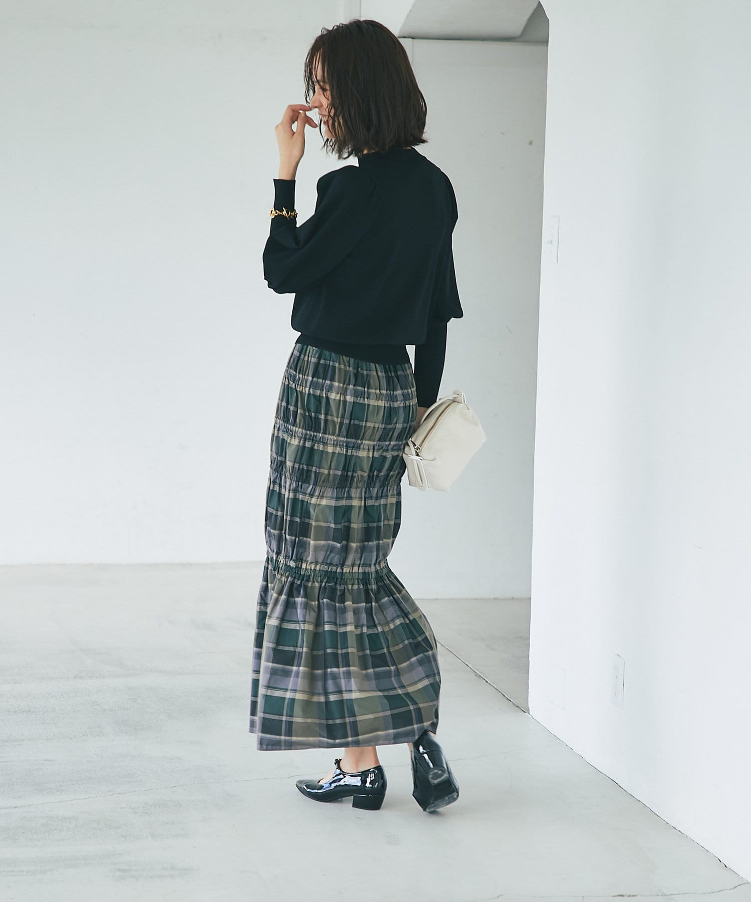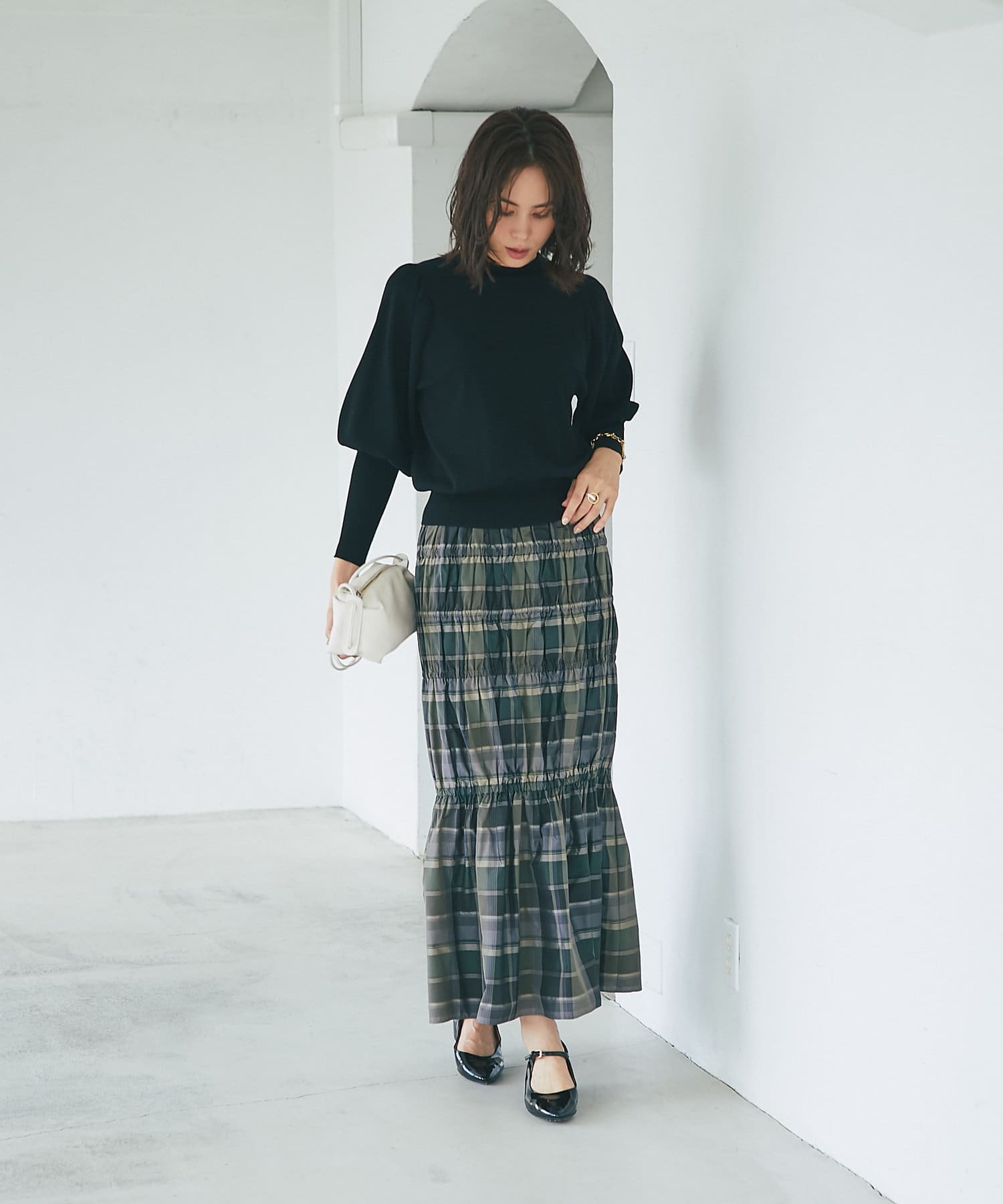 #ポリエステル #美シルエット #シャーリング #ギャザー #タフタ #マーメイドスカート #デイリーユース