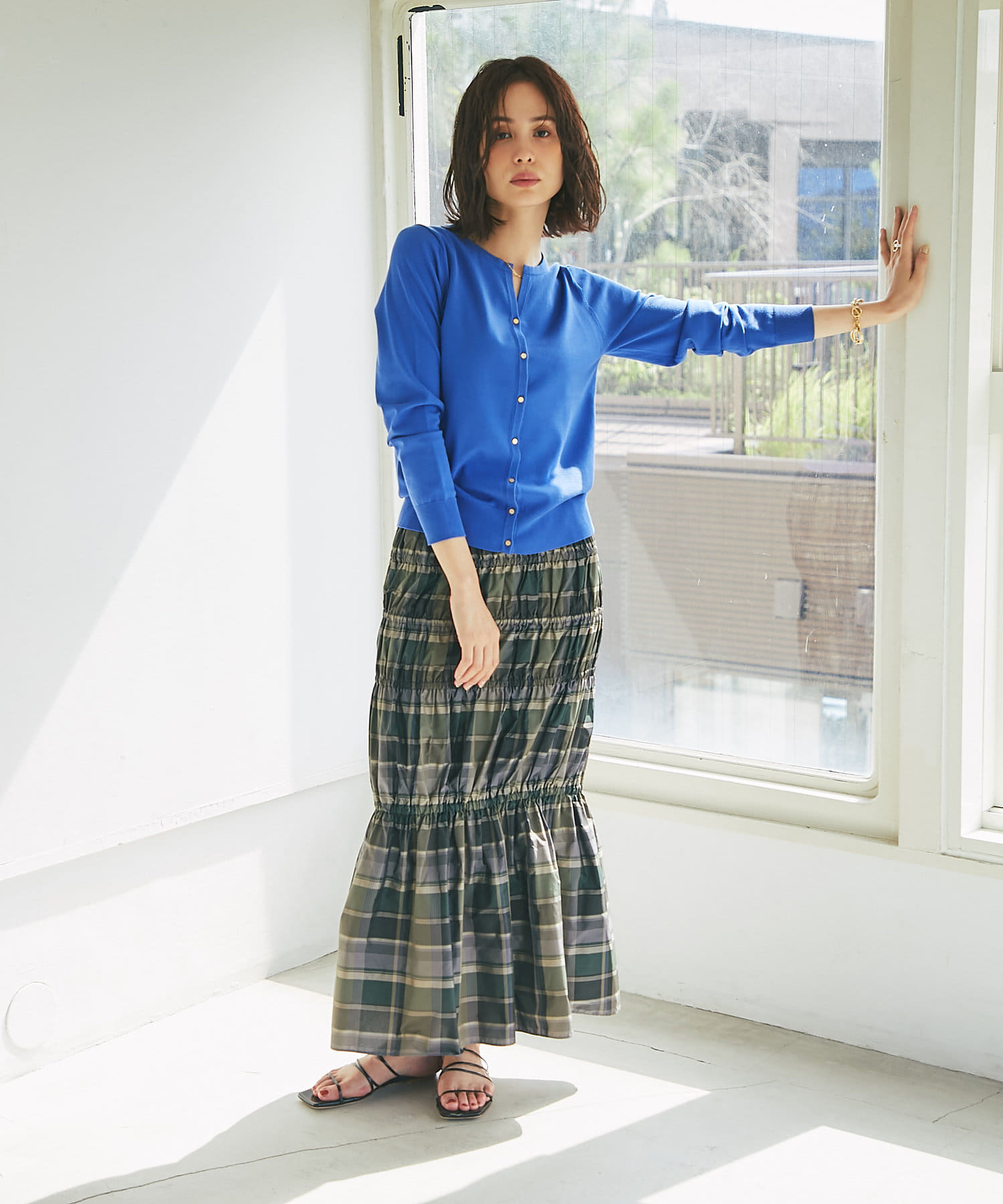 女らしいマーメイドラインのスカートは軽く、しなやかなタフタ素材でシーズンレスアイテム。