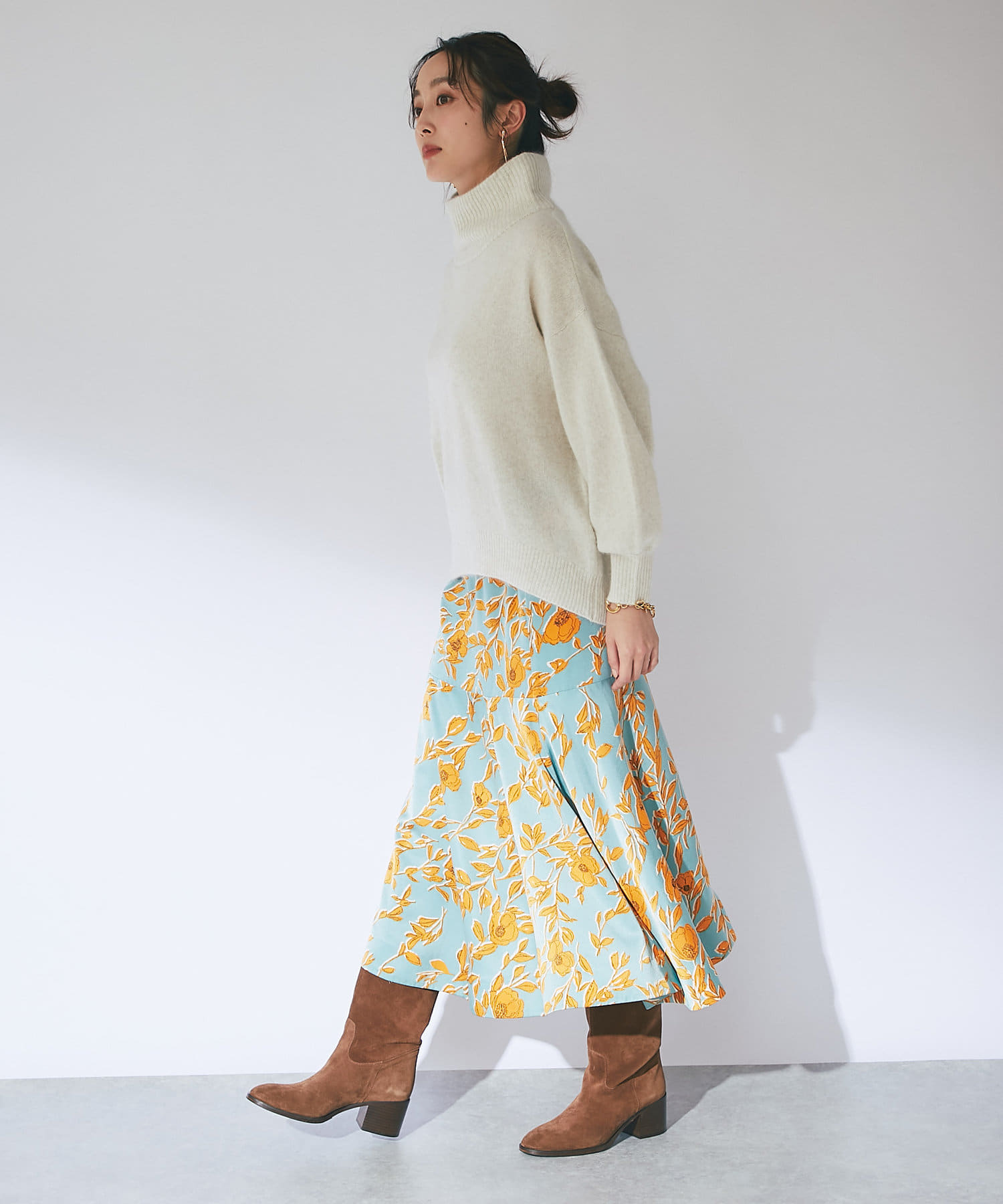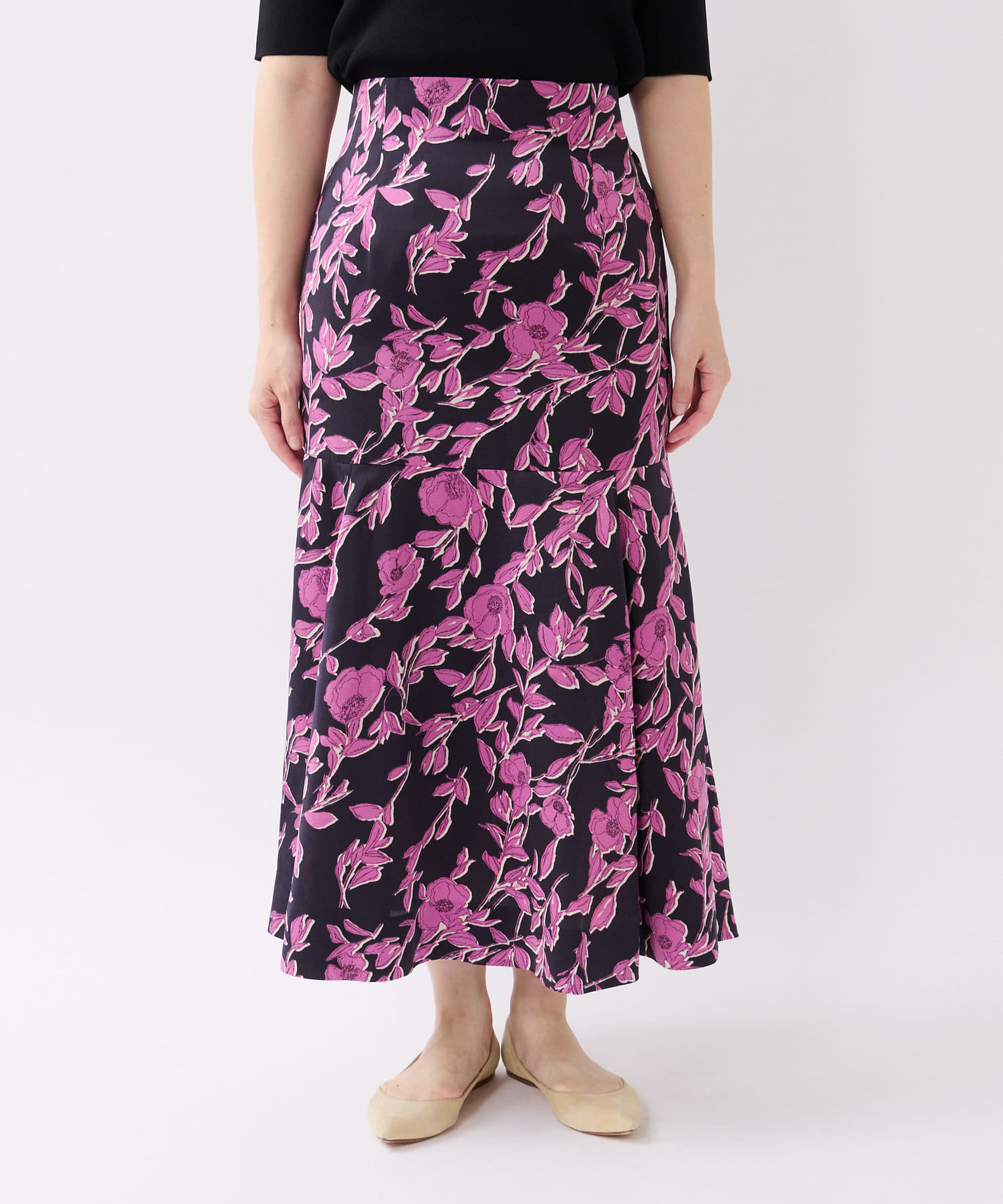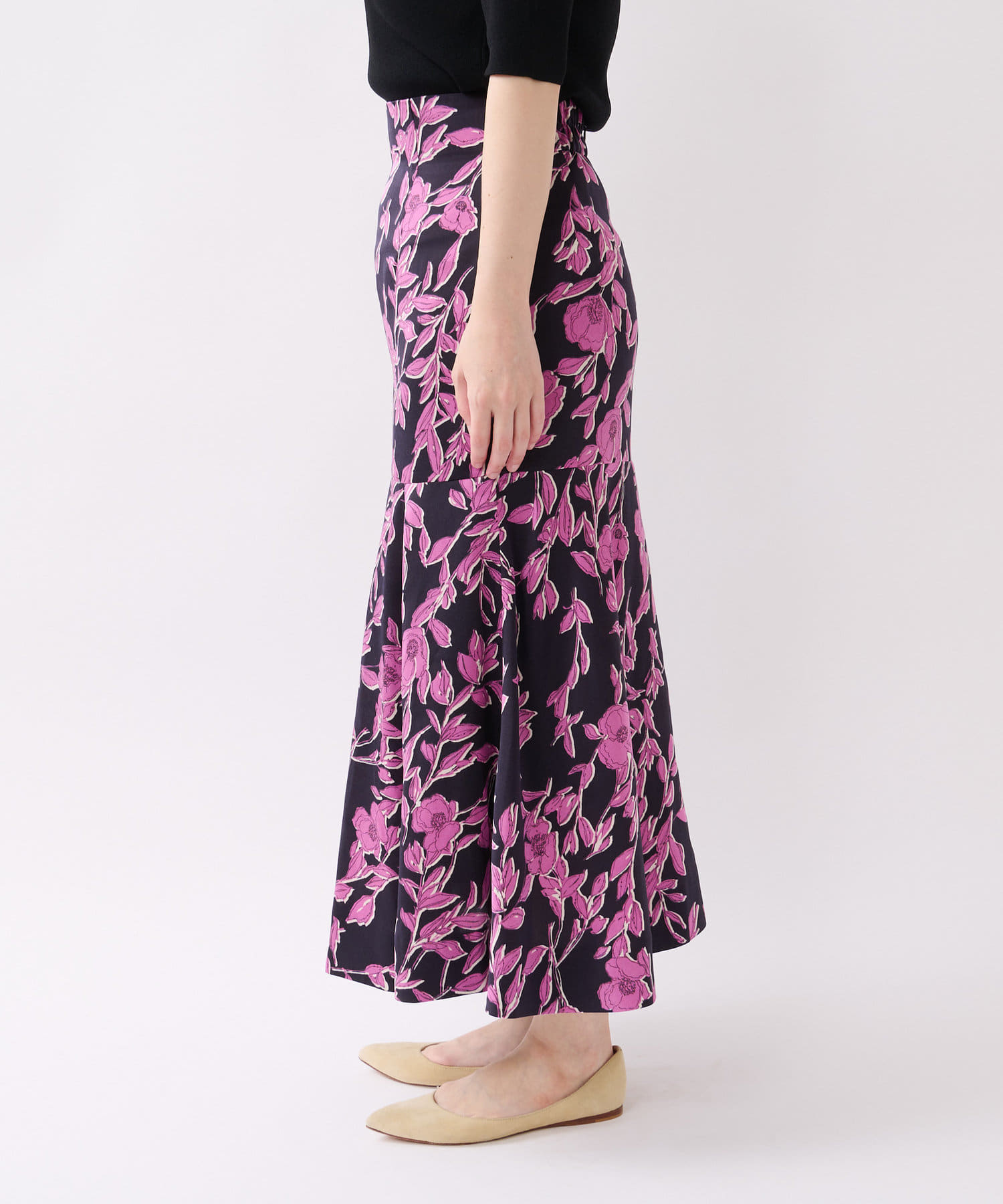 【セットアップ可】サテンフラワープリントマーメイドスカート
