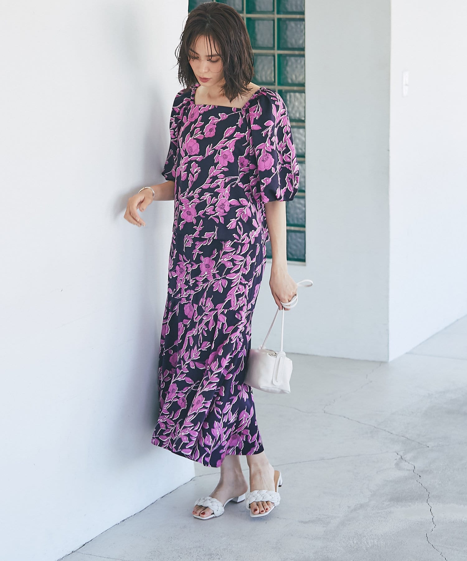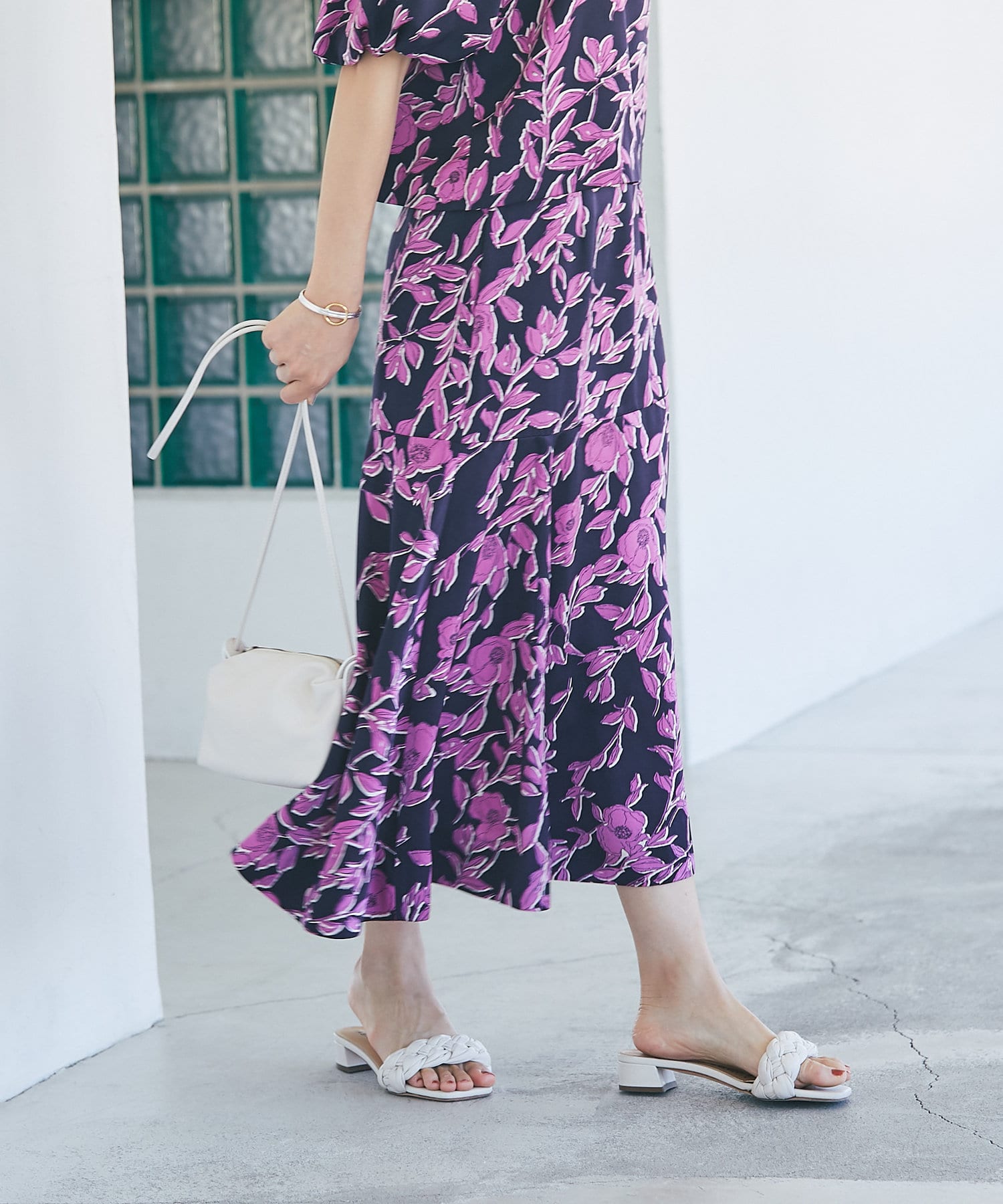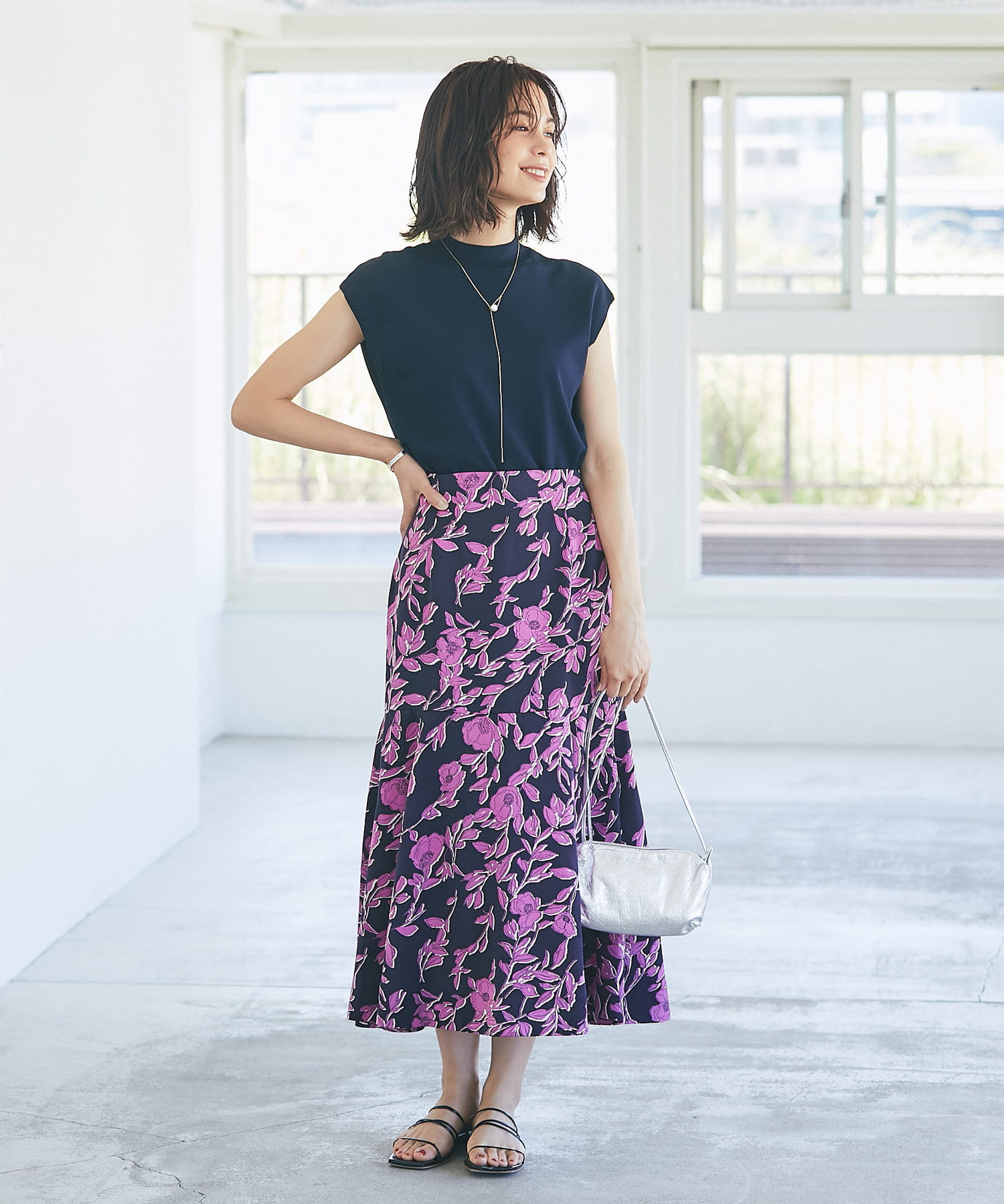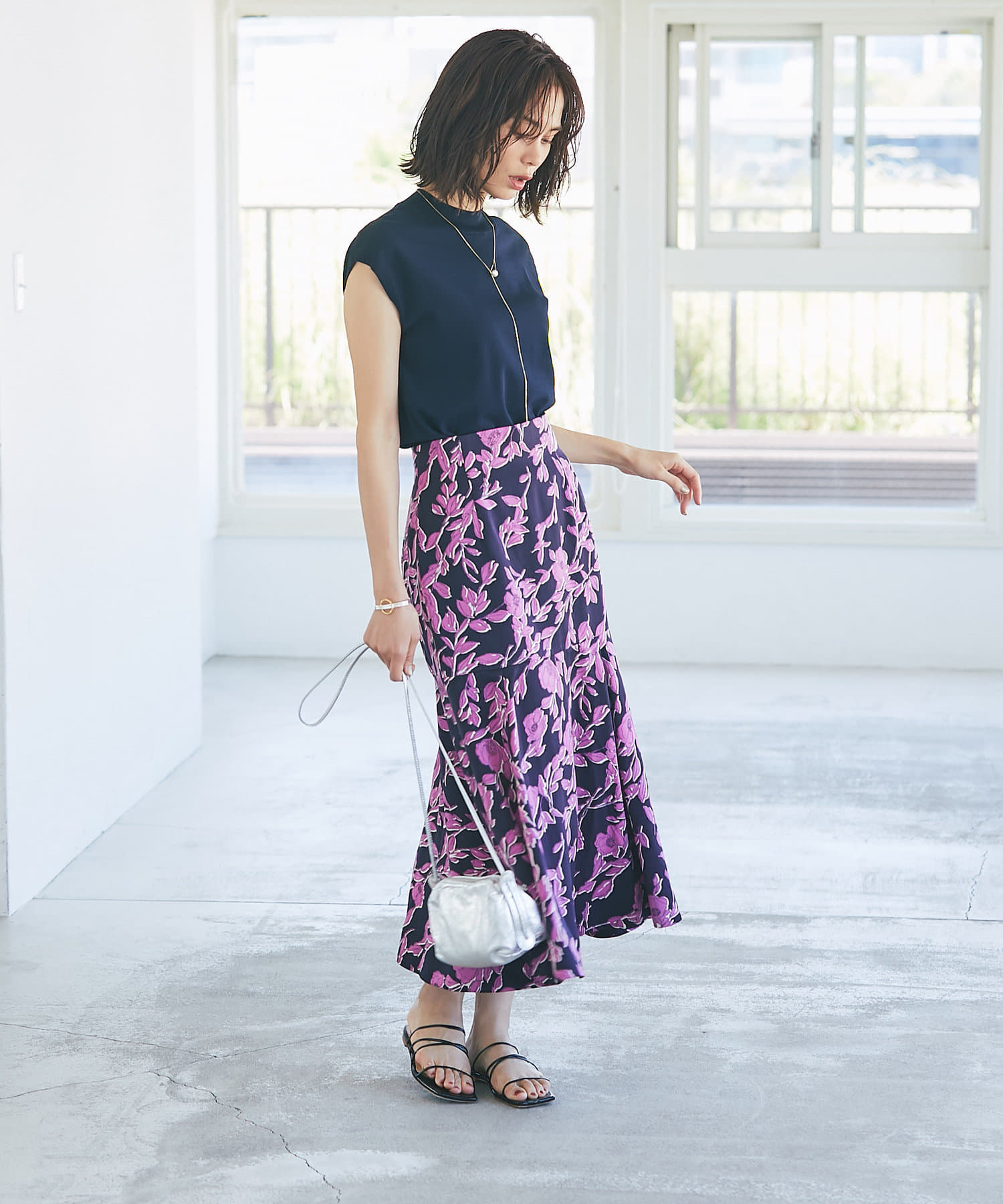 #大人カジュアル #きれいめカジュアル #上品カジュアル #マーメイドスカート #サテン #フラワープリント #中花柄 #華やぎアイテム