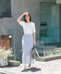 また、マーメイドラインが女性らしくフェミニンな雰囲気を演出しますが、合わせるトップスなどで印象が変わるので、様々な着こなしを楽しんで頂きたいアイテム。