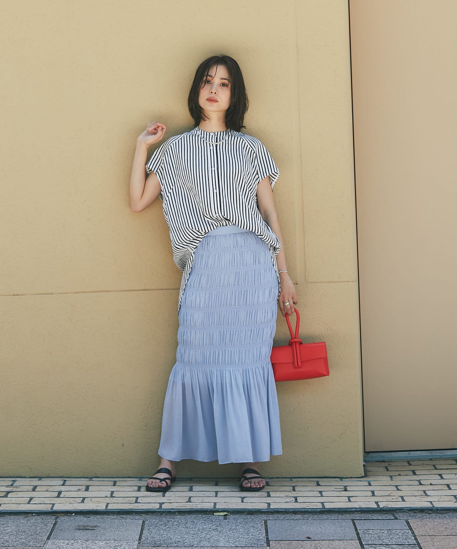 シャーリングのマーメイドスカートは柔らかい素材で細見えが嬉しい一枚です。