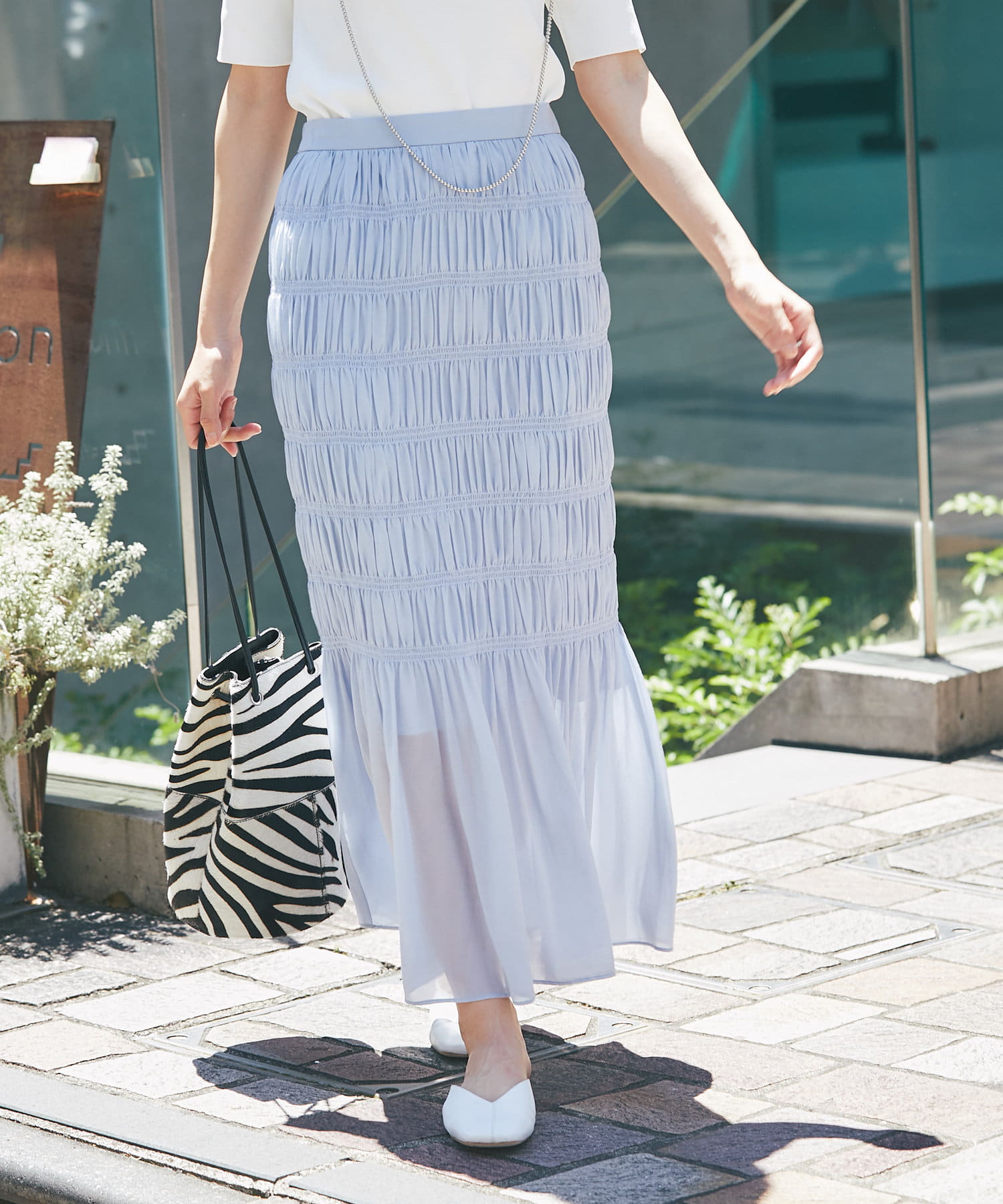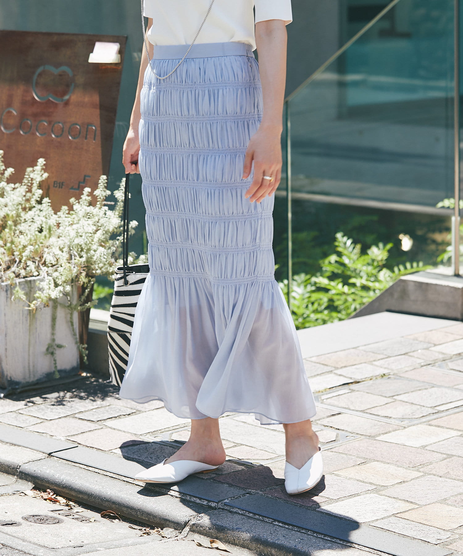 【大人のフェミニン】シャーリングギャザーマーメイドスカート