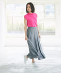 腰回りはすっきりと、裾に向かって広がるマーメイドラインが女性らしく、華奢見え効果にも期待できます。
