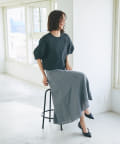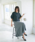 スカートは女らしいマーメイドラインで腰まわりはすっきりと、揺れ動くシルエットが綺麗な一枚。