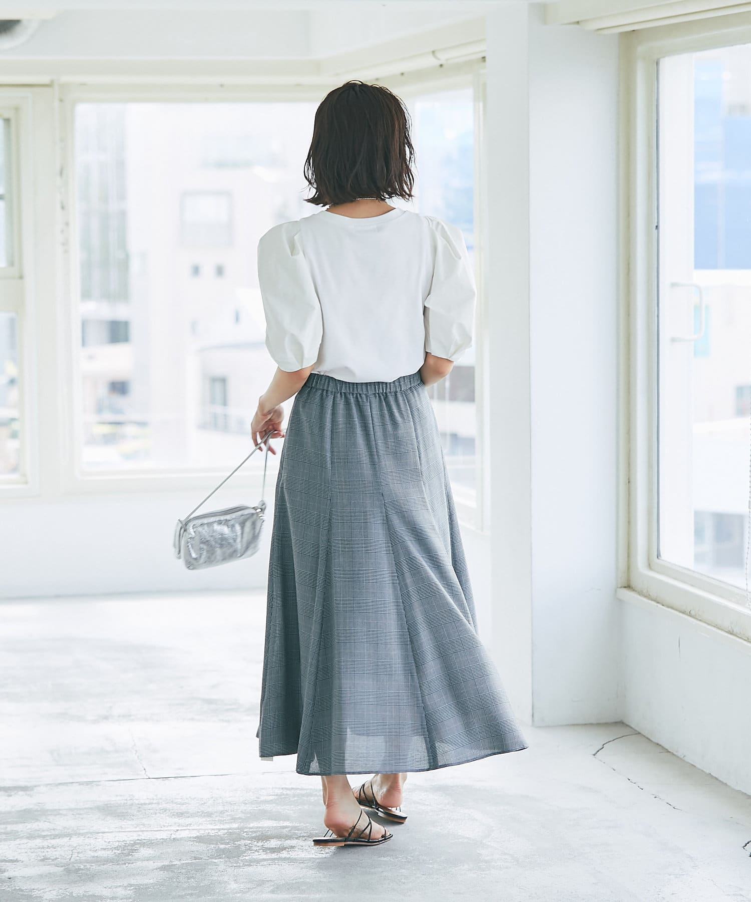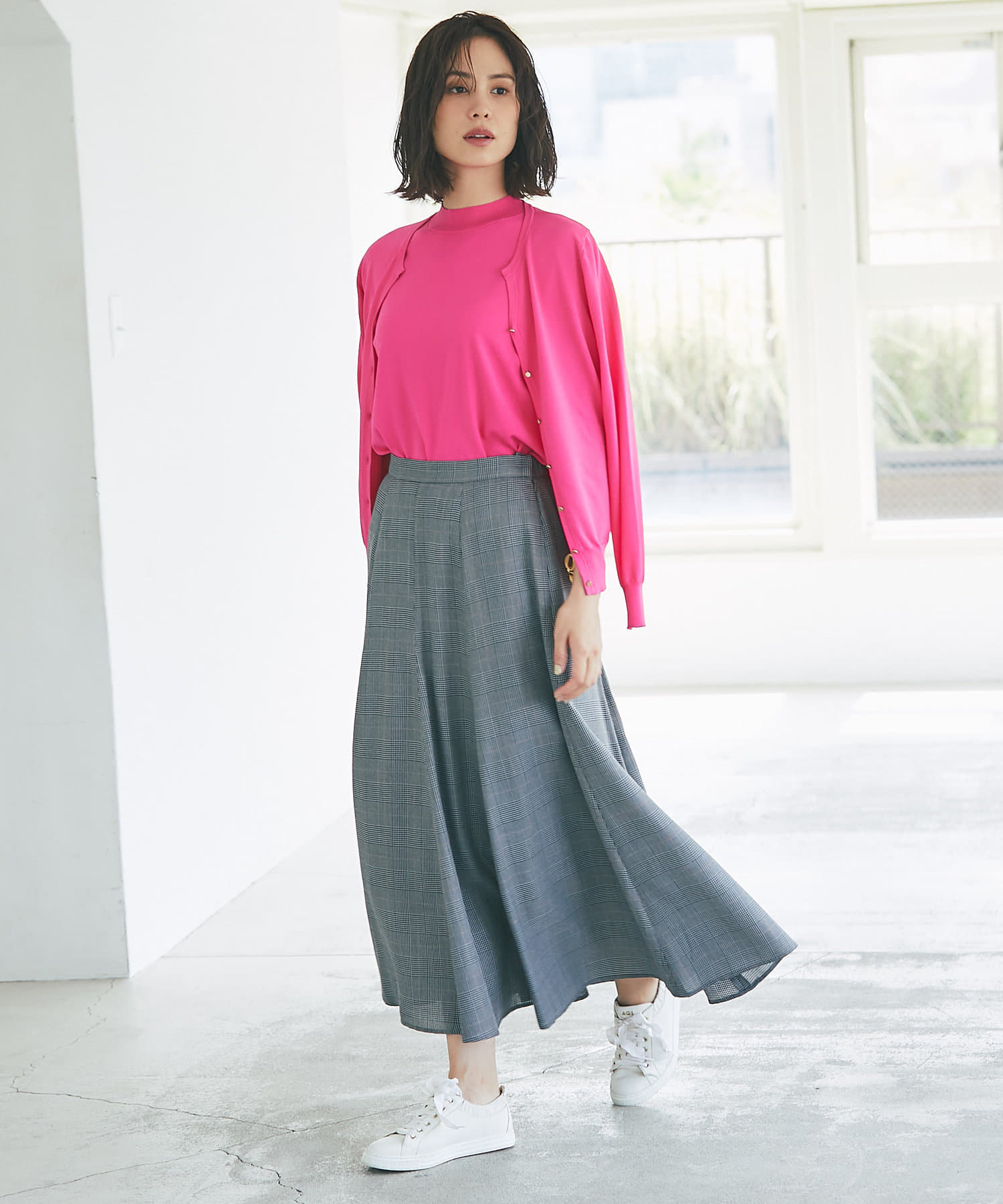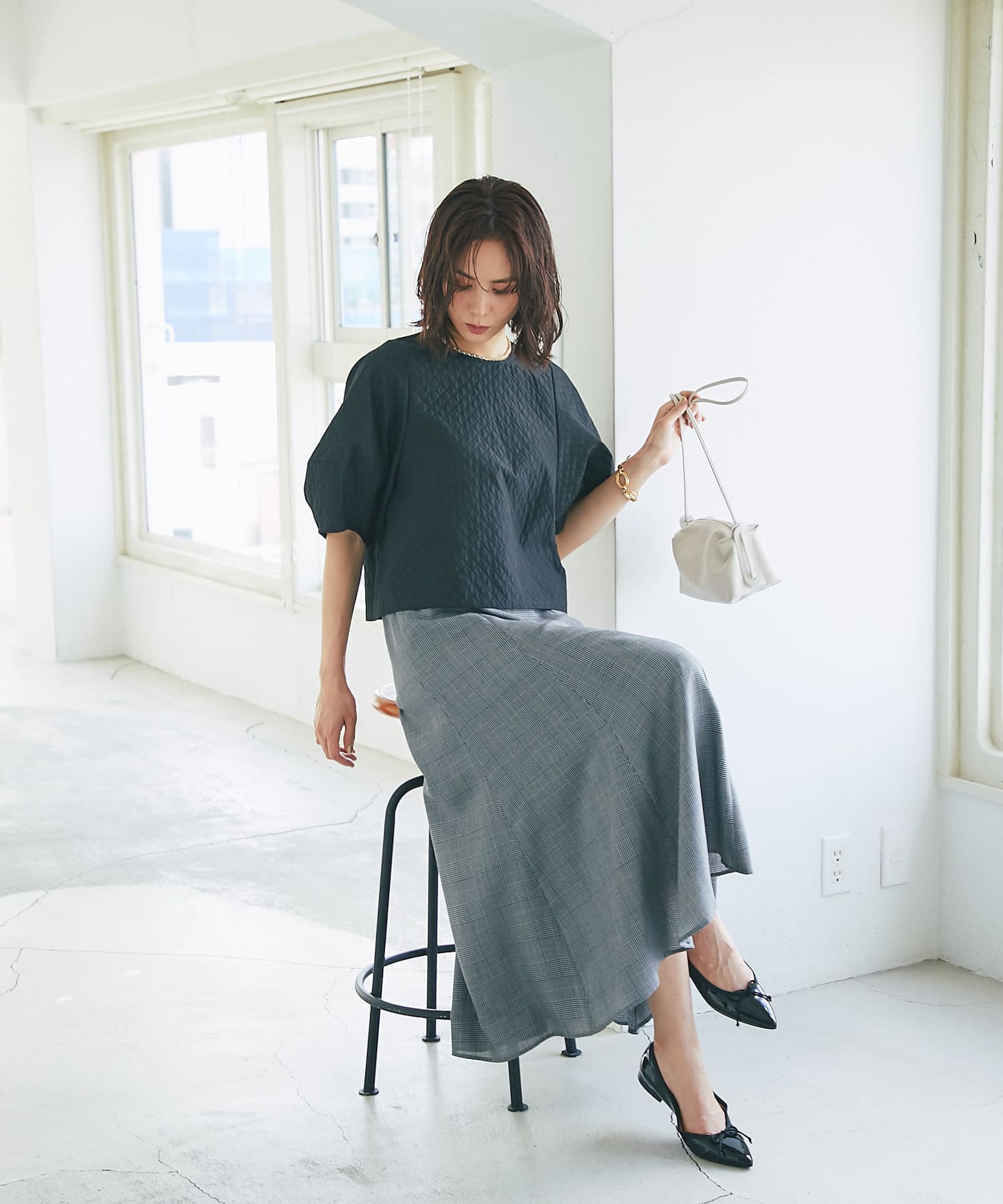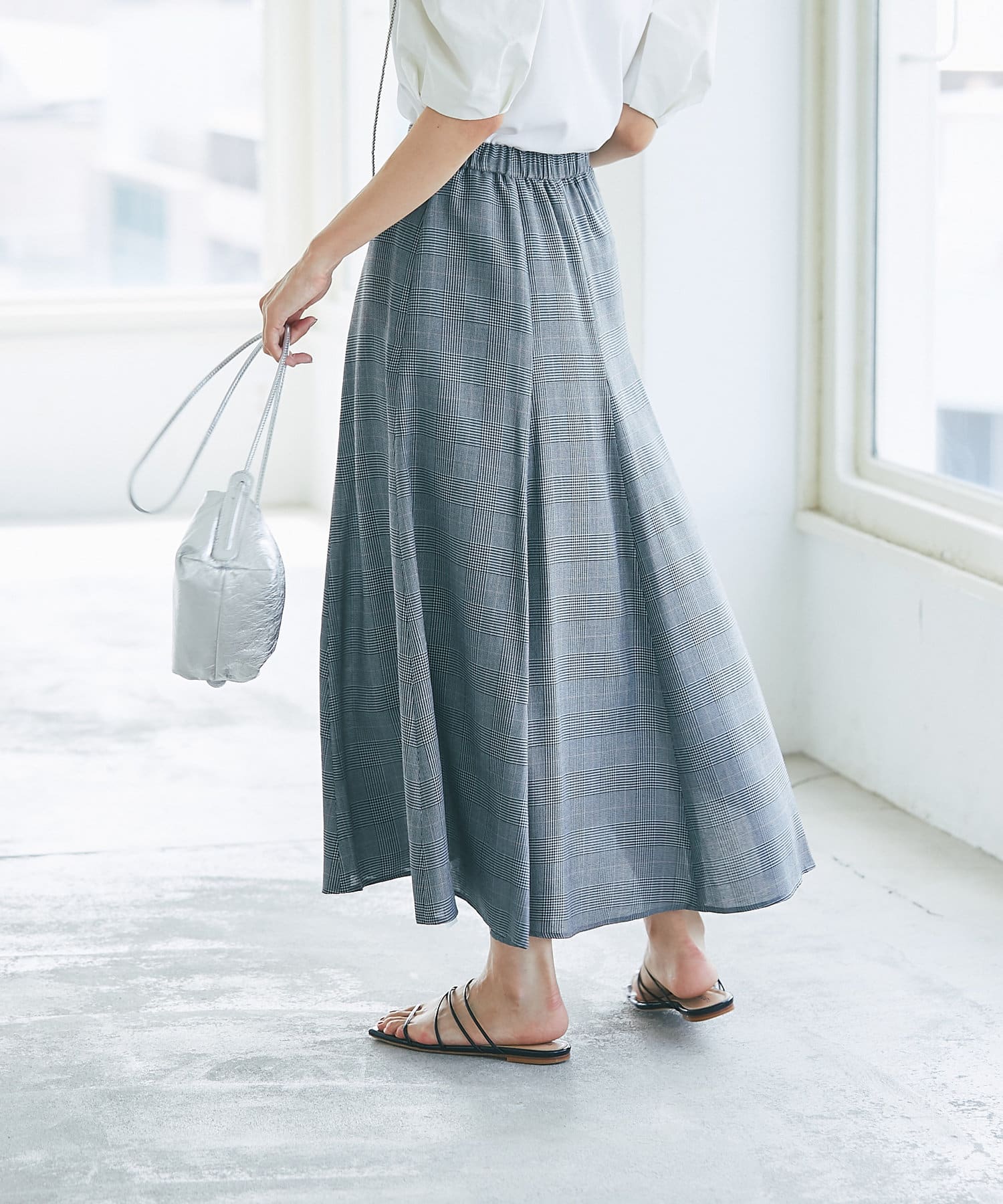 グレンチェックでより上品な印象に仕上げたマーメイドスカート。