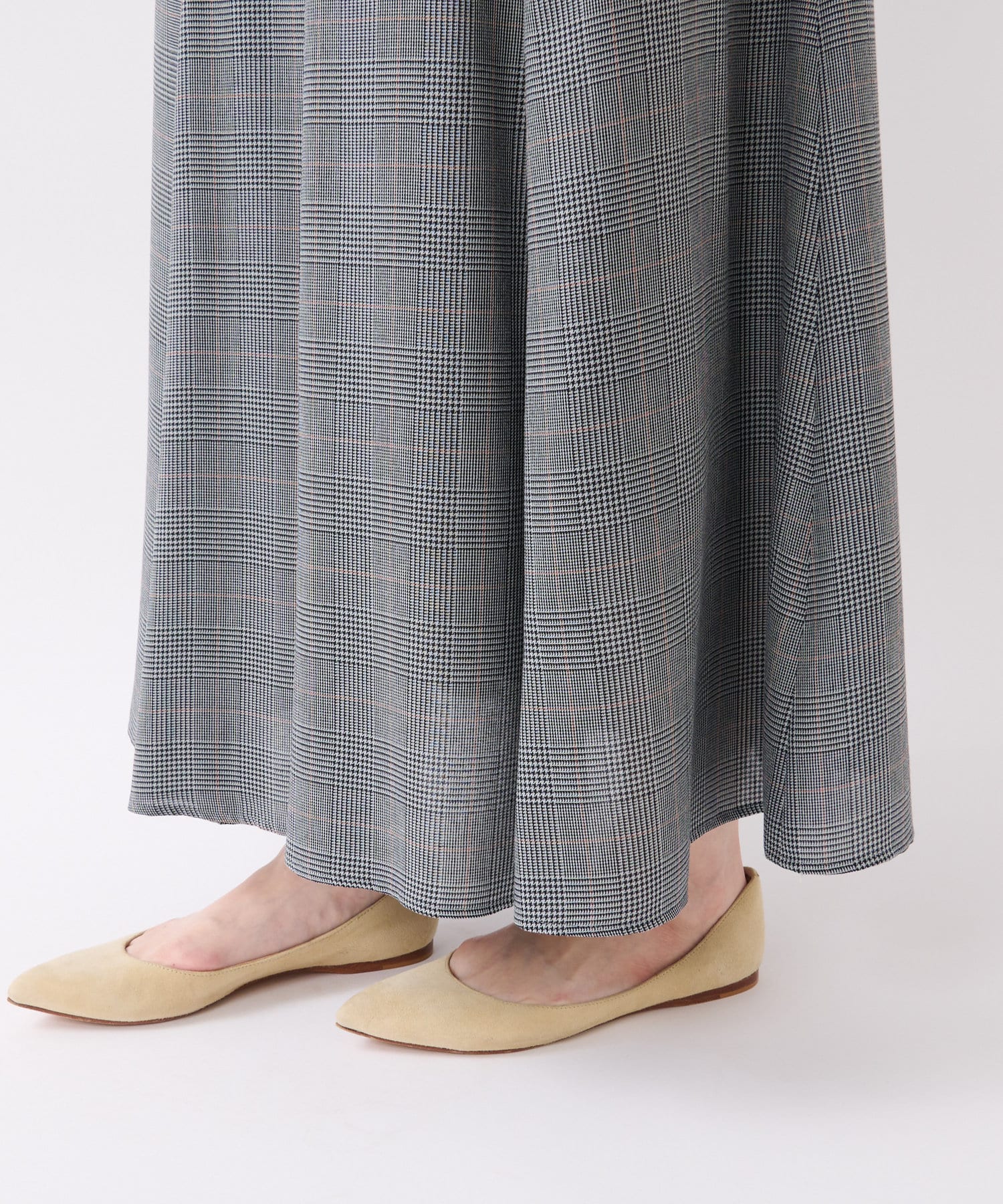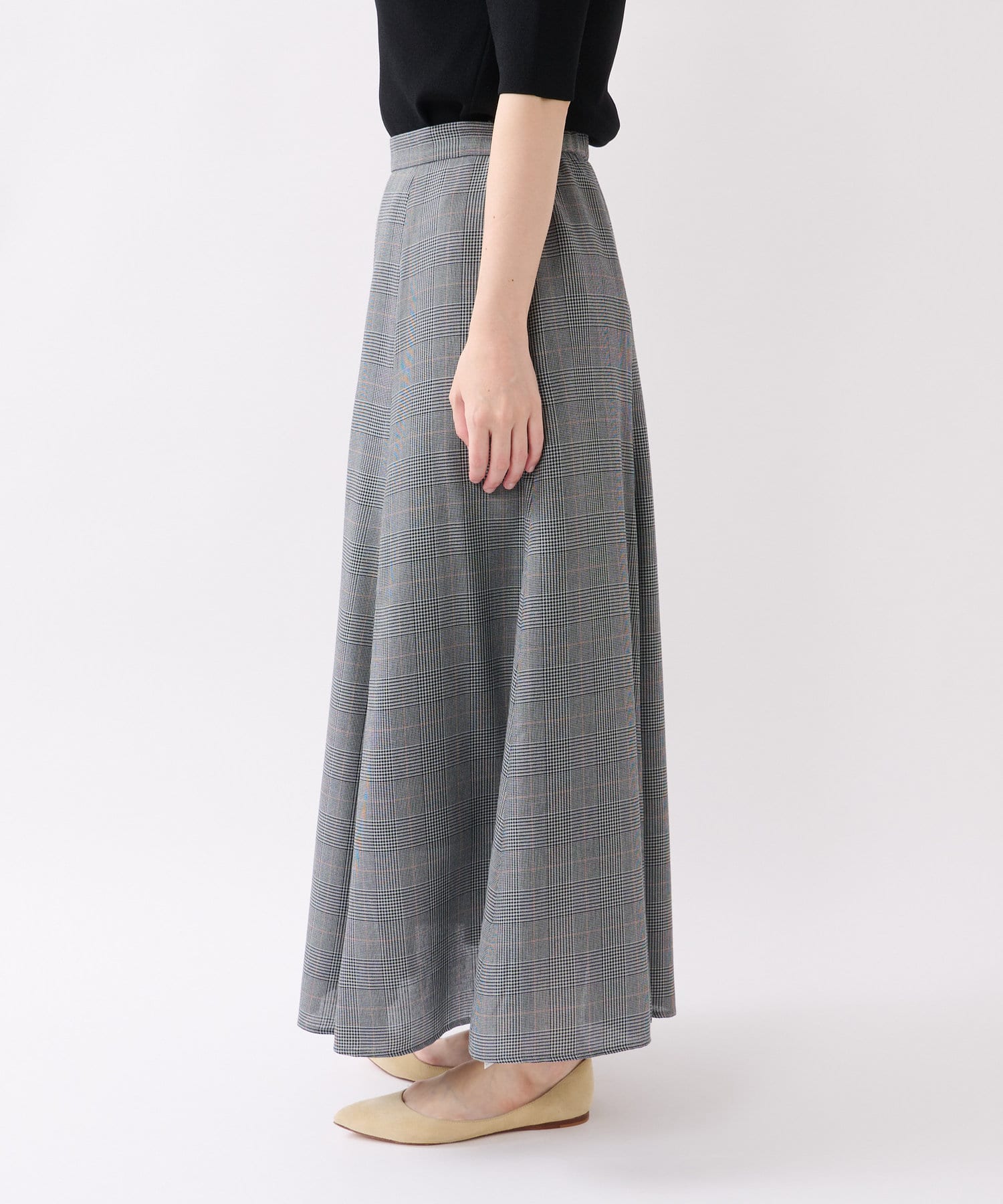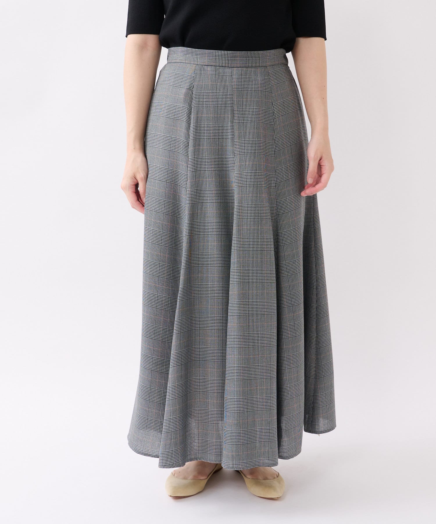 グレンチェックチェックがシックなロングスカートです。