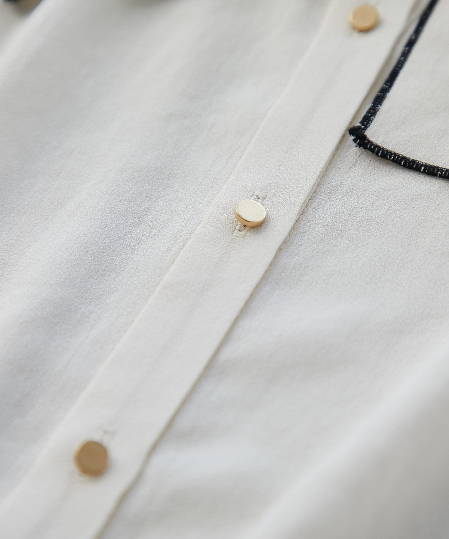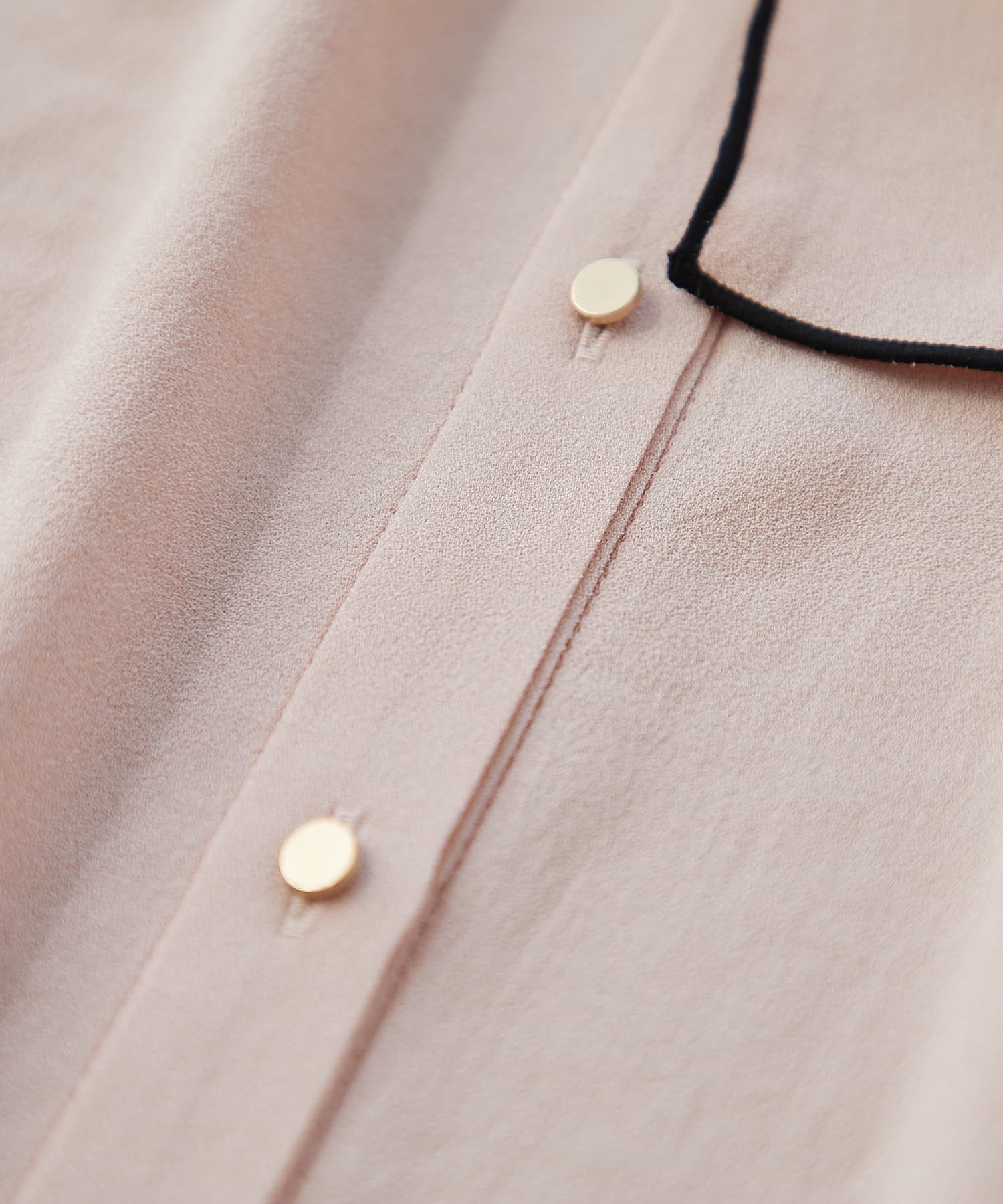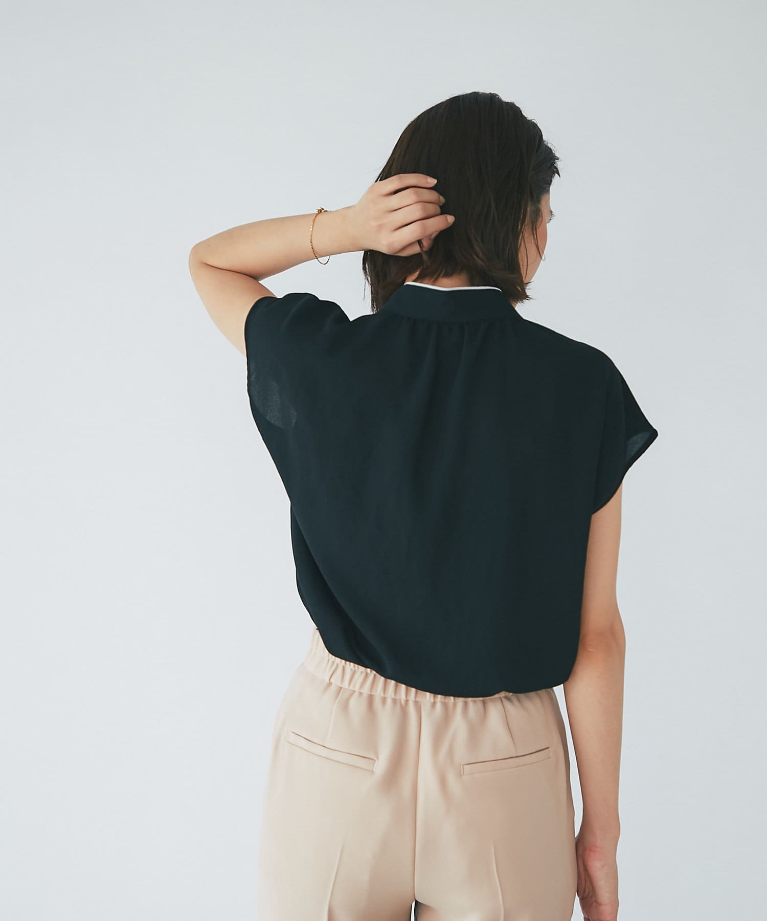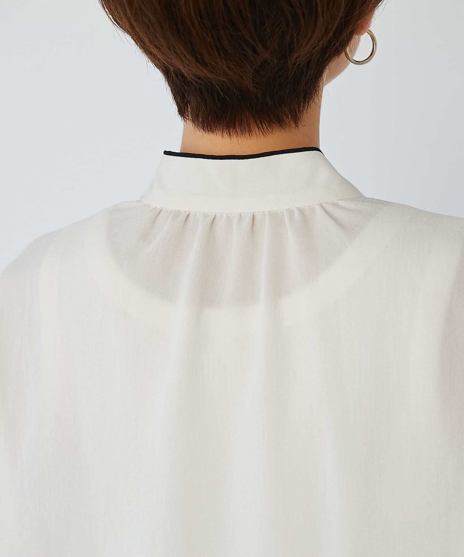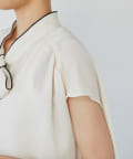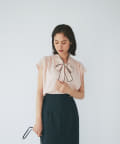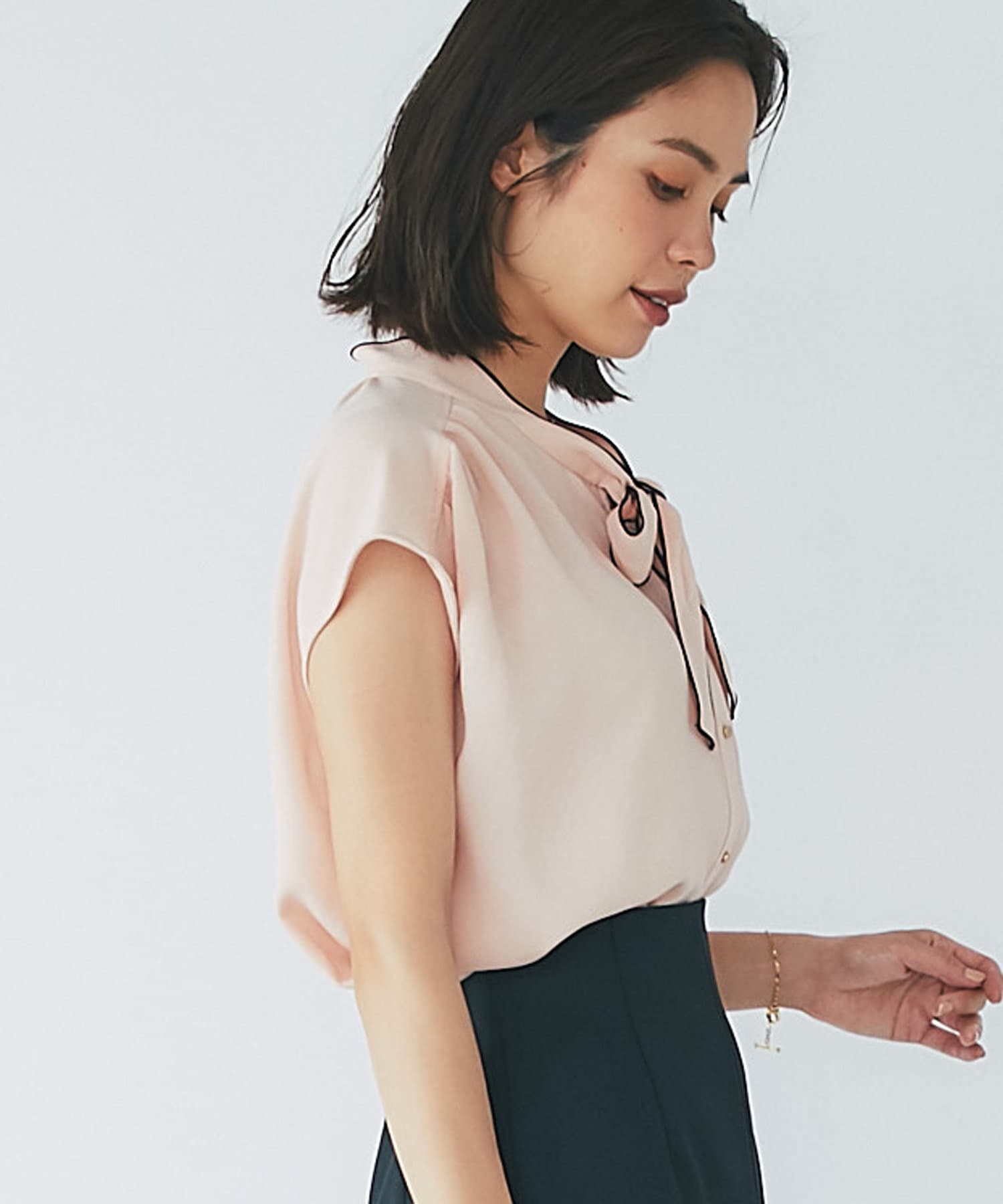 パイピングデザインにボウタイがおしゃれなフレンチブラウス。