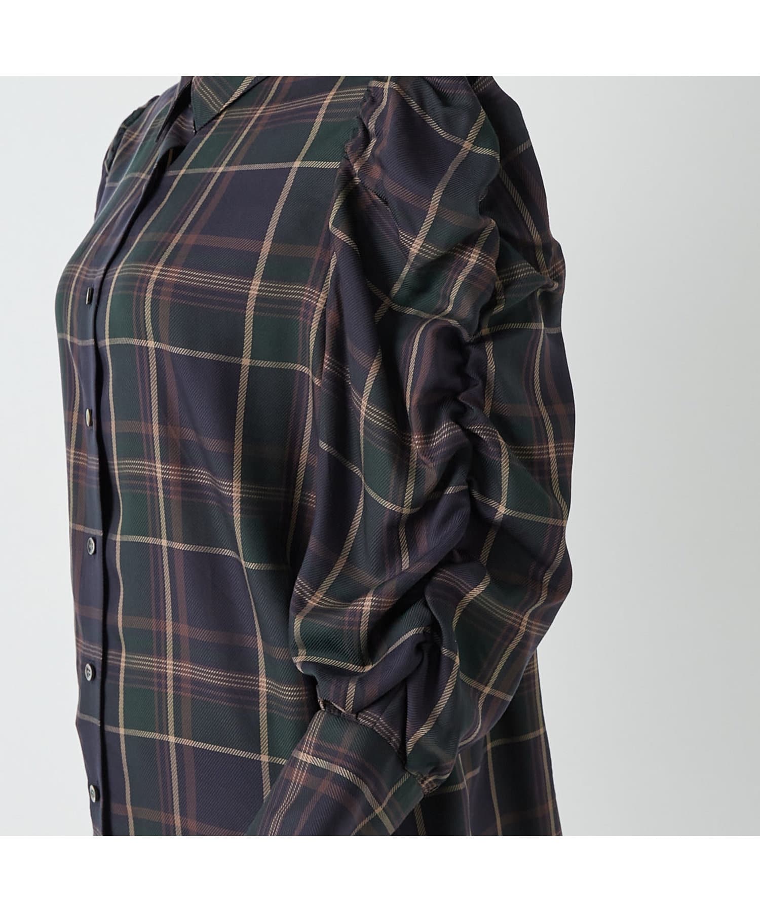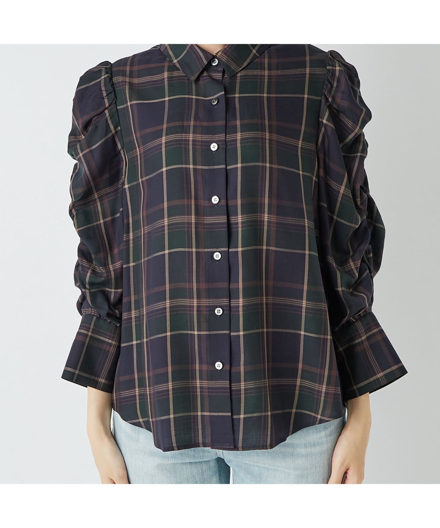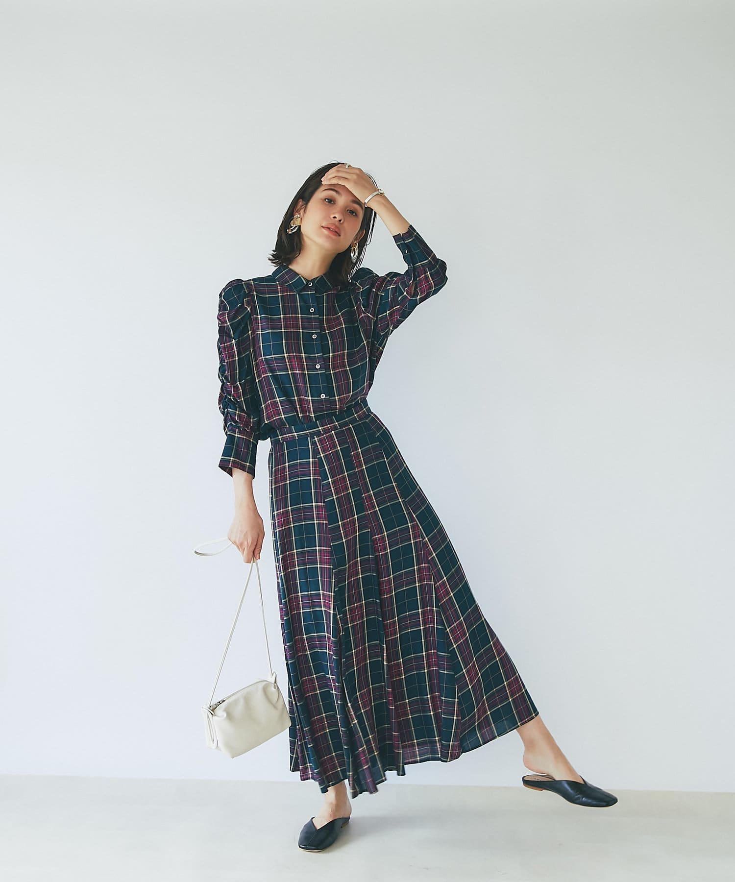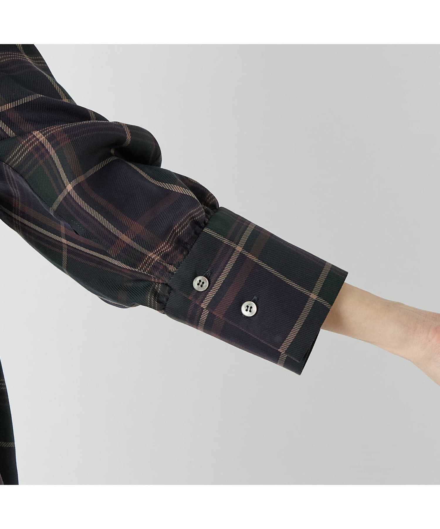 キュプラ素材の秋らしいタータンチェック柄シャツです。