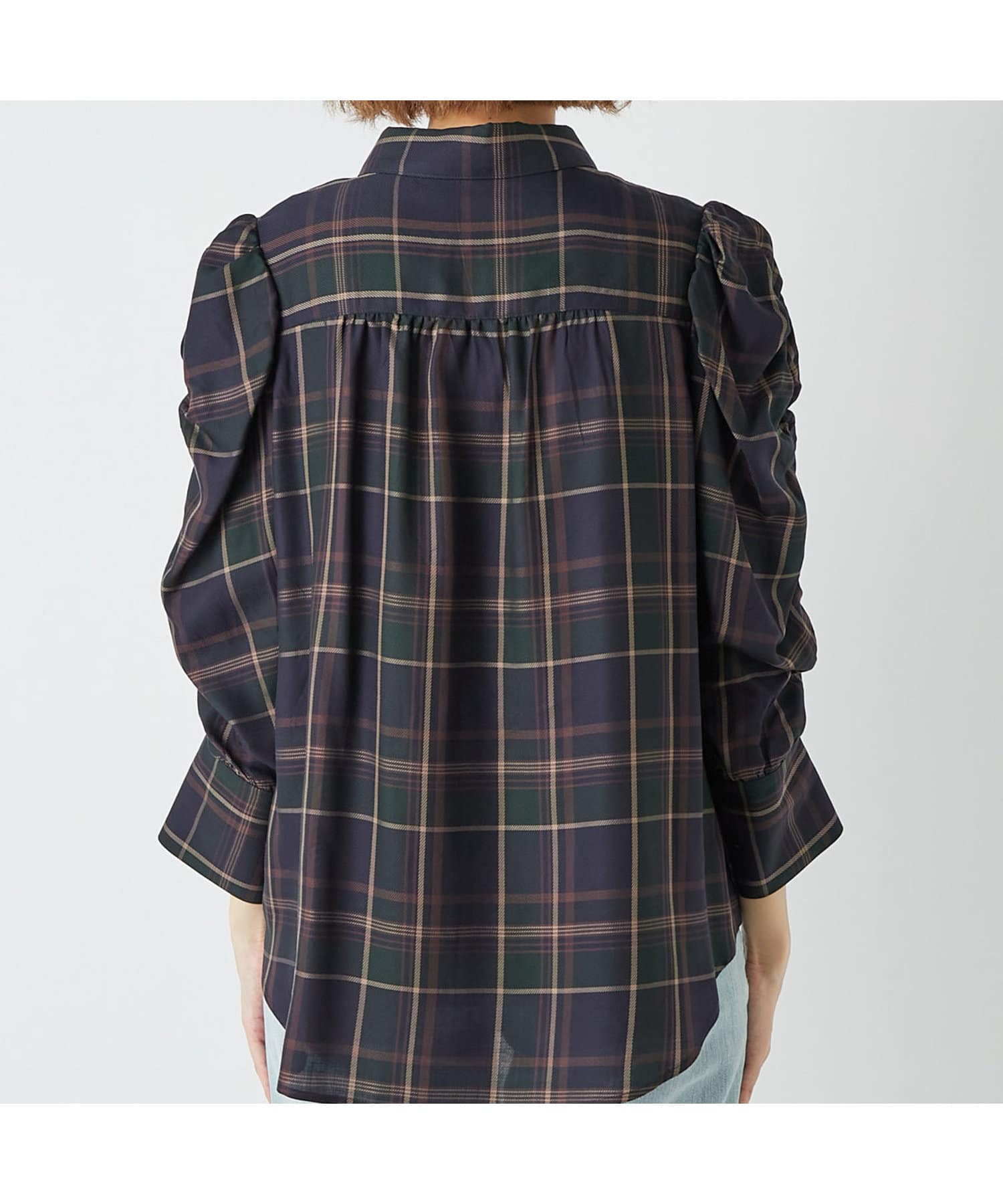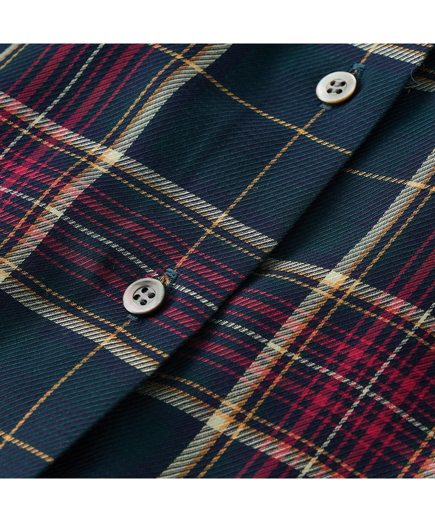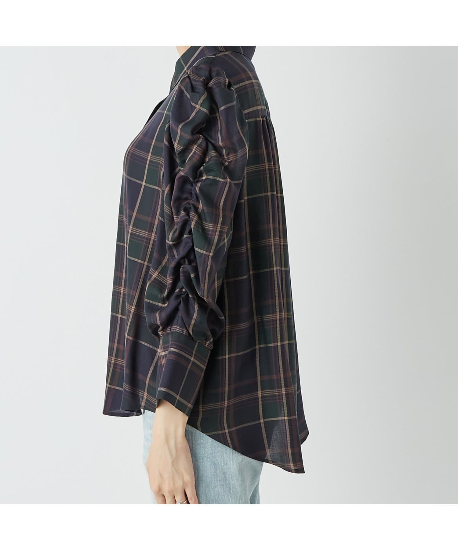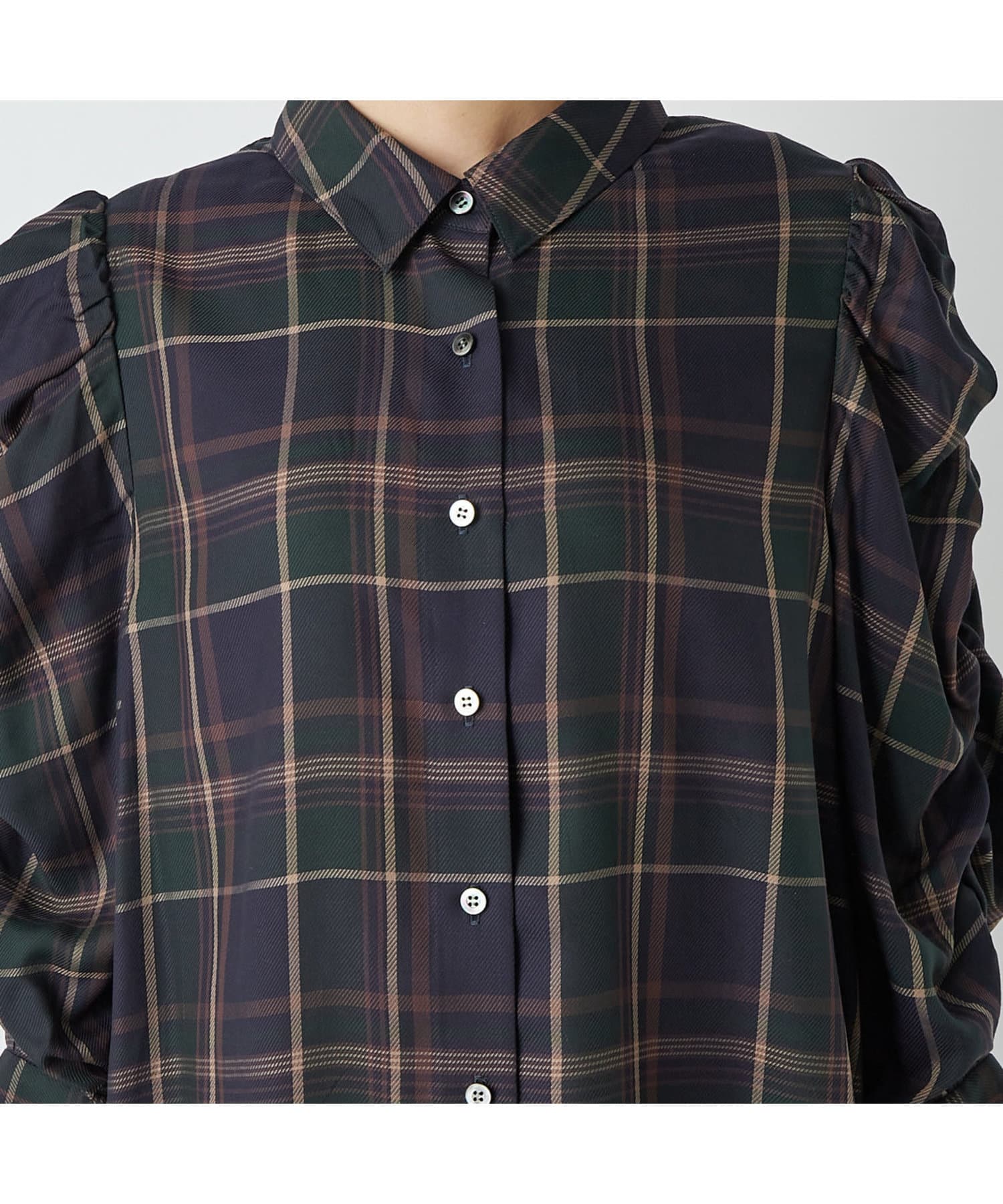 キュプラ素材の秋らしいタータンチェック柄シャツです。