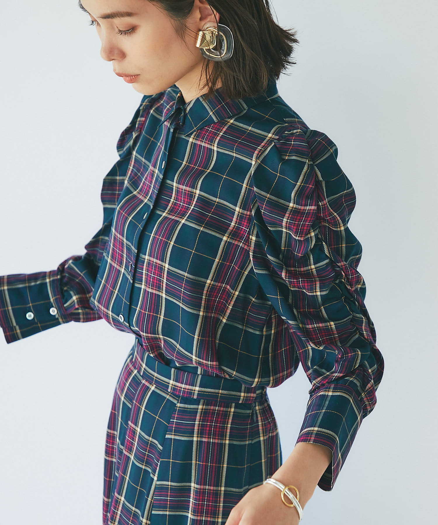 昨年人気のチェック柄シャツ!パワショルで女性らしいディテールがポイント