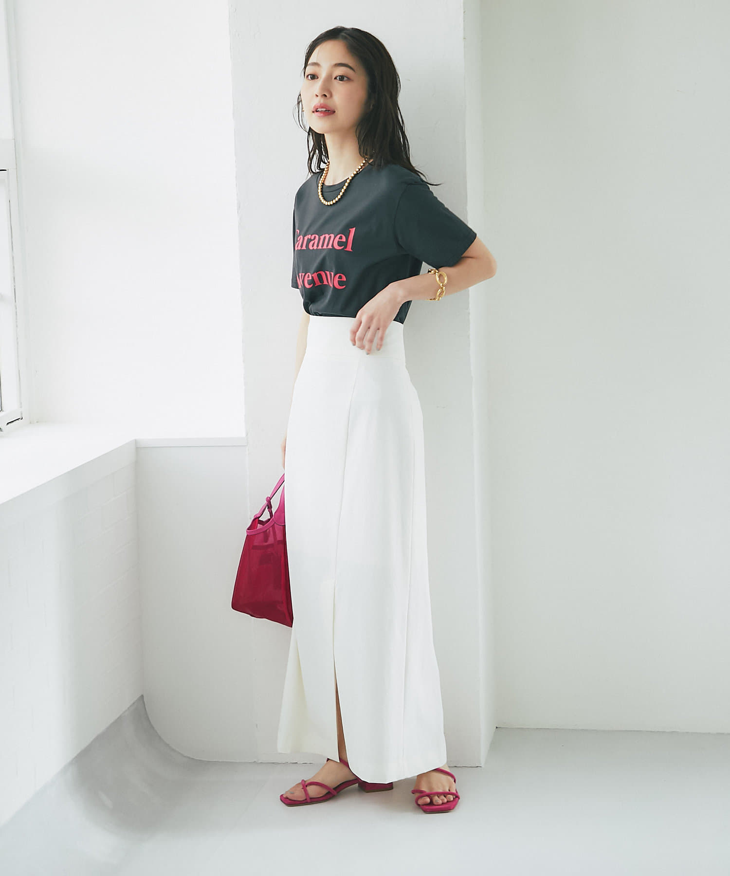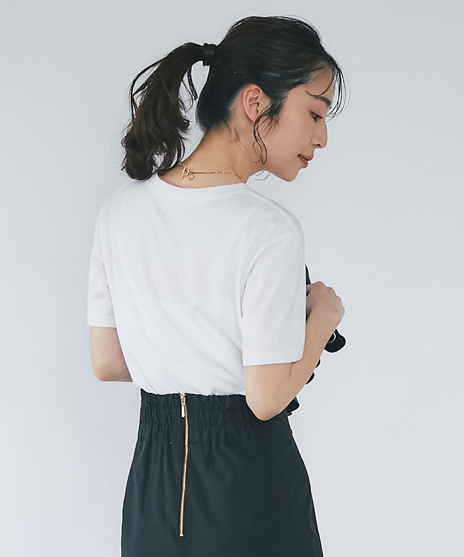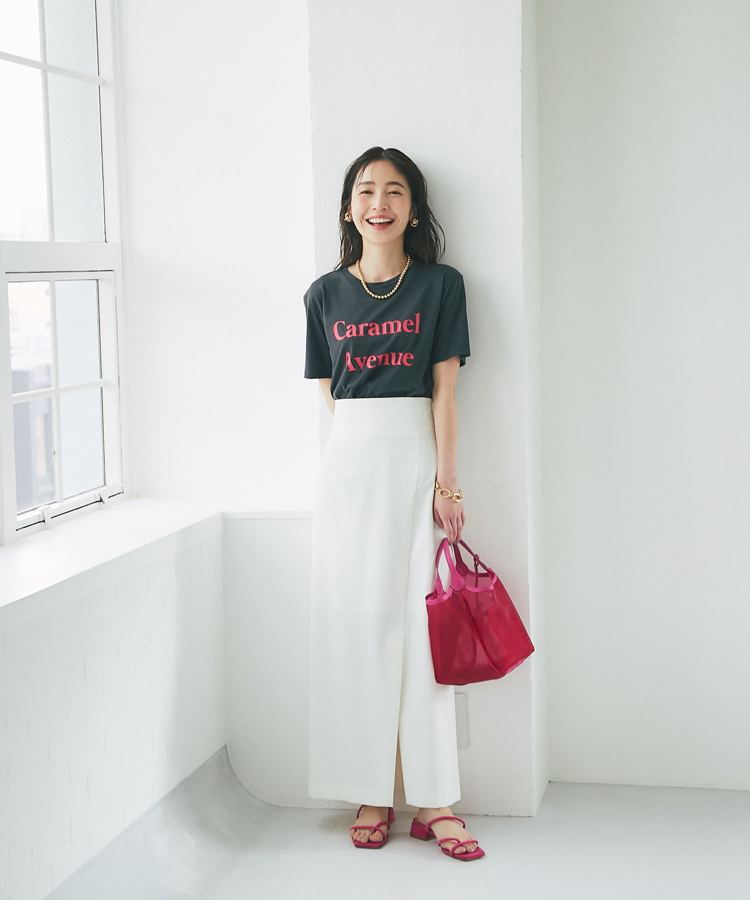 シンプルながらもワンポイントになるロゴTは大人カジュアルのマストアイテム!