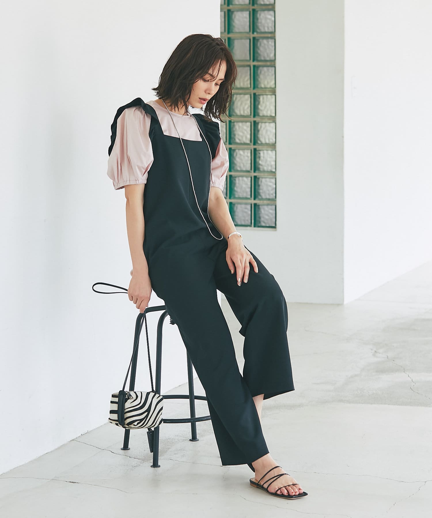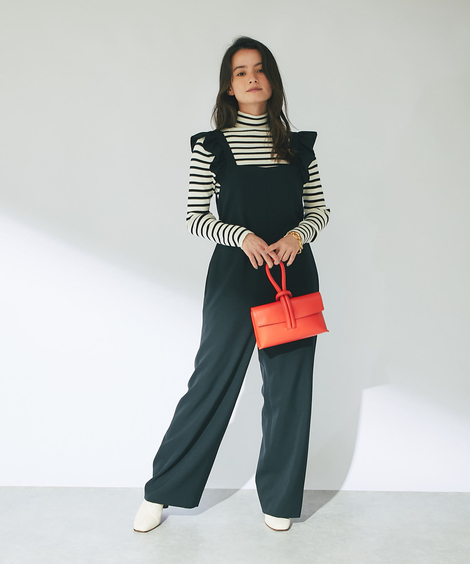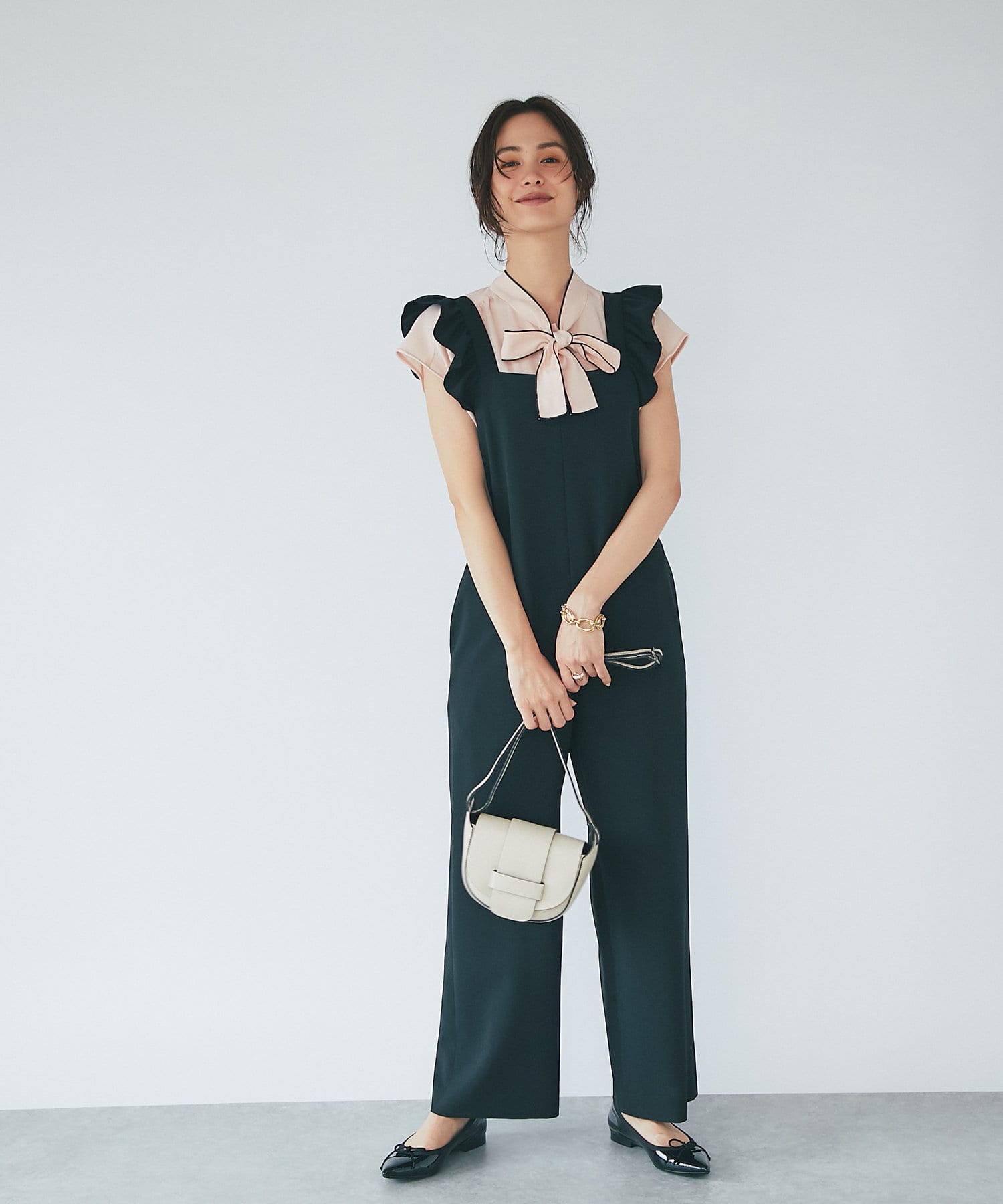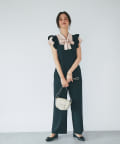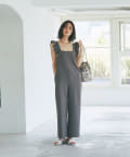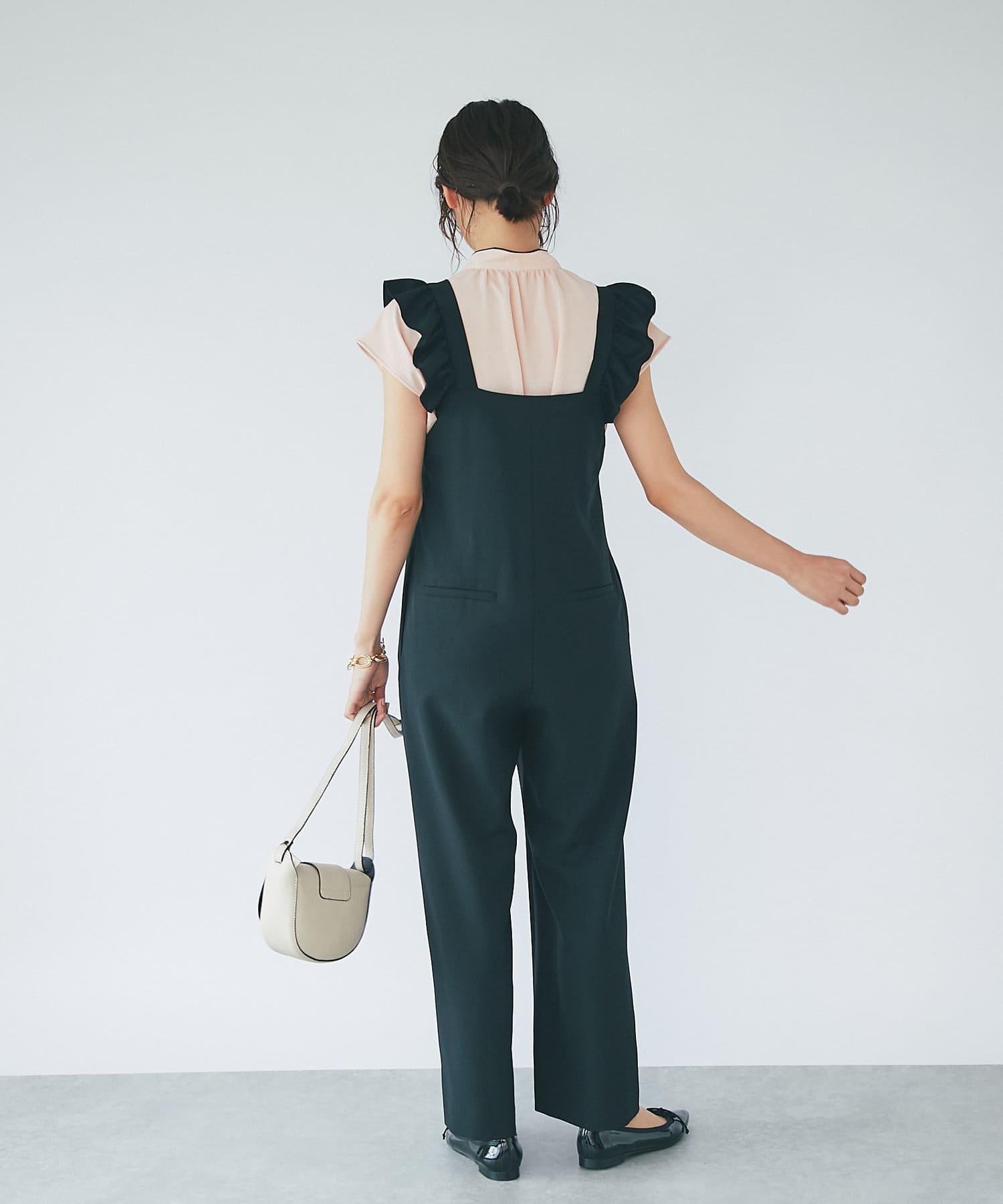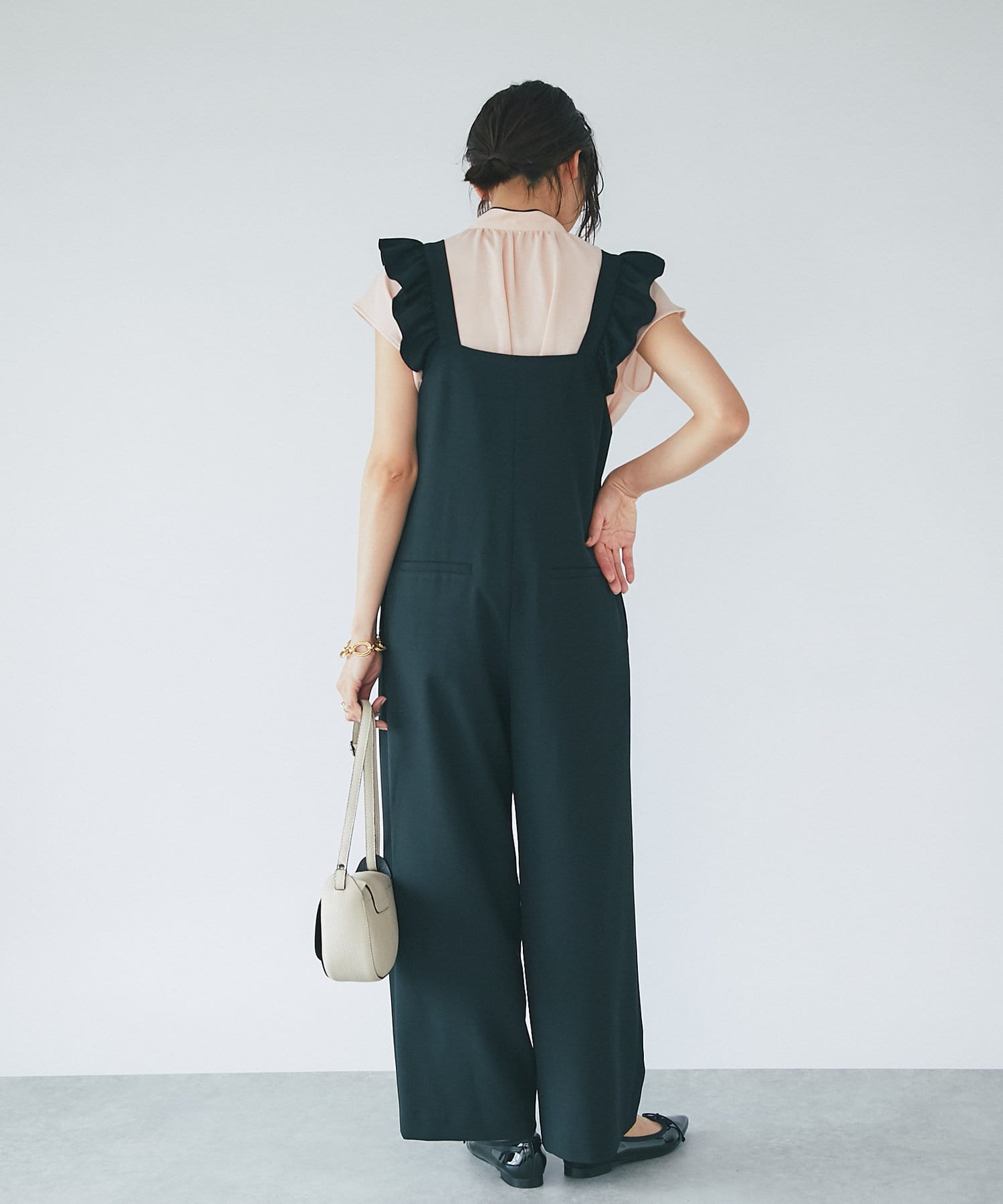 【ワイドシルエットで大人の雰囲気】フリルトリムサロペット