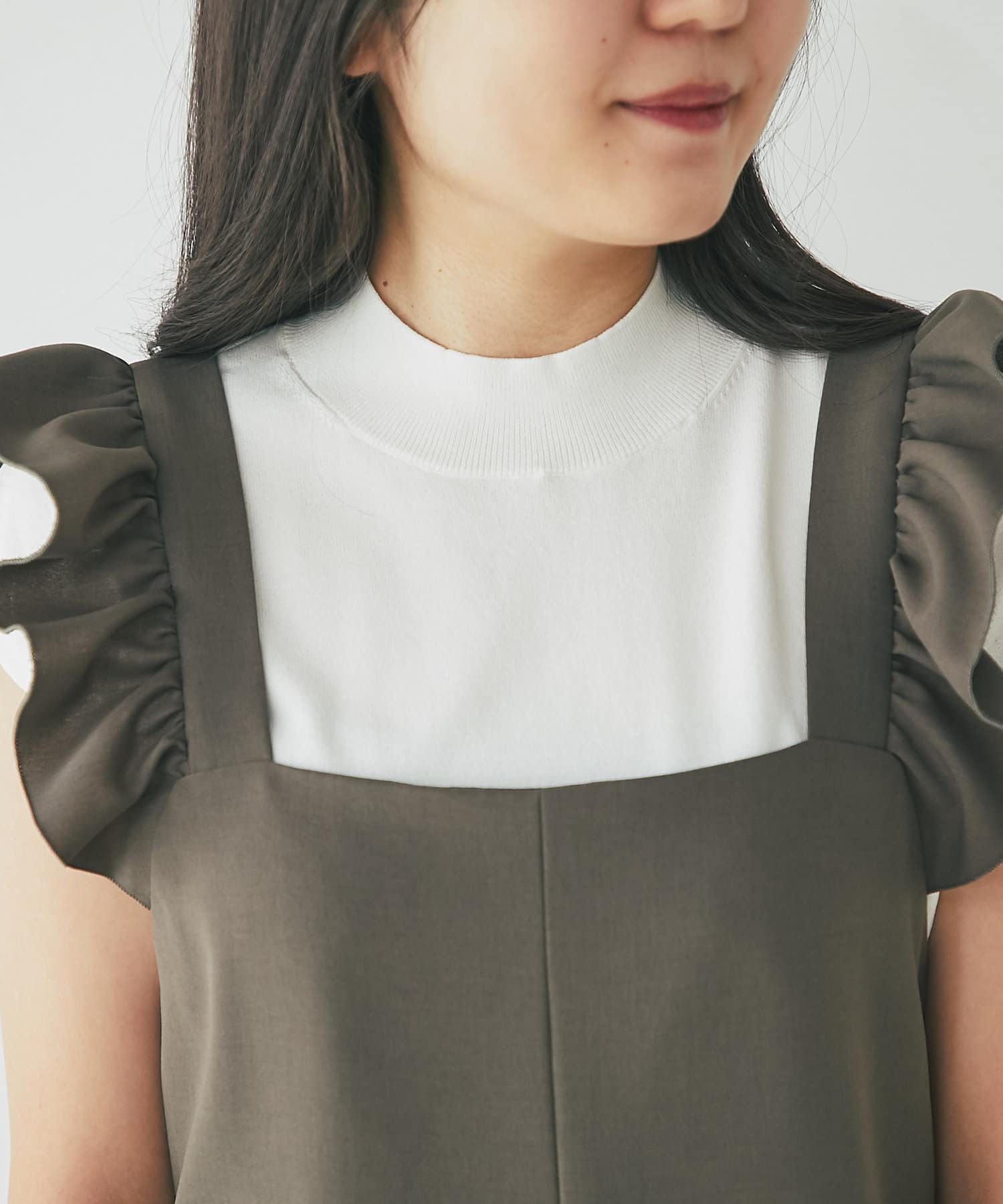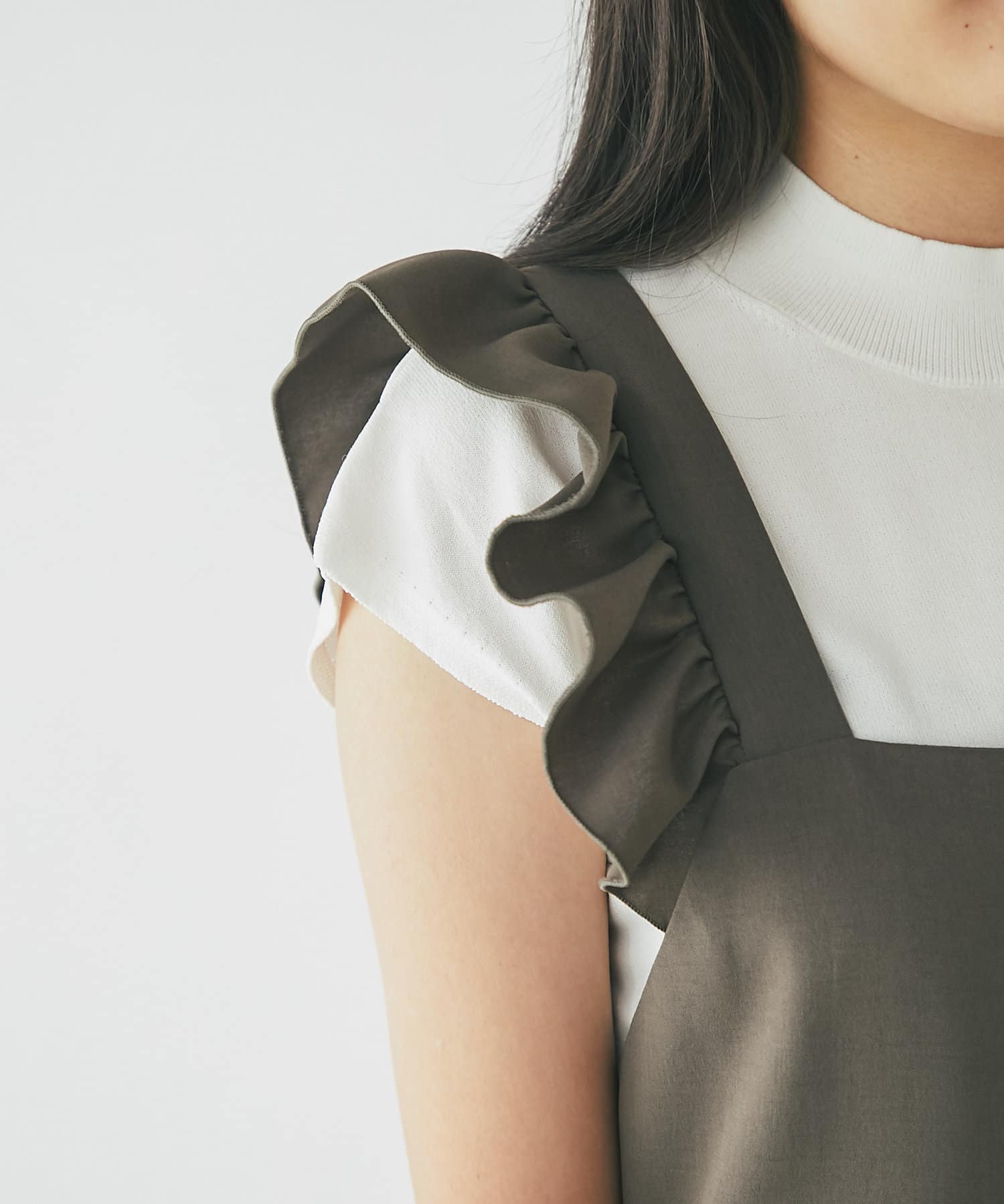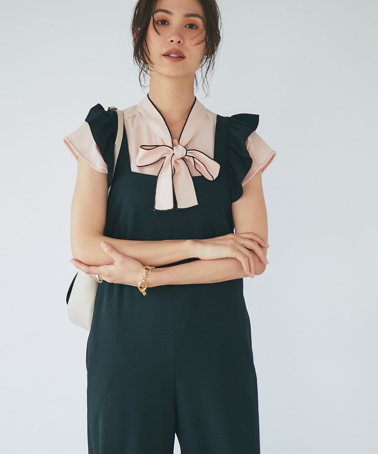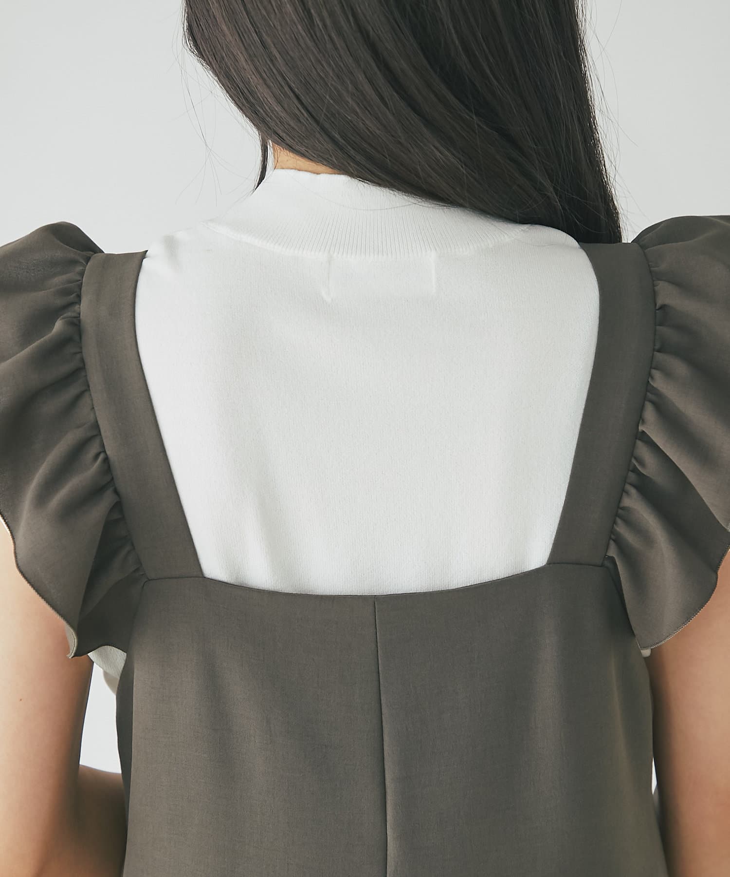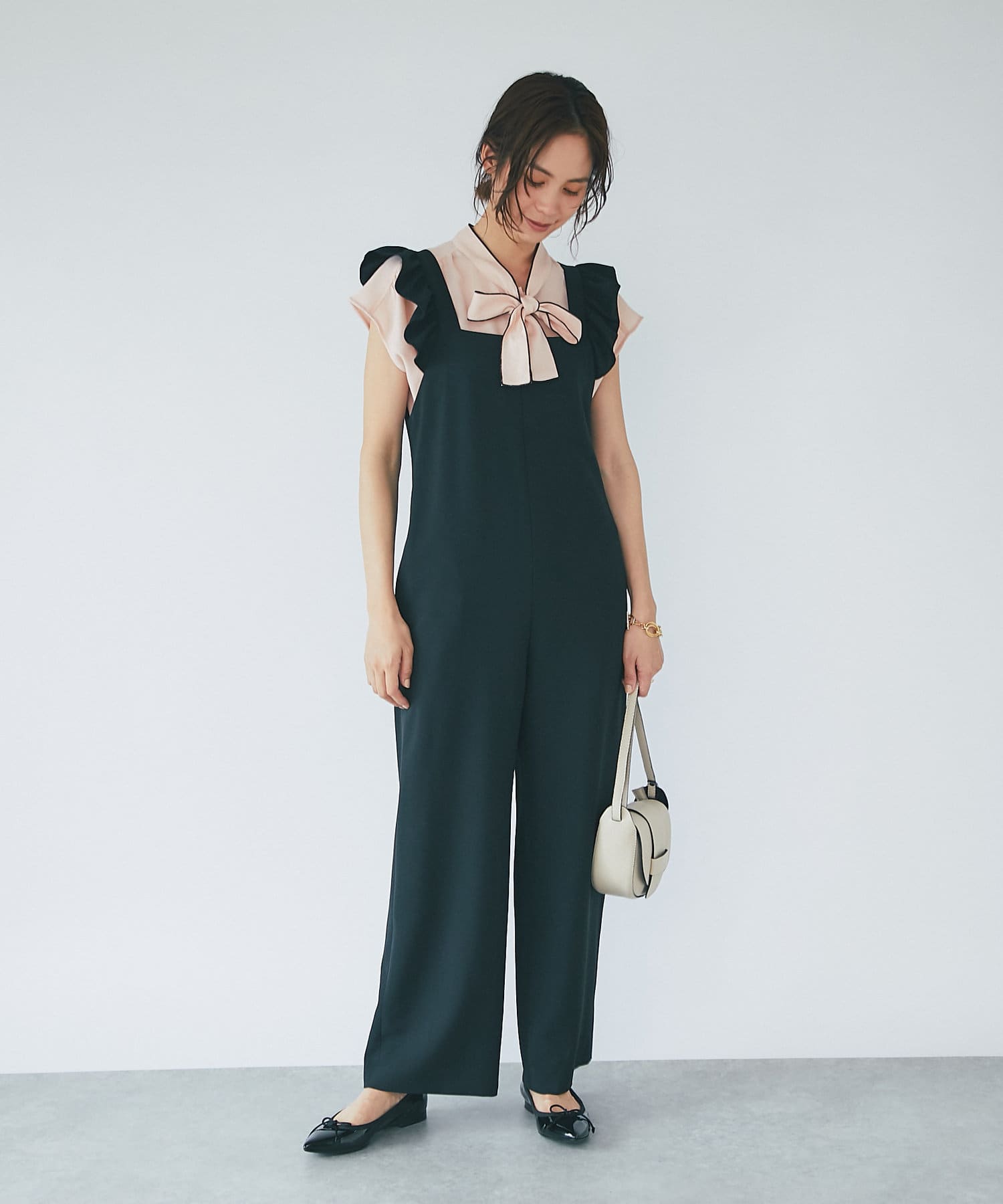【ワイドシルエットで大人の雰囲気】フリルトリムサロペット
