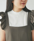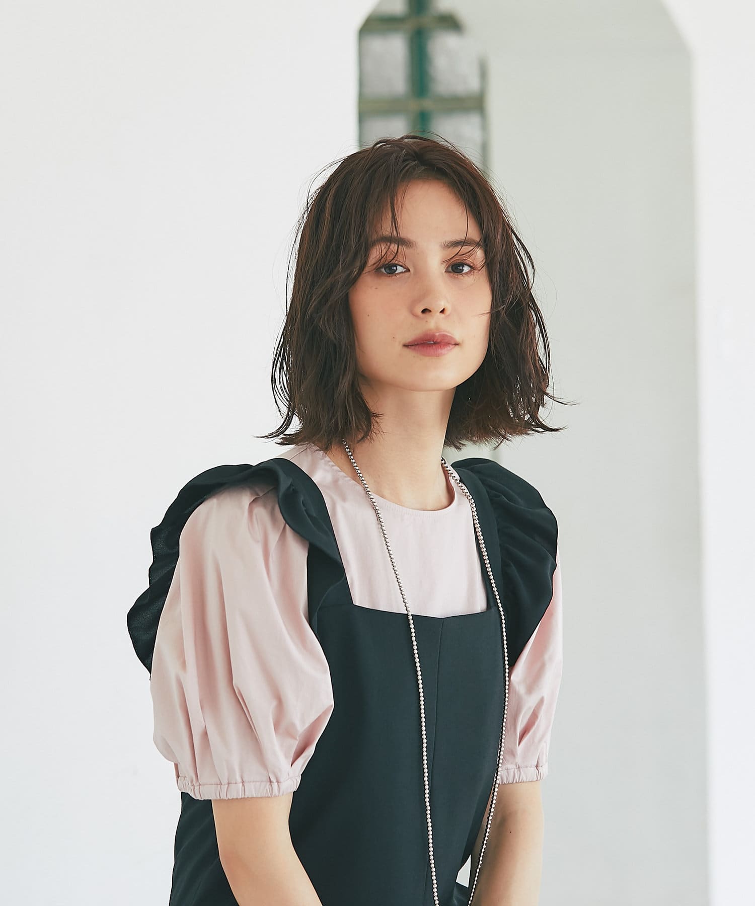 フリルで可愛らしい印象ながら、トープとブラックの落ち着いたカラー展開で、シックな印象でコーデに取り入れやすいアイテムです。