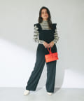 今シーズン注目のコンパクトなサイズ感のトップスや、人気のストライプシャツなどと合わせるのもおすすめ。