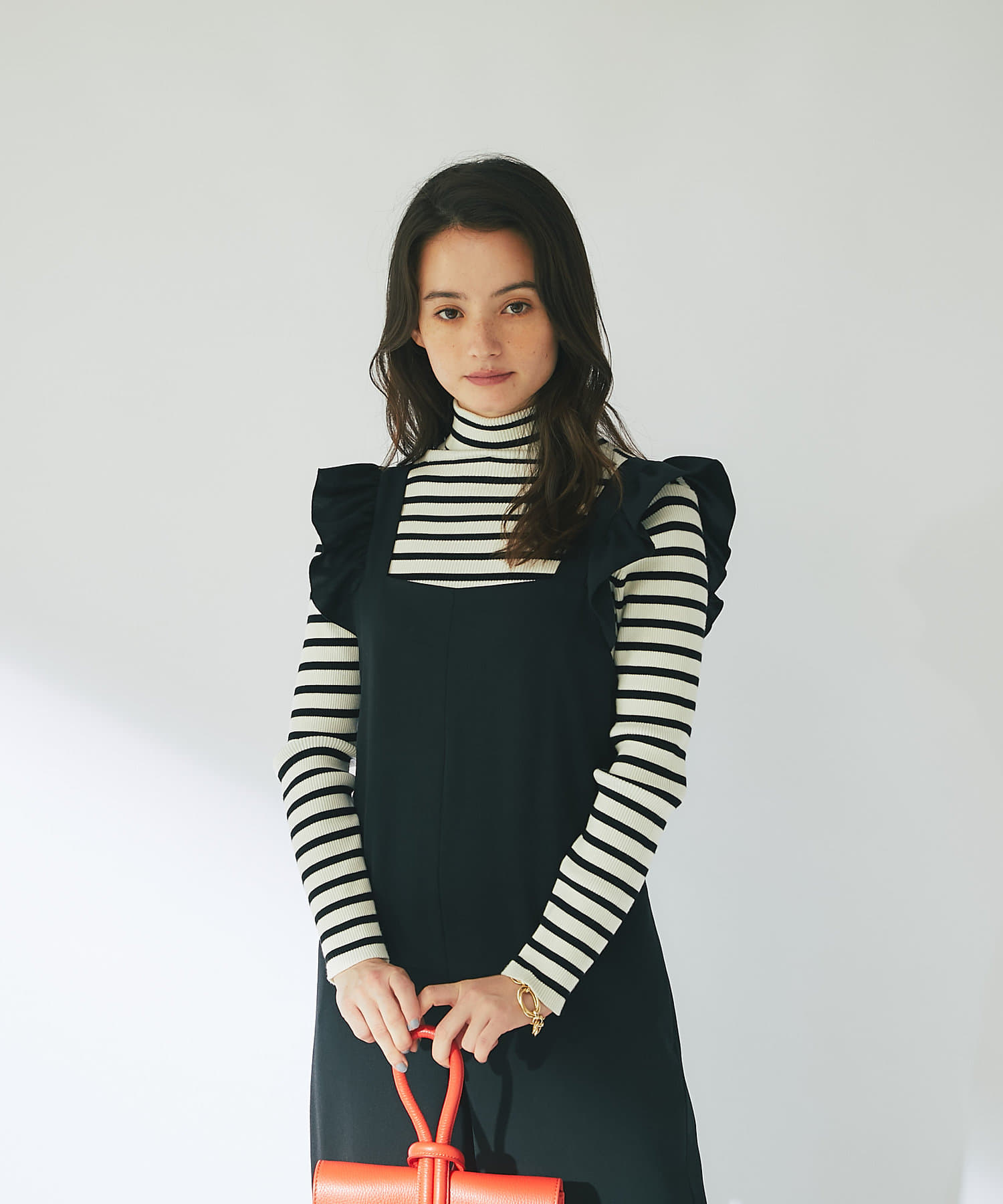 フリルが可愛らしい印象ですが、ブラックだと大人っぽく着られます。
