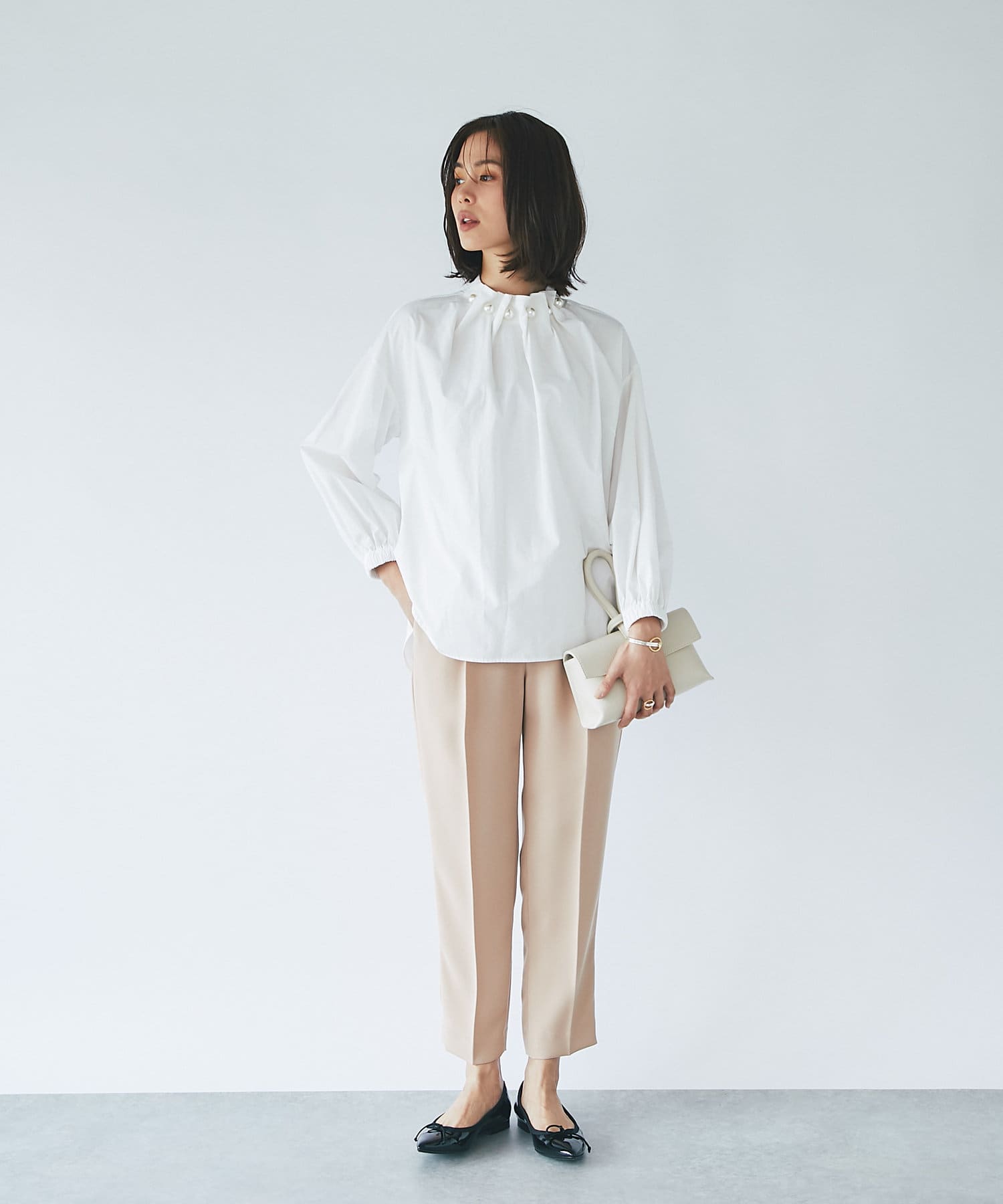フェミニンなスタイルから、カジュアルまで、シンプルなデザインで合わせやすいです。