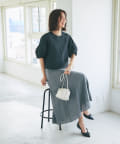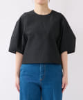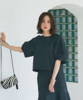 トップスは立体感のあるランタンスリーブとクロップド丈のコンパクトなシルエットがバランスの取りやすい一枚です。