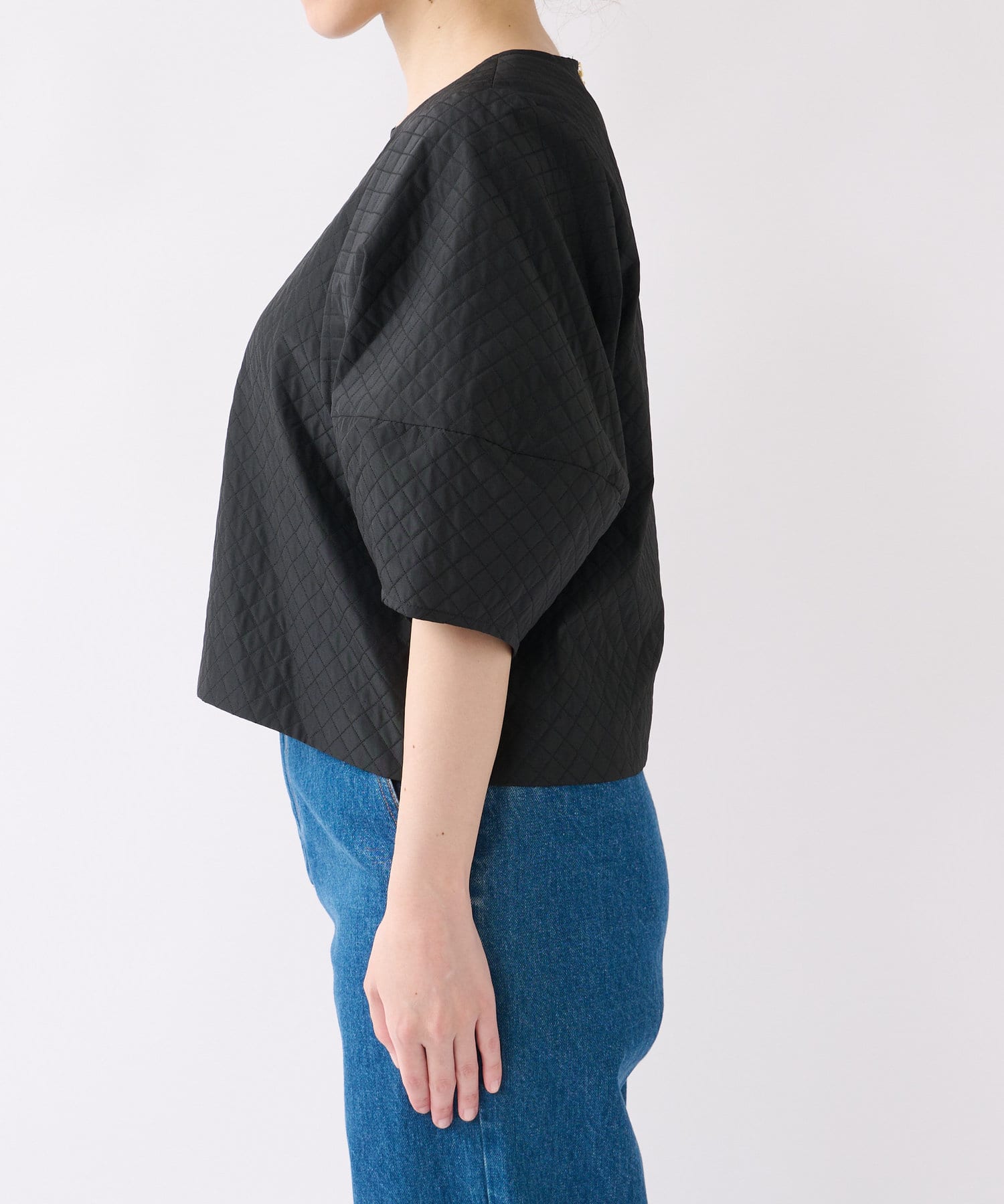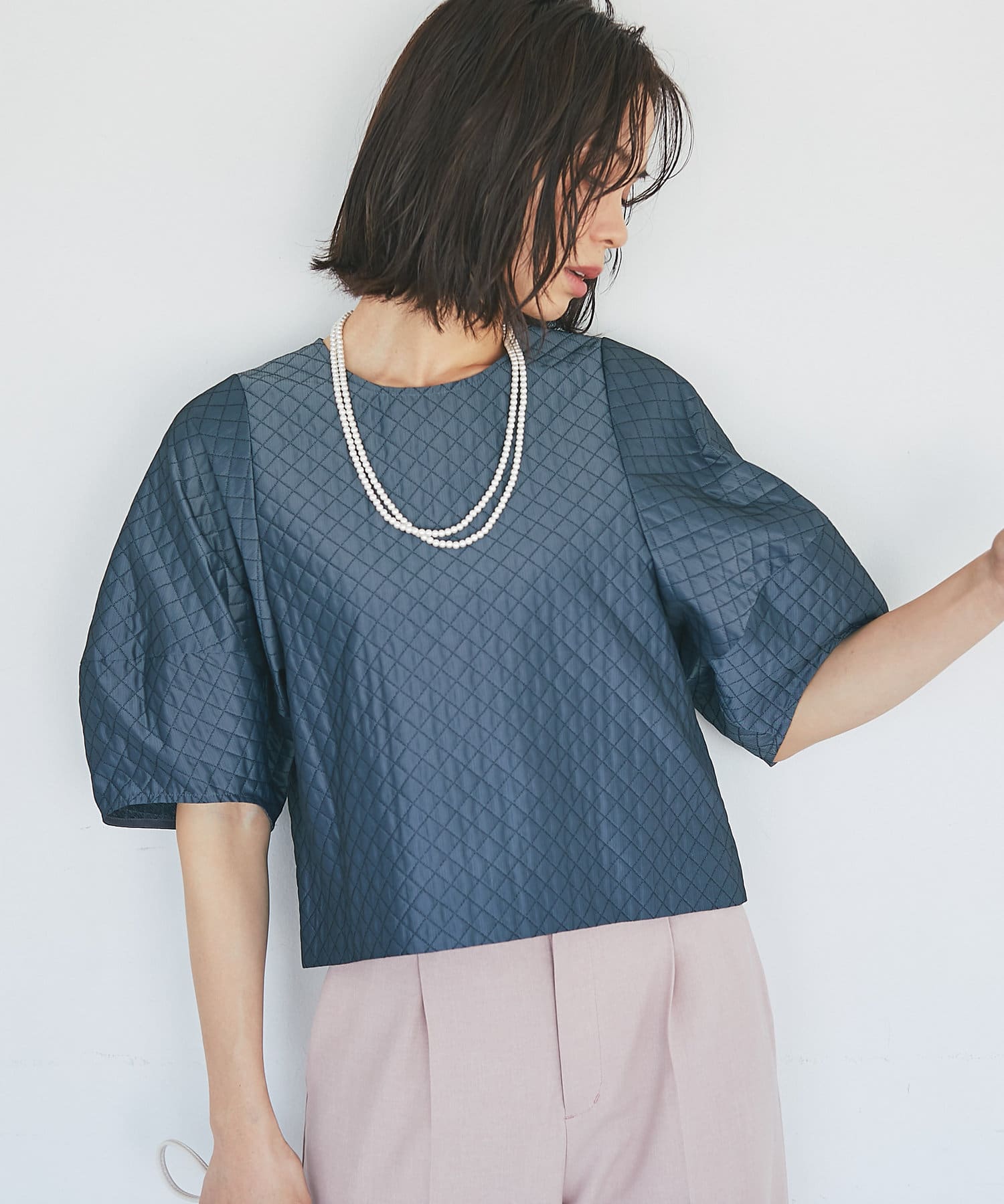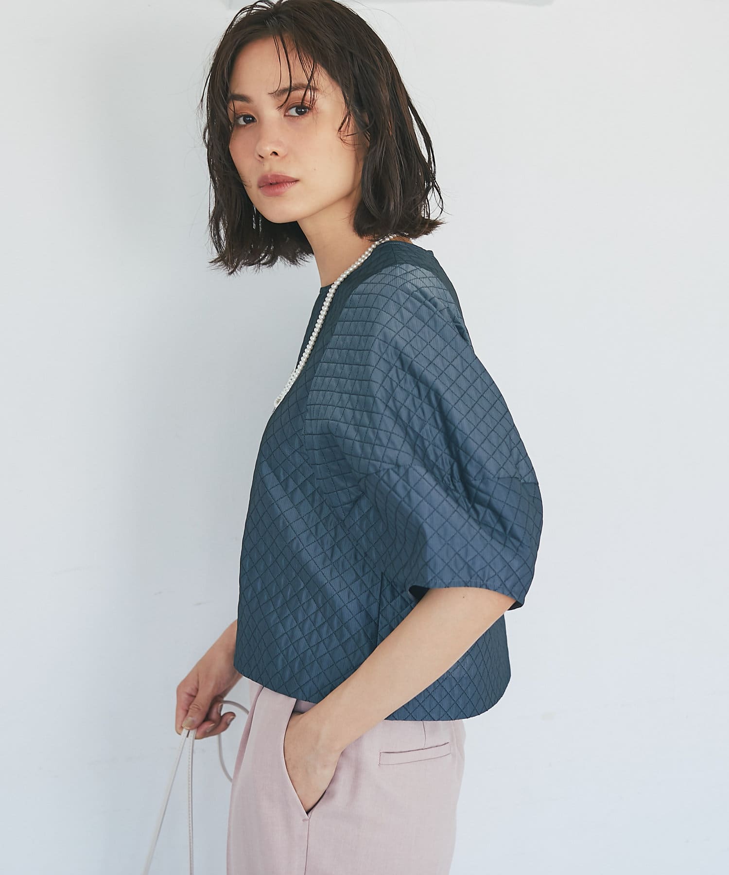 カジュアルなイメージのあるキルティングを使用し、きれいめな大人のブラウスに仕上げました。
