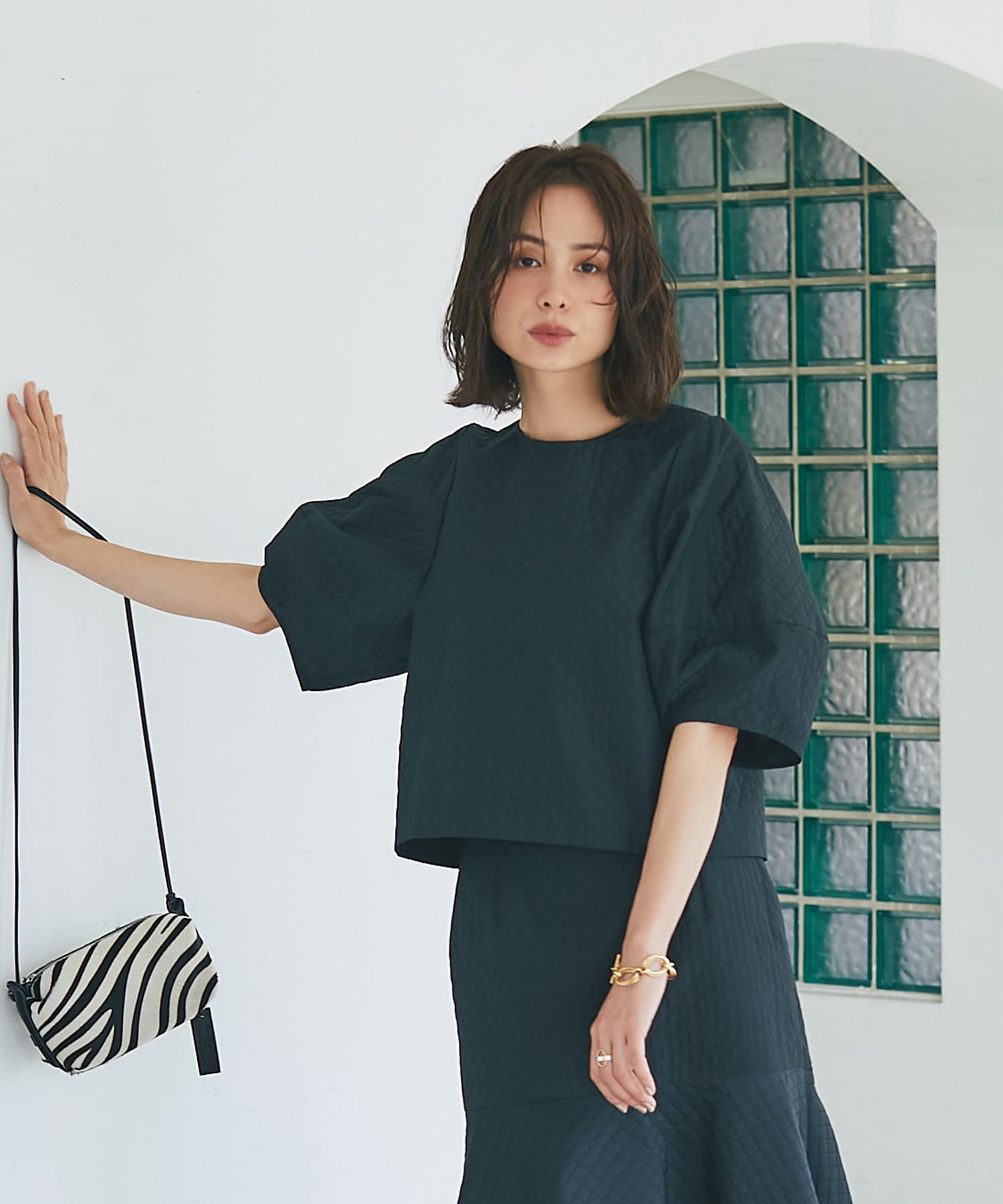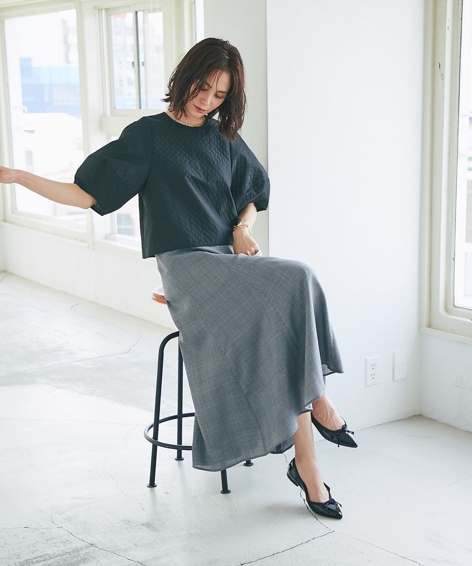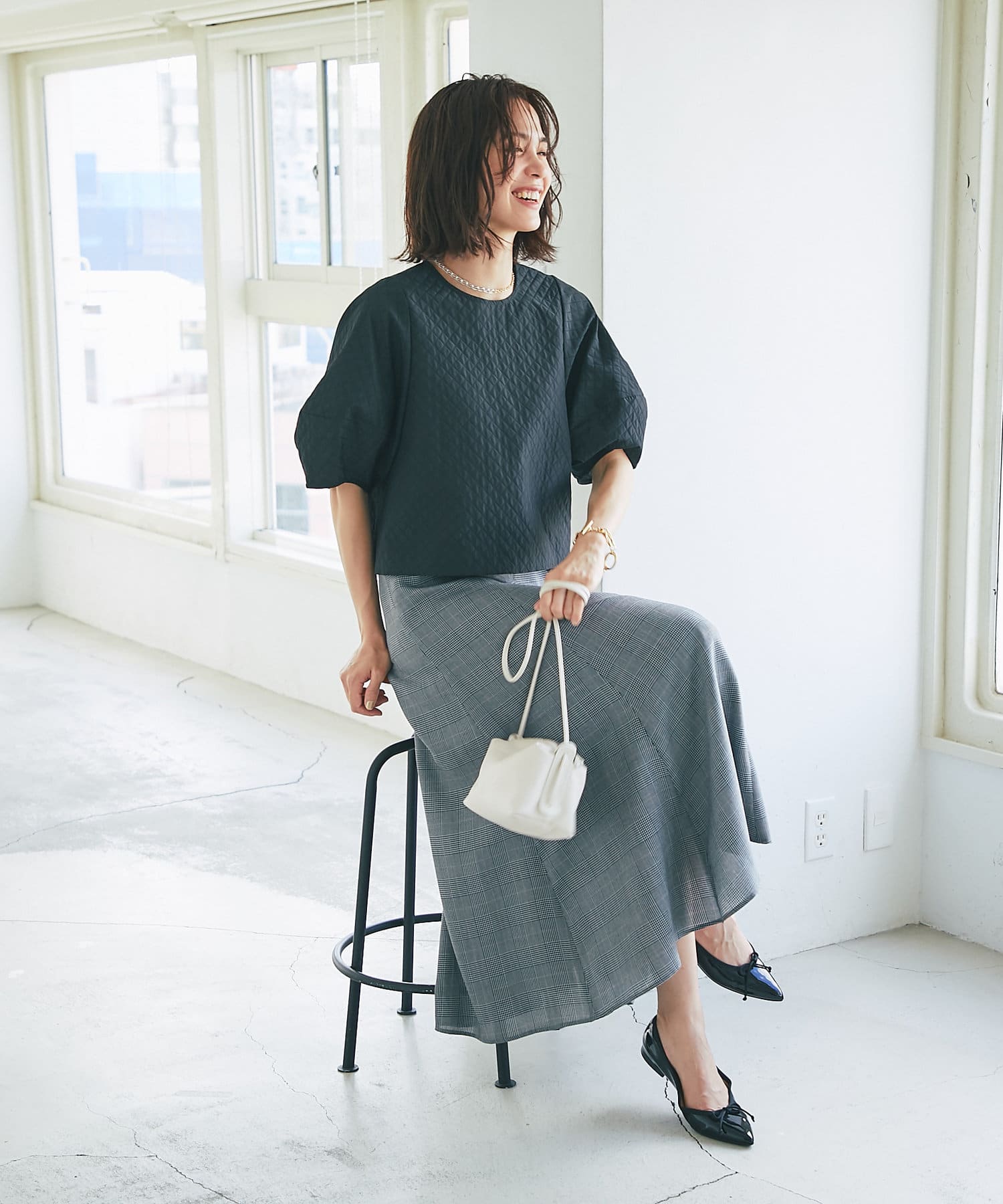 #大人カジュアル #きれいめカジュアル #キルト #キルトジャガード #ジャガード #ランタンスリーブ #ボリュームスリーブ