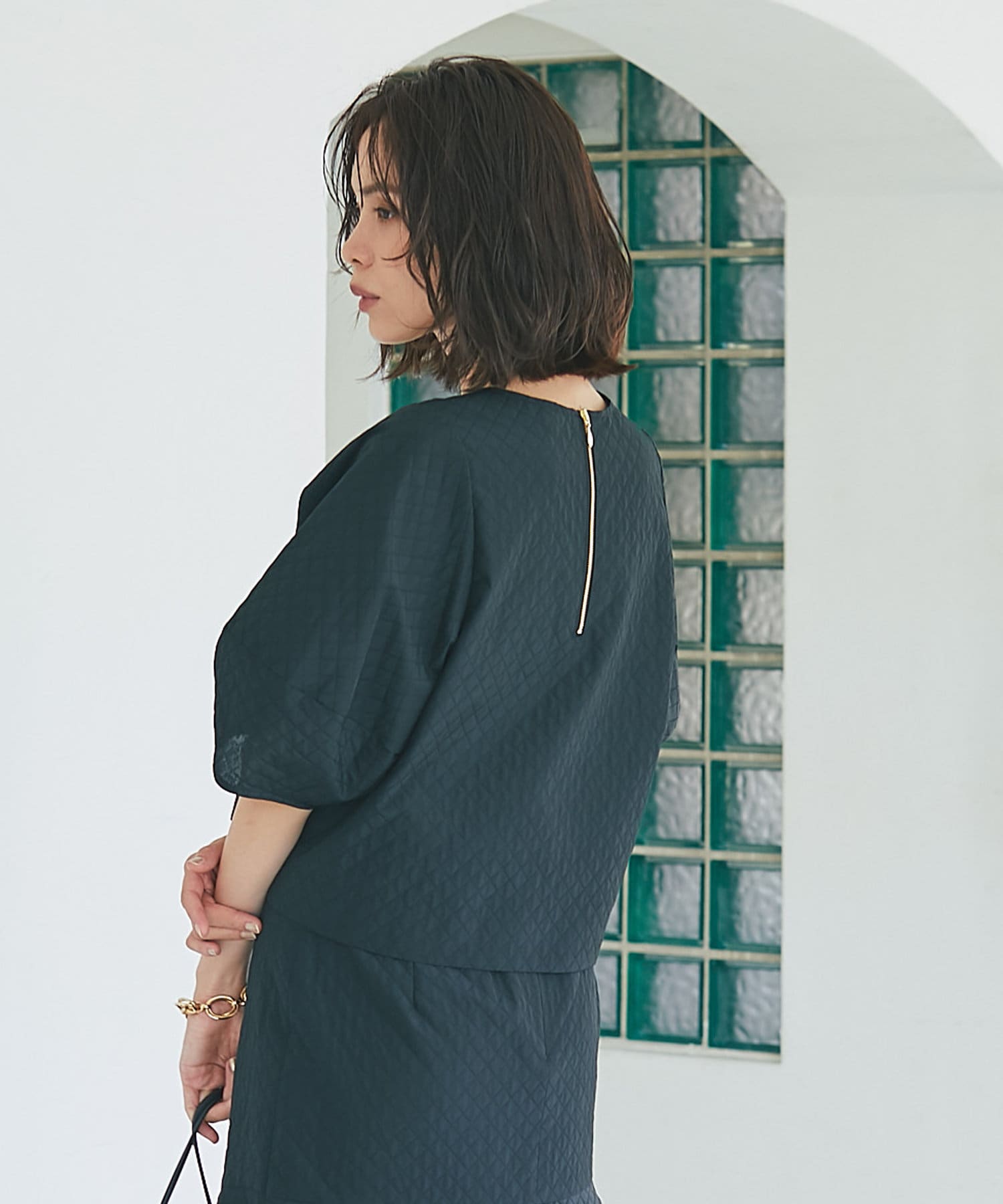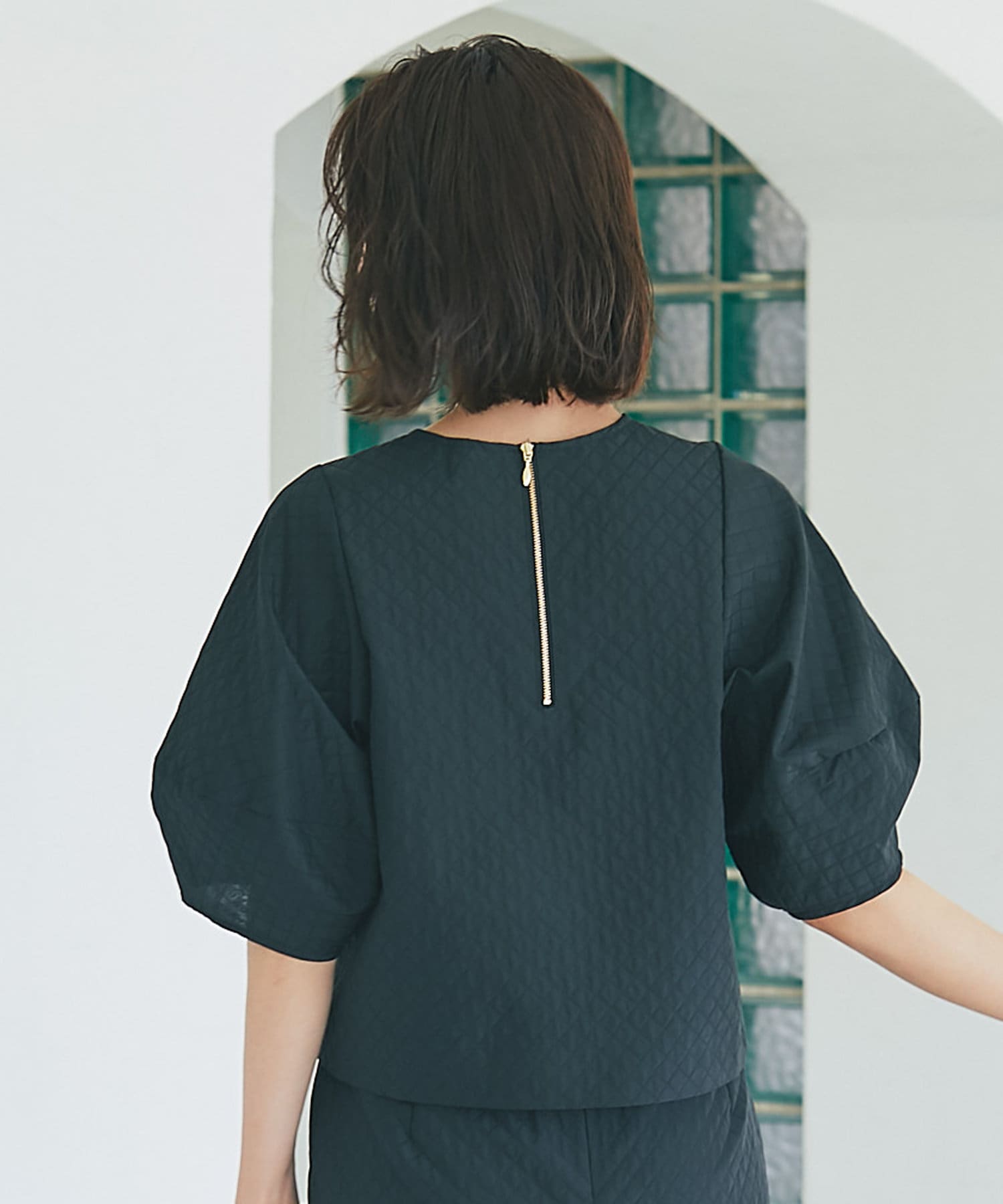【セットアップ可】キルトジャガードランタンスリーブブラウス