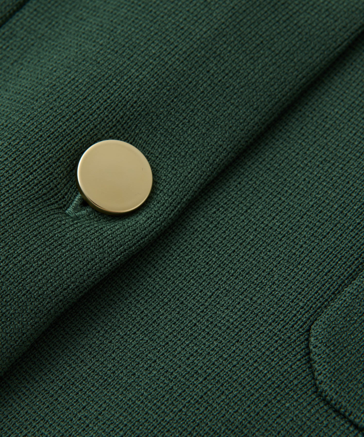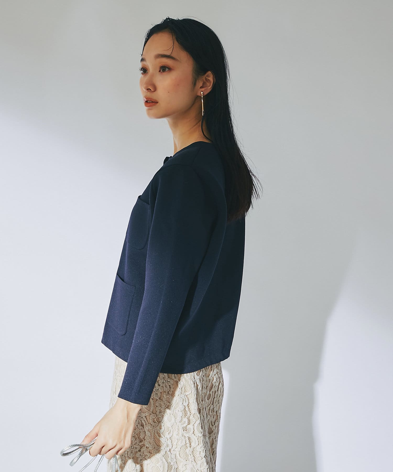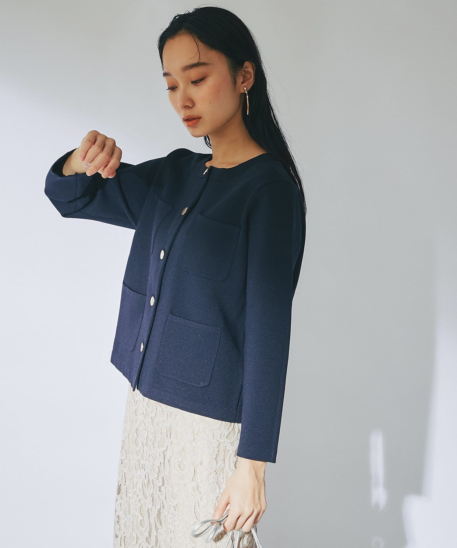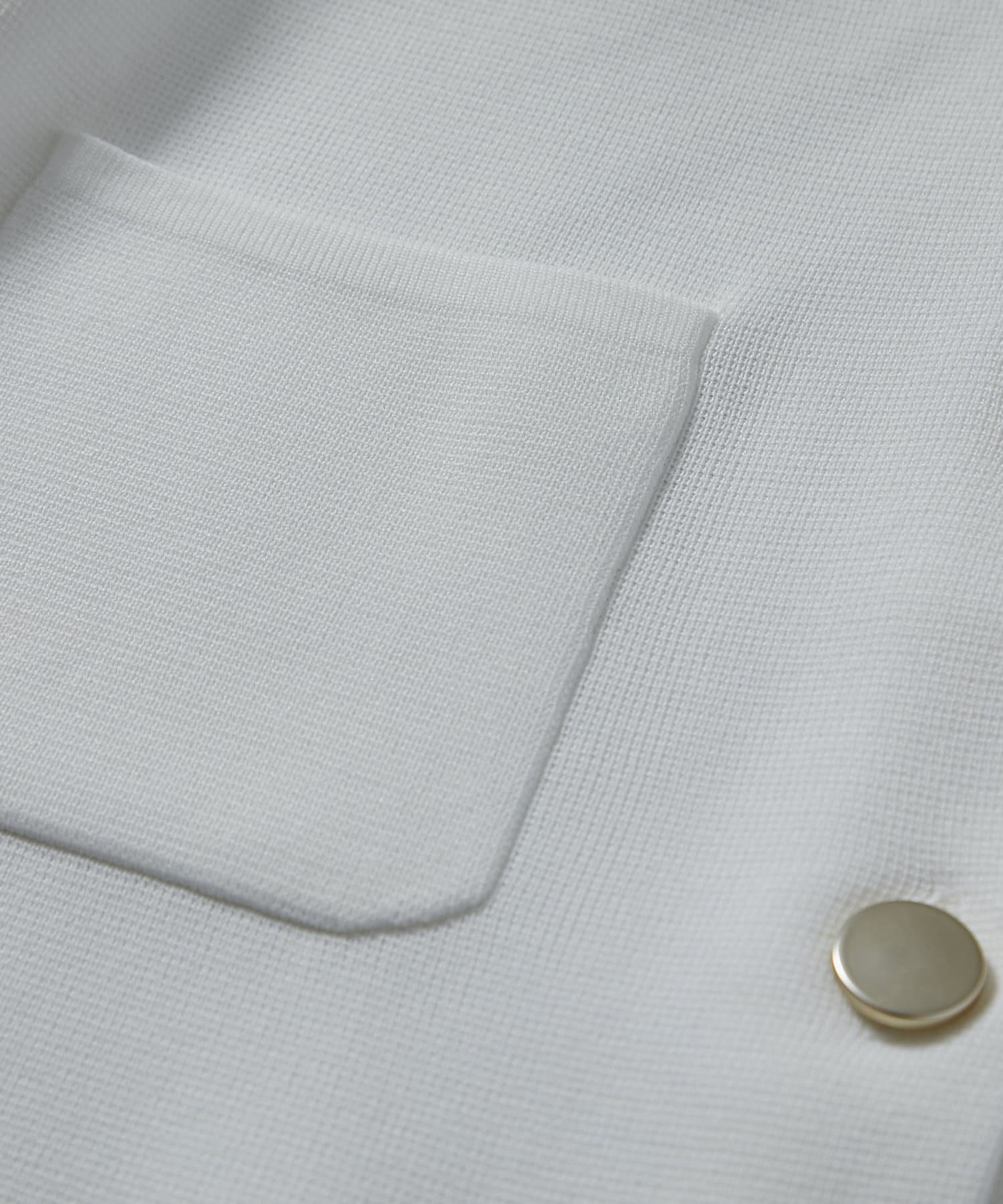 ゴールドのボタンと4つポケットがデザインポイントになっており、ジャケット風な見た目ながら、ジャケットほどかっちりせず、サイズ感もコンパクトなので軽く羽織って頂けます。