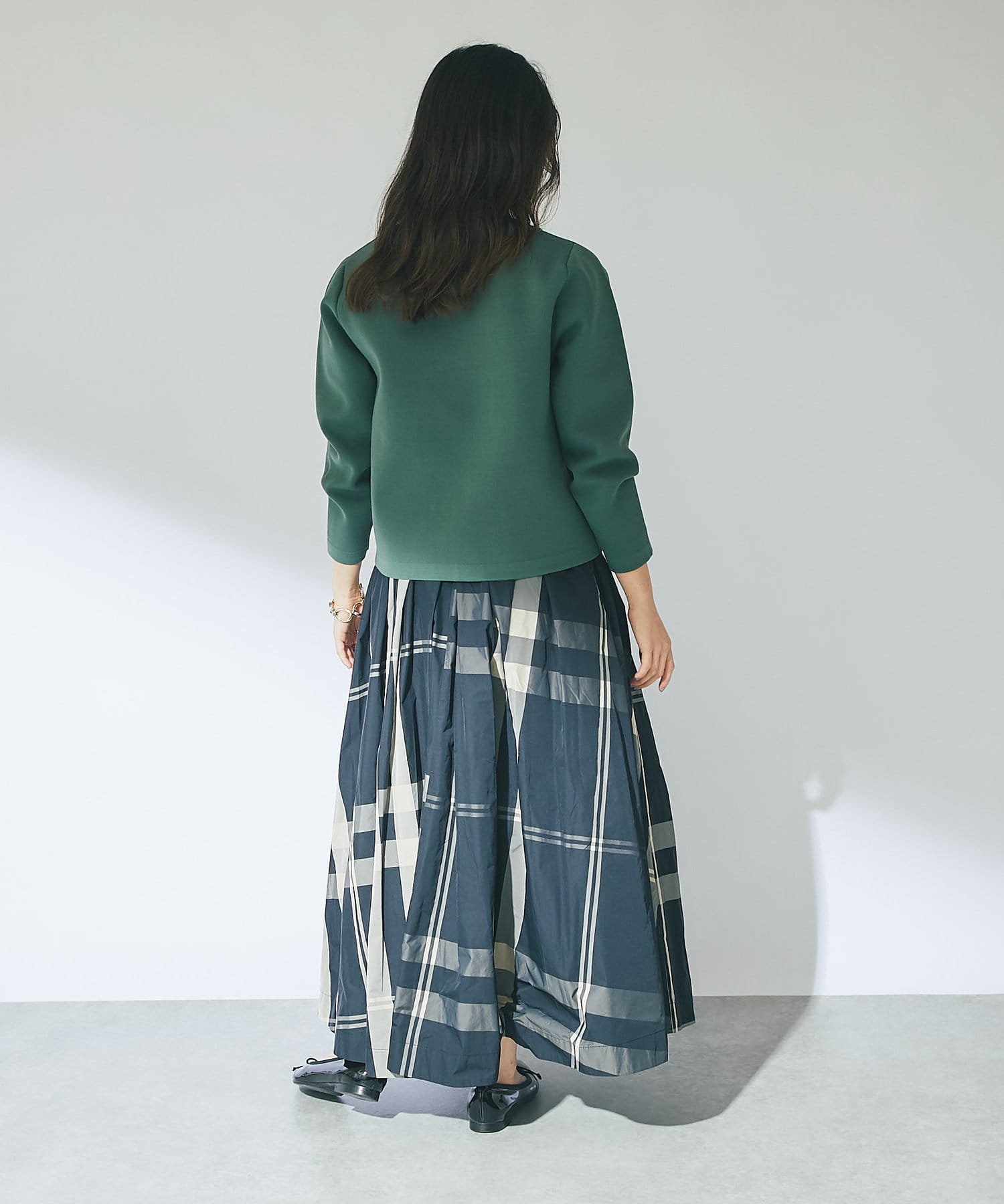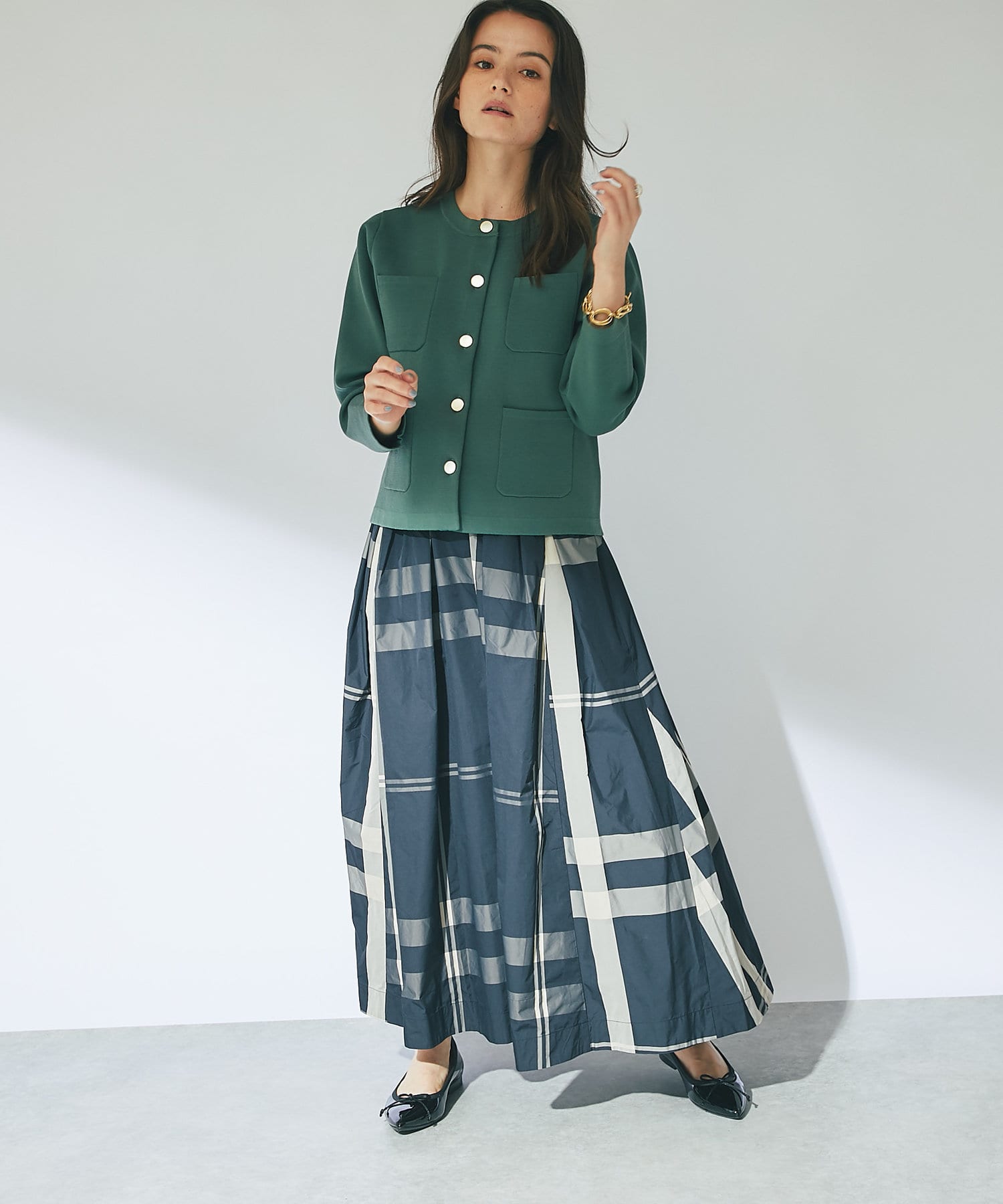 また、セットアップが可能なスカートもお作りしていますのでセットで着て頂くのはもちろんですが、きれいめにもカジュアルスタイルにも合わせやすい一枚です。