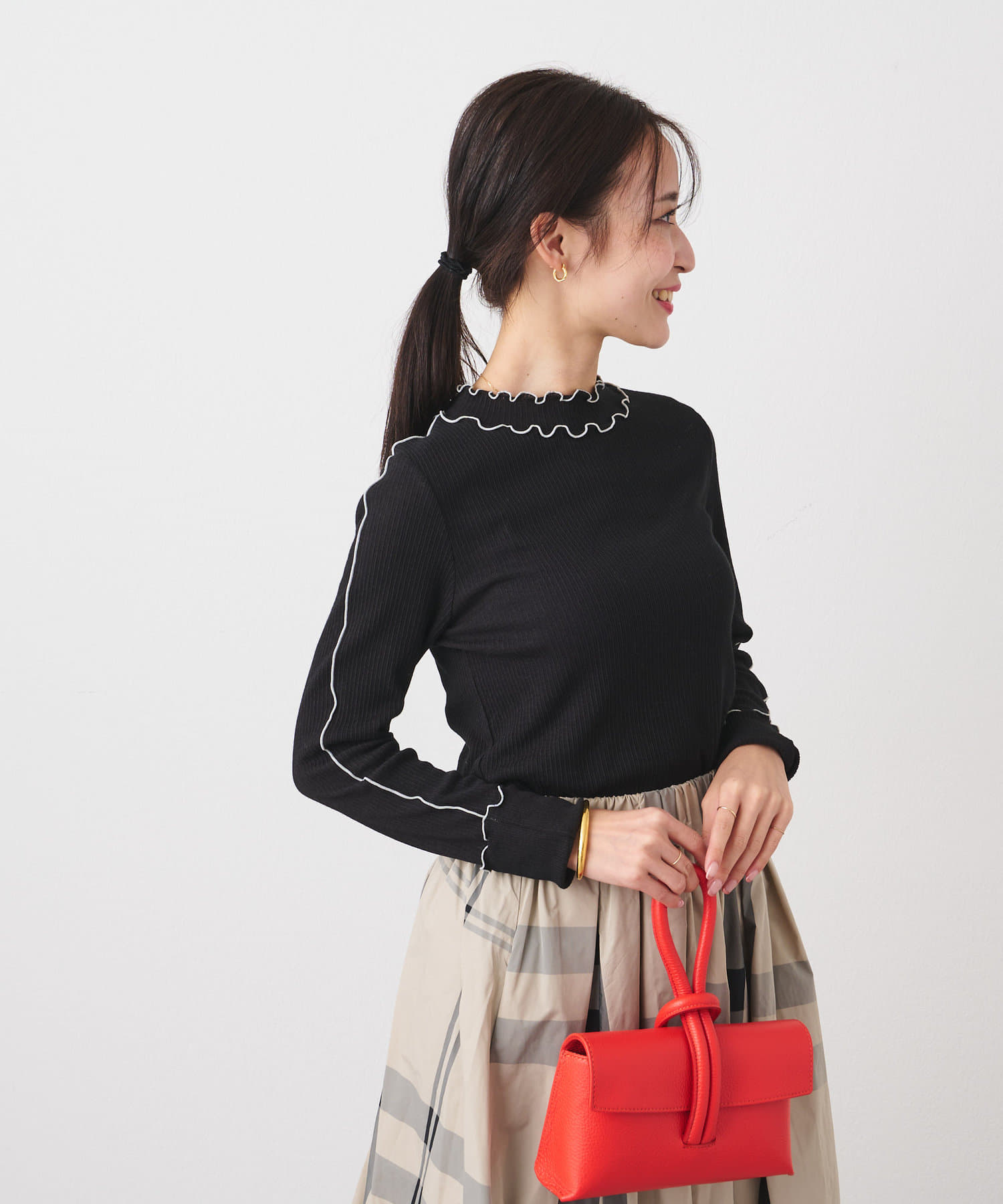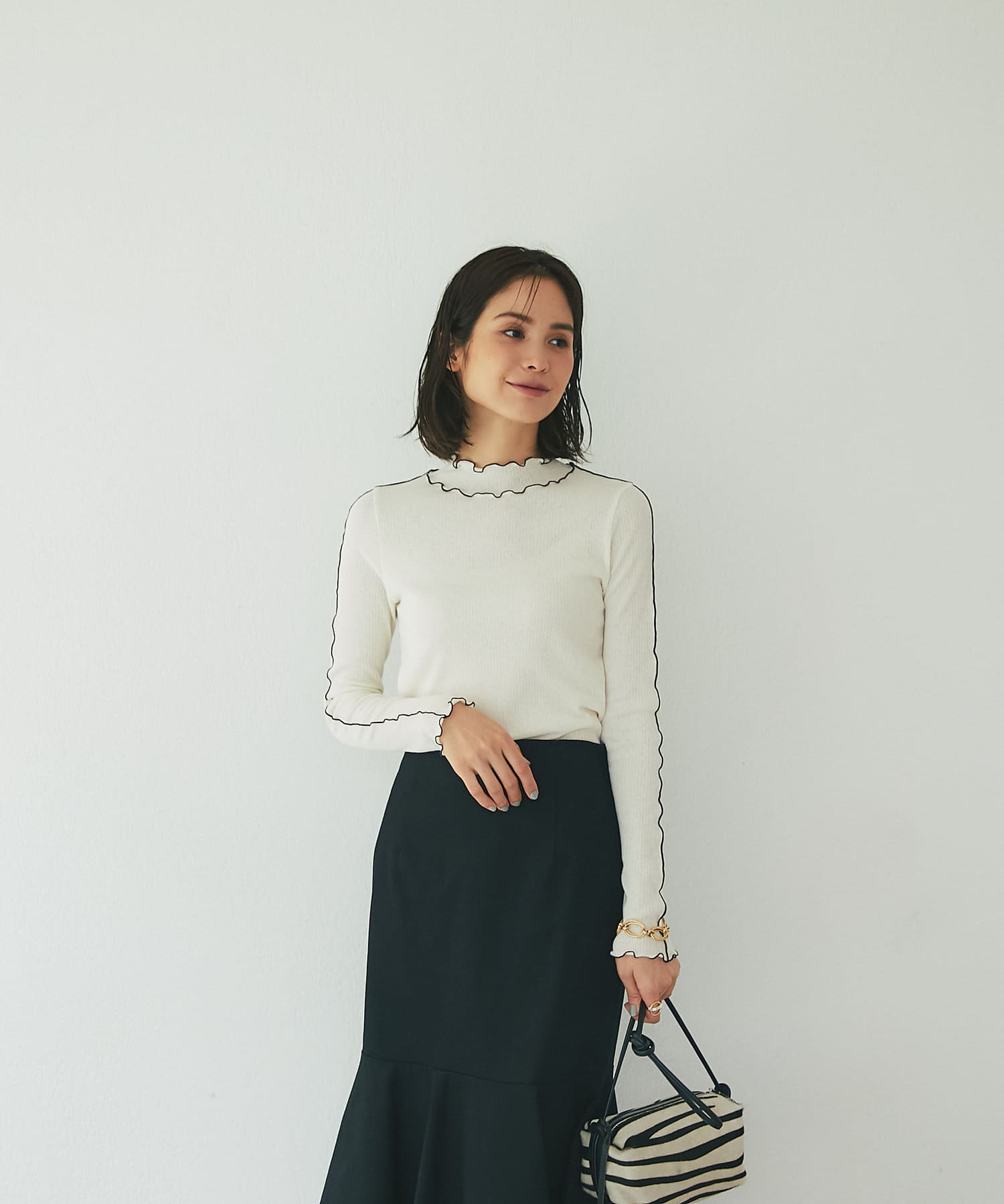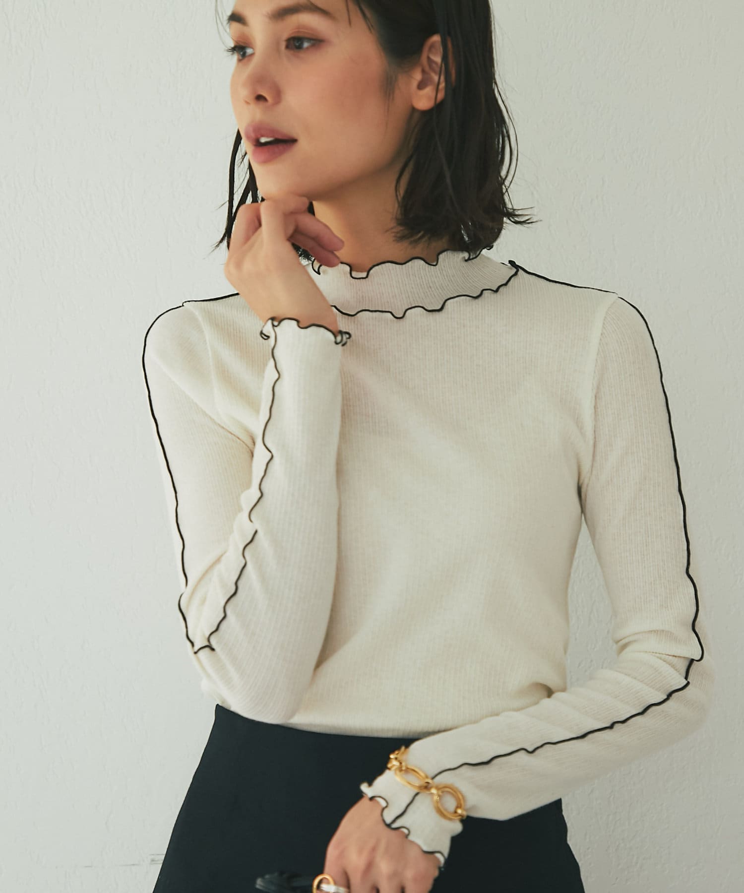 #テレコ #テレコカットソー #パイピング #デイリーユース #着回し #シアー感 #ハイネック