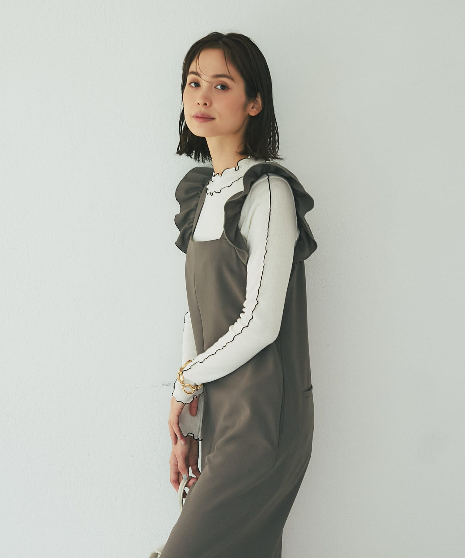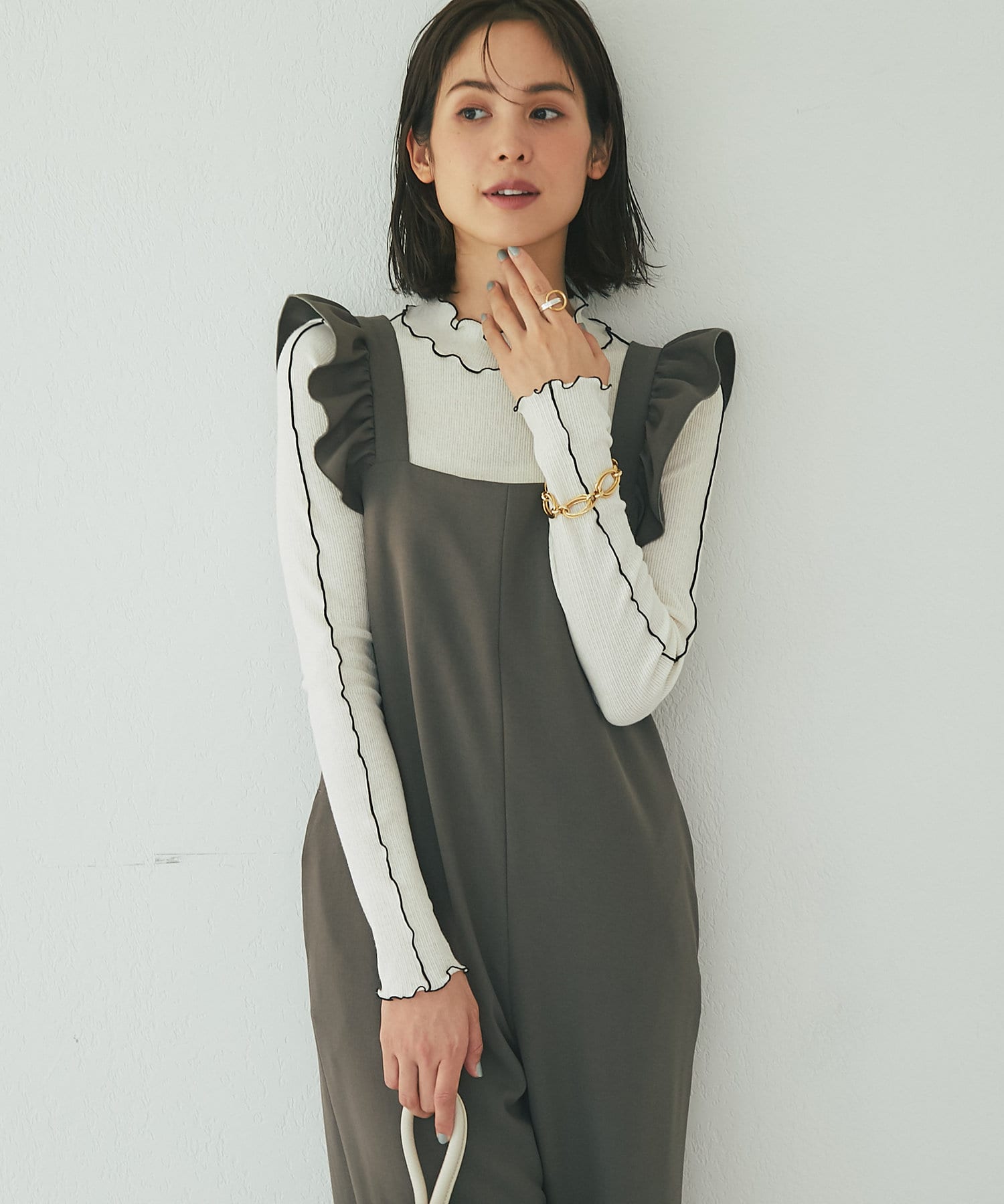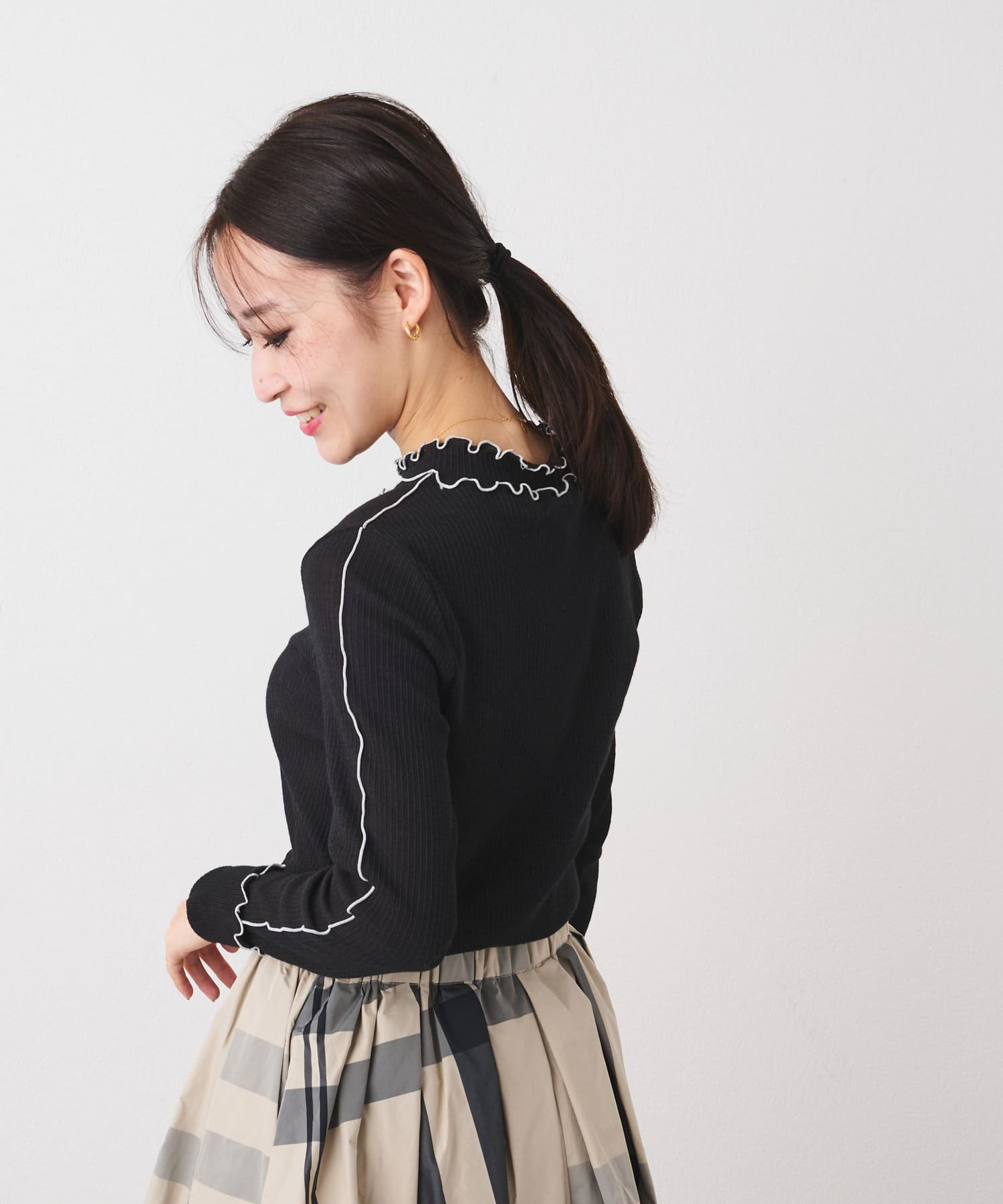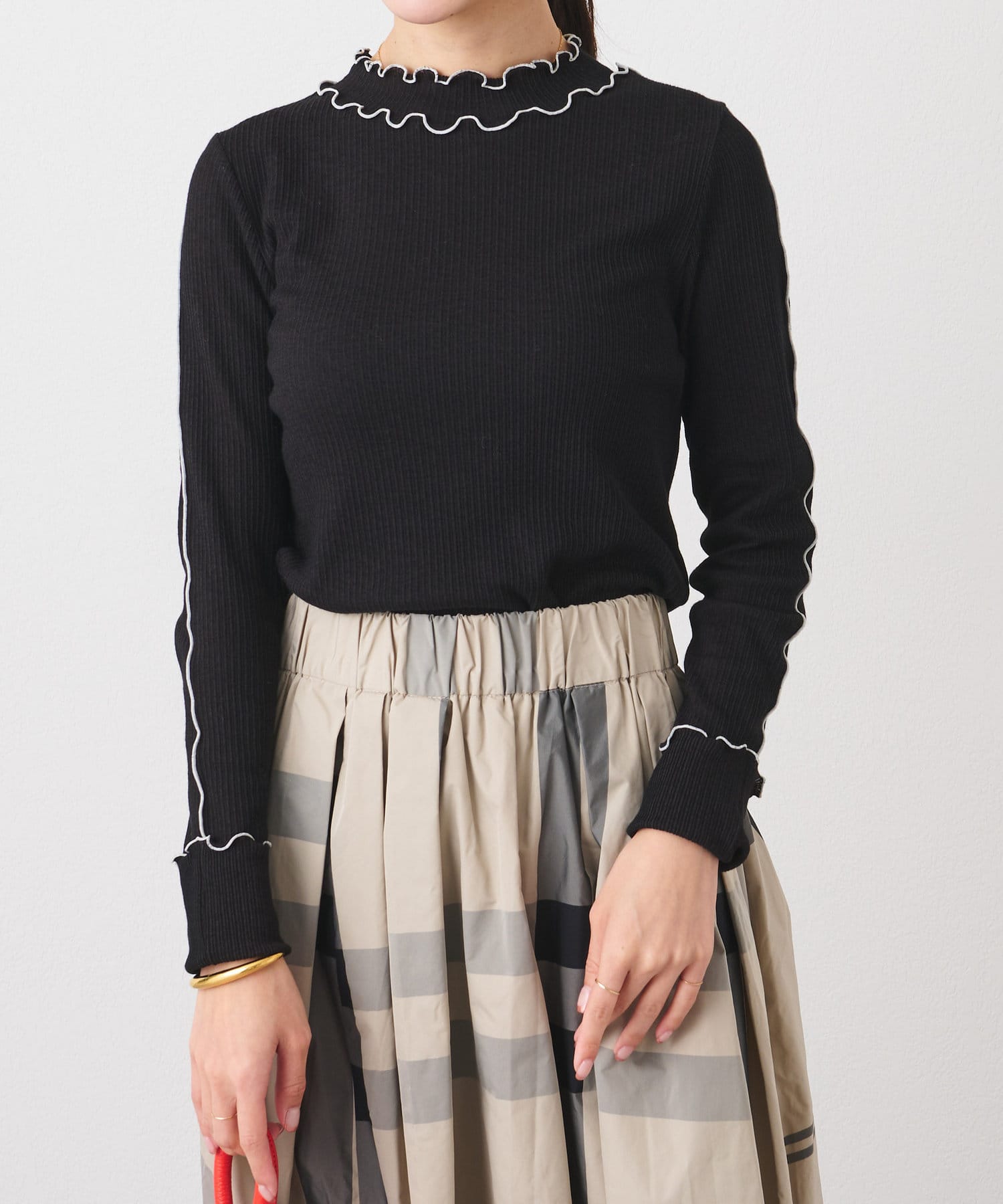 #テレコ #テレコカットソー #パイピング #デイリーユース #着回し #シアー感 #ハイネック