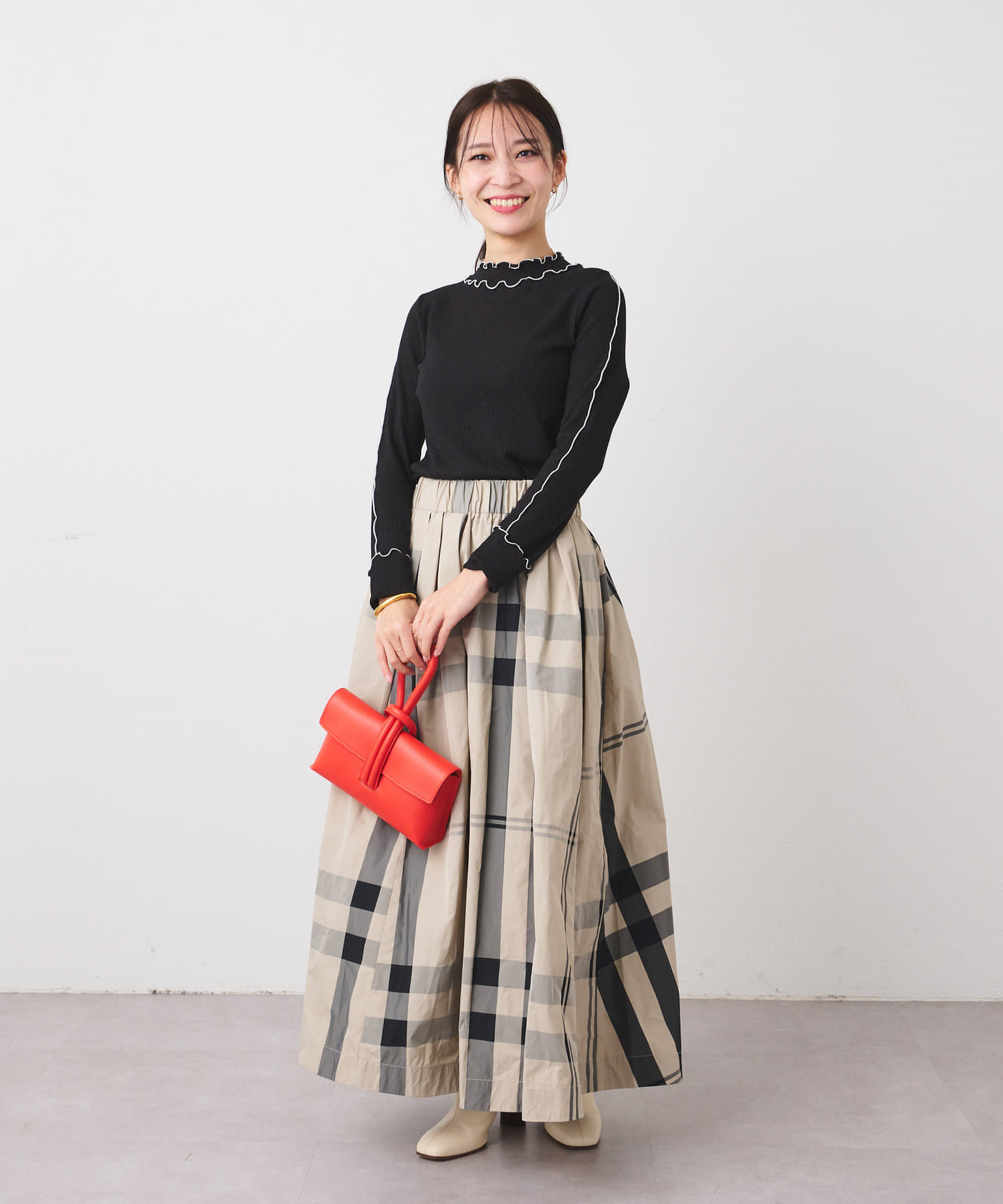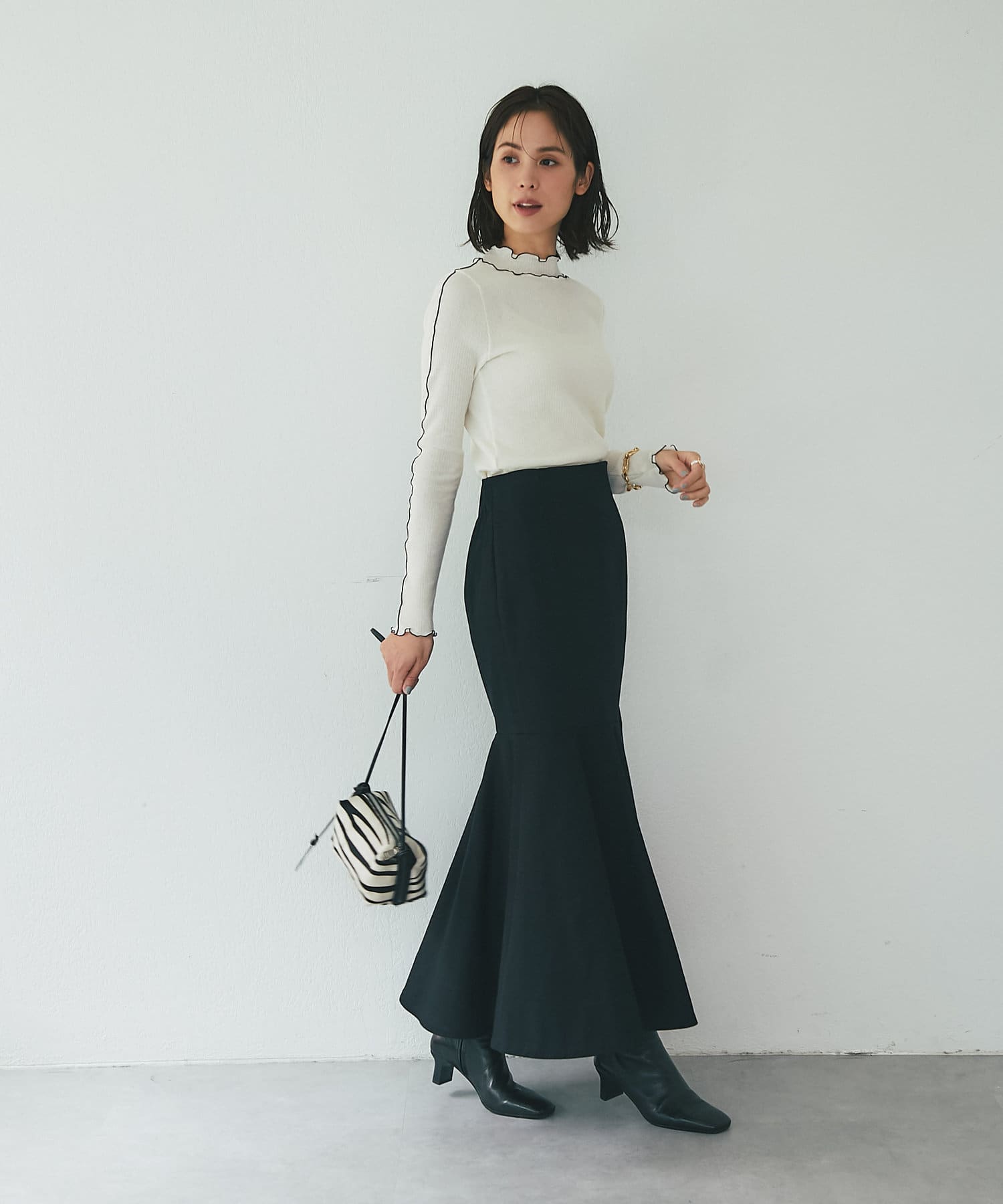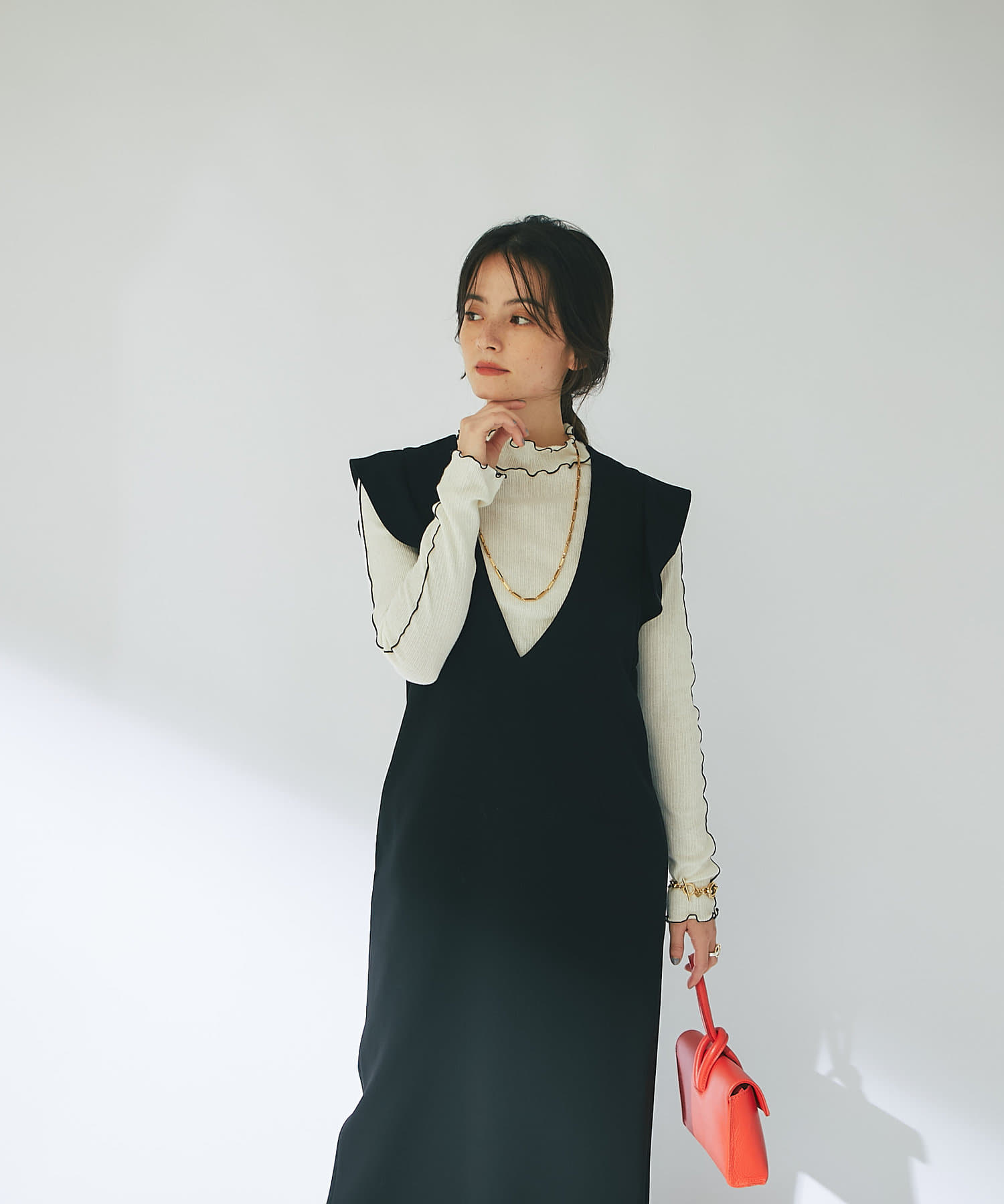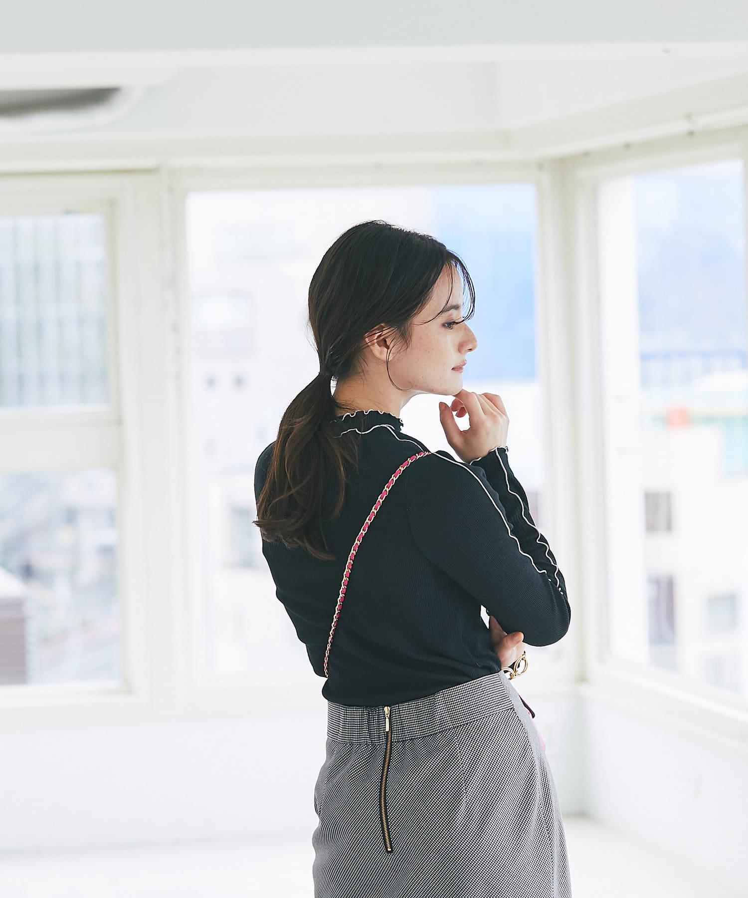 ハイネックが苦手な方にも着やすいハーフネックでキツくないシルエットです。