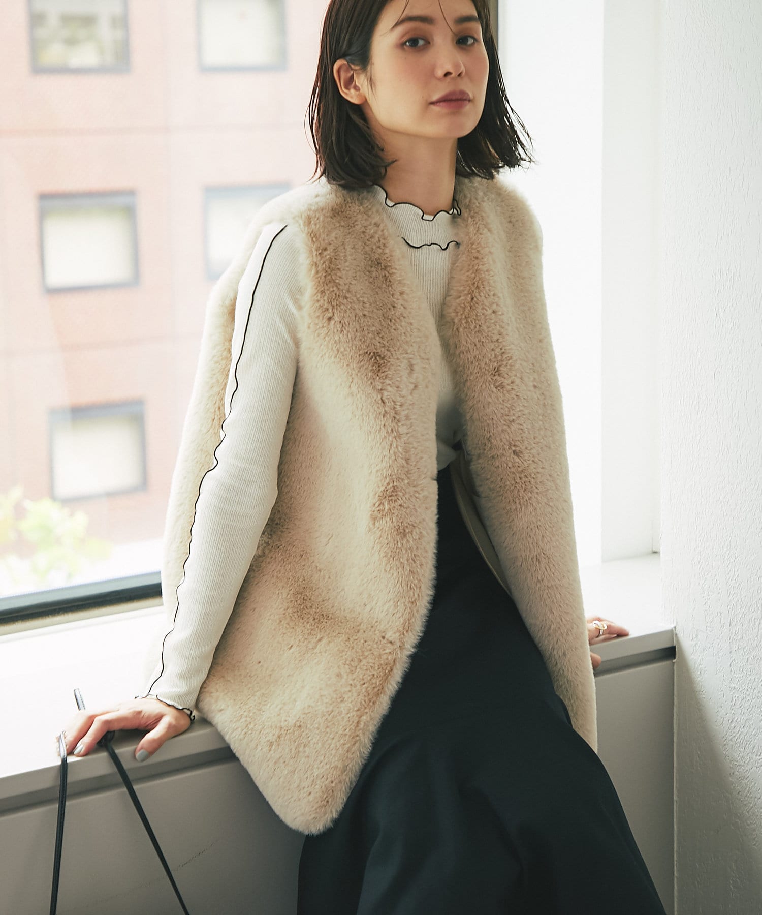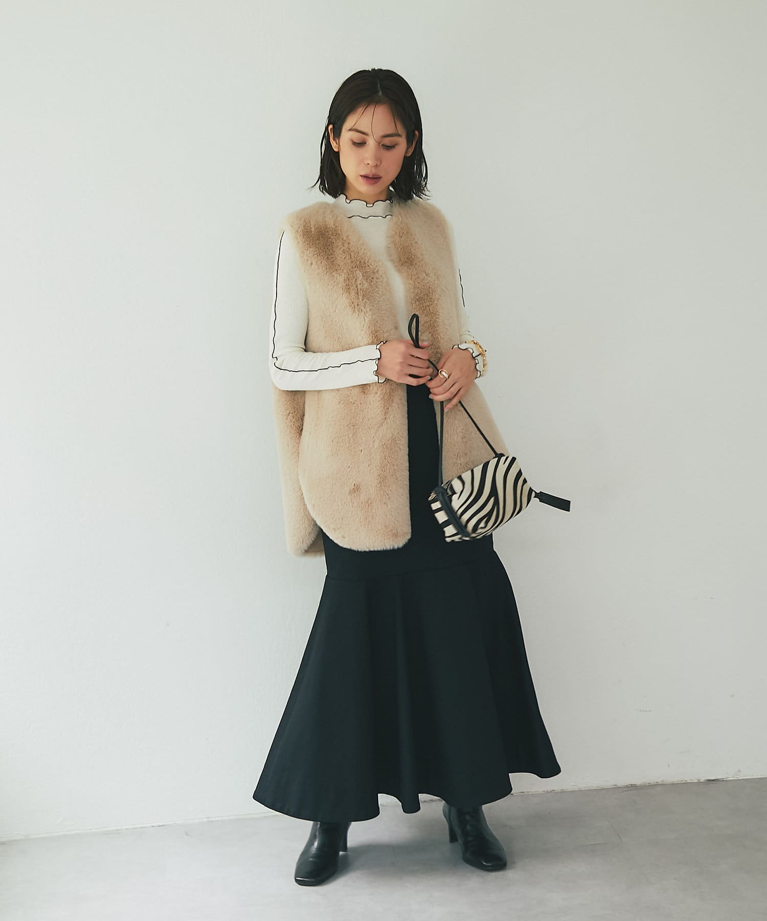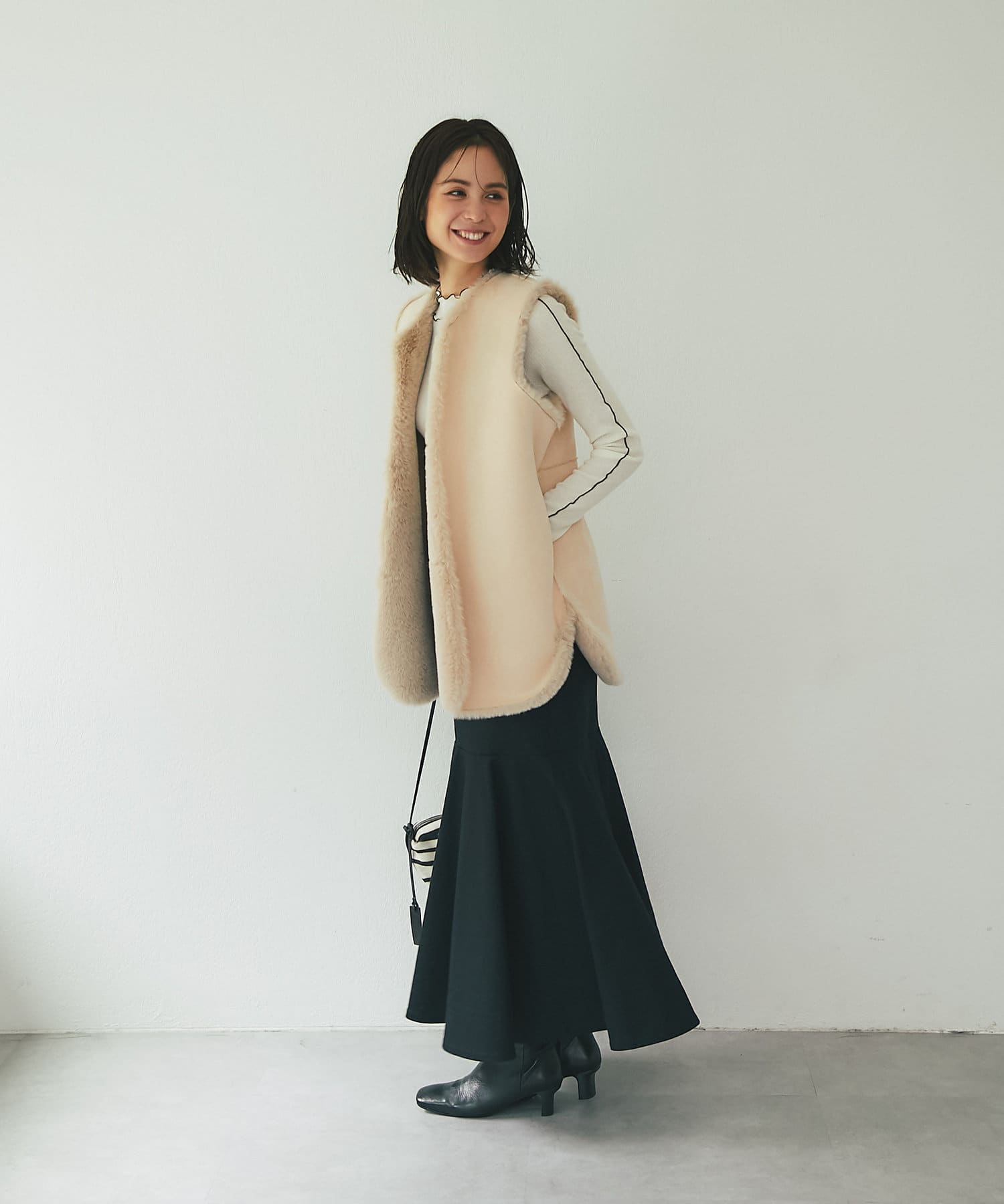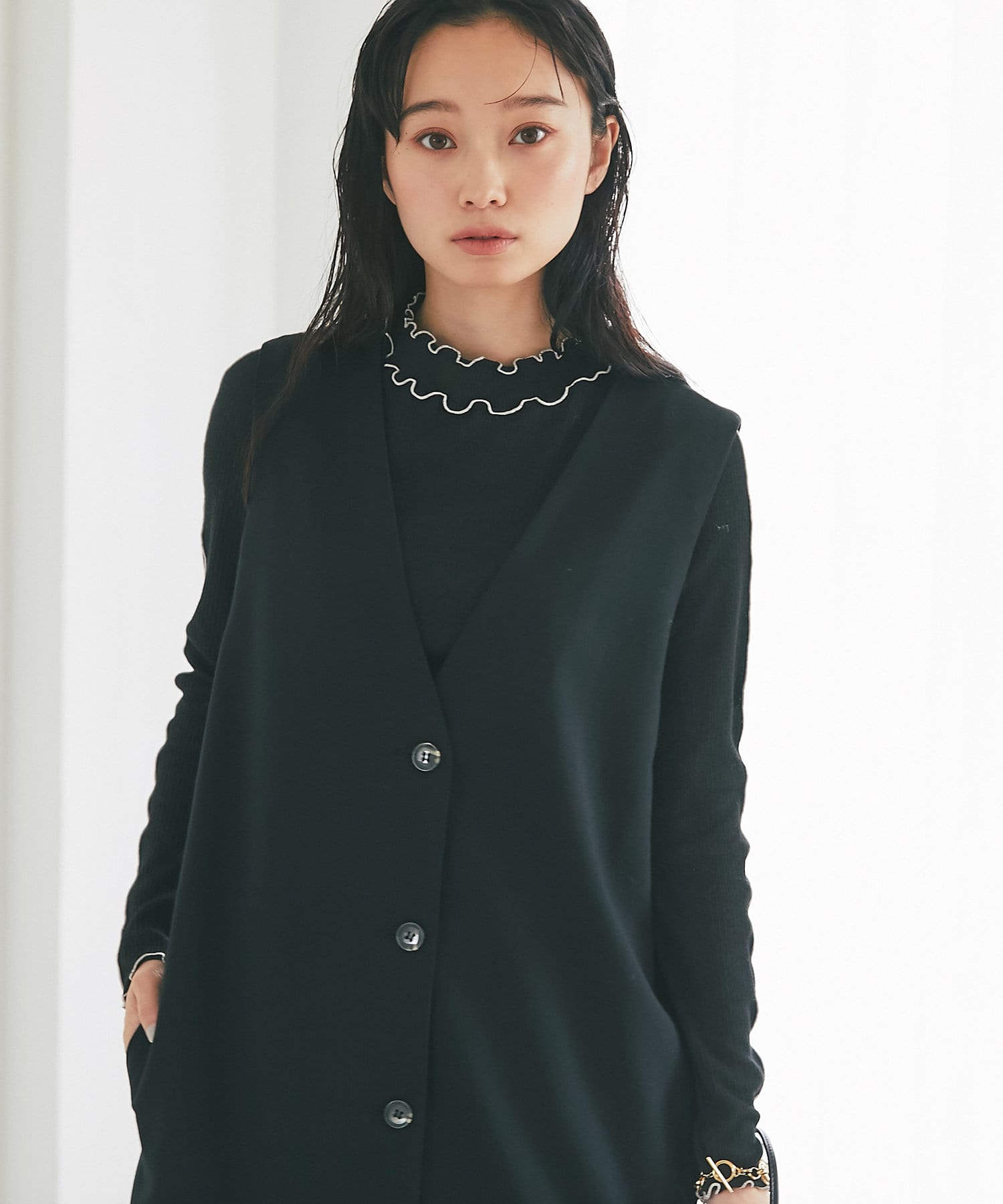 コンパクトながらも伸縮性があるので脱ぎ着しやすく、程よいサイズ感でレイヤードにもおすすめ。