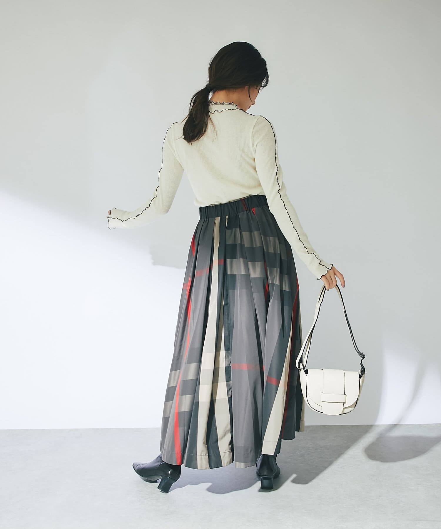 バイカラーがポイントになるメローカットソーはほんのり透ける感じが季節を問わず合わせやすい一枚。