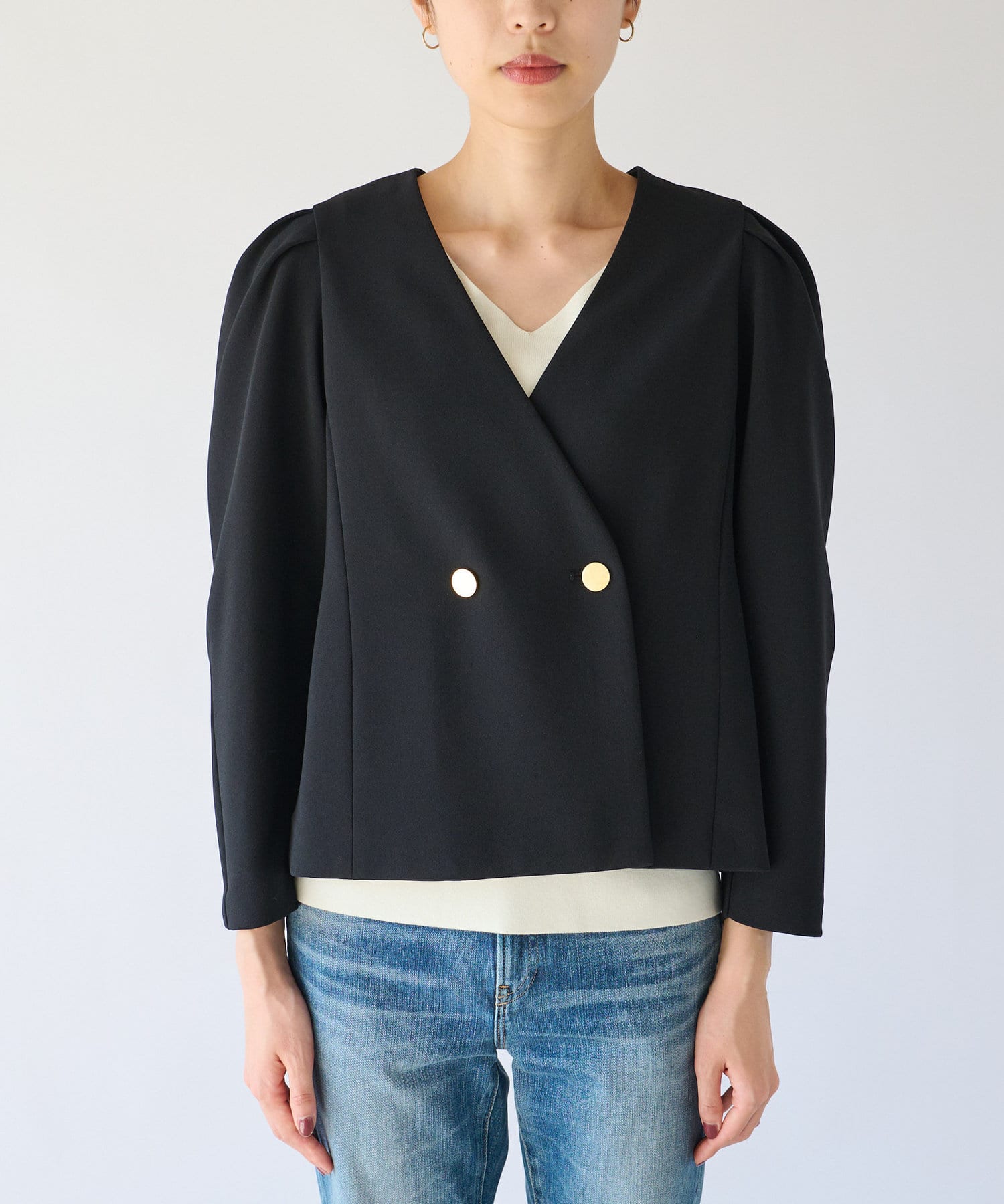 【周りと差がつく女性らしいデザイン】クロップドパワショルジャケット