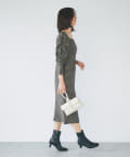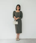 スクエアネックでお顔周りはすっきりとパワショル仕様で華奢な印象に。
